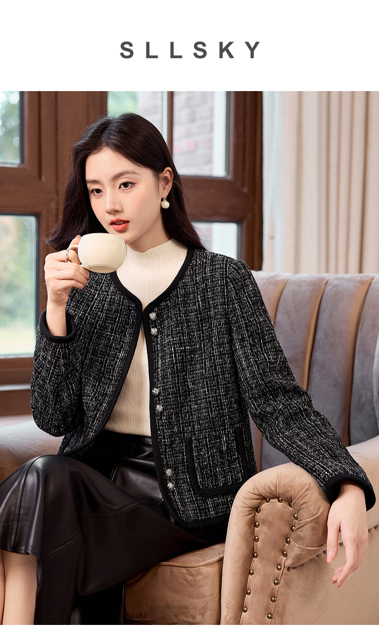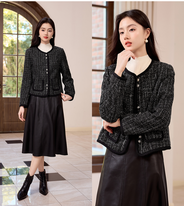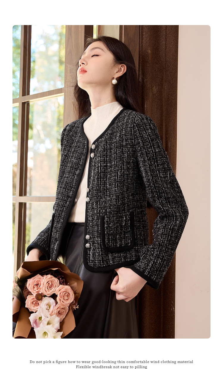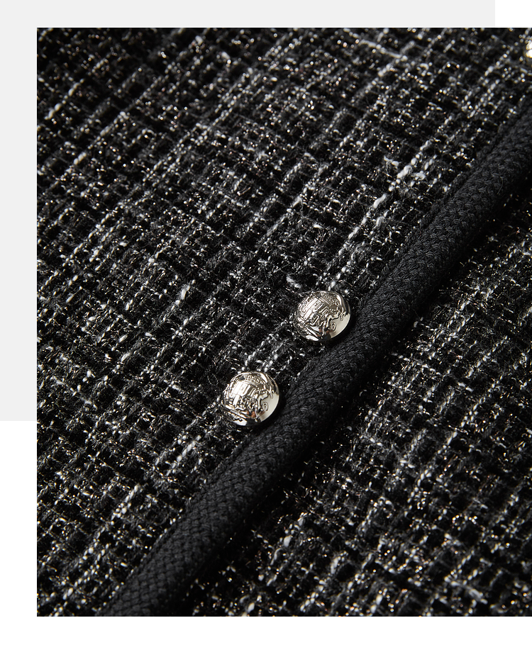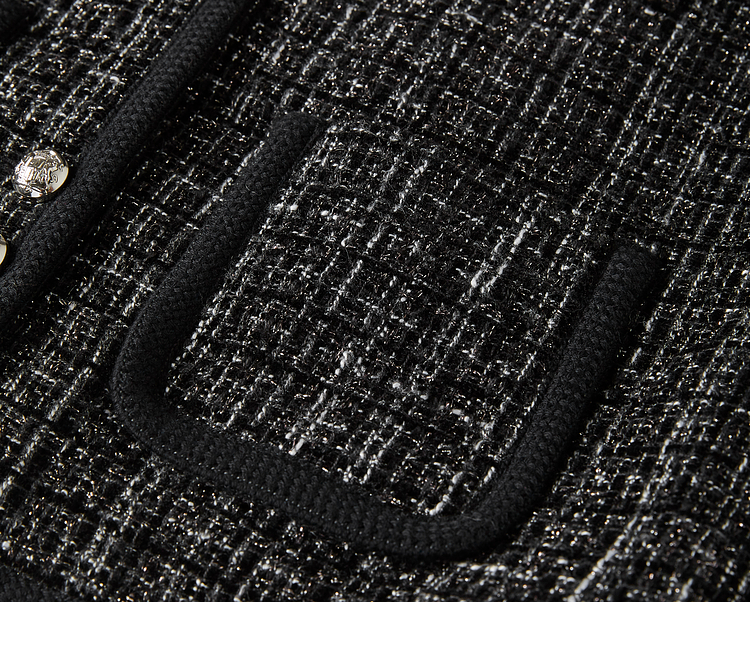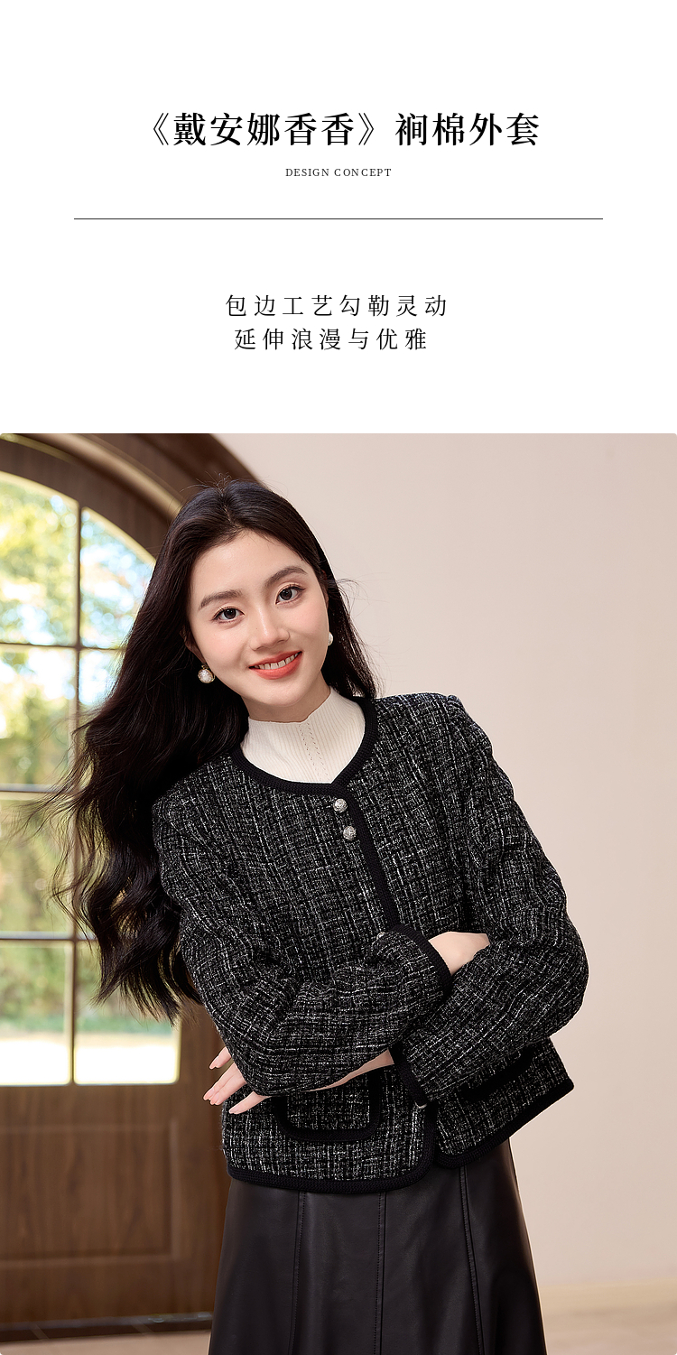 【年货节】熙世界小香风黑色短外套秋冬季新款气质名媛加厚夹棉粗花呢上衣