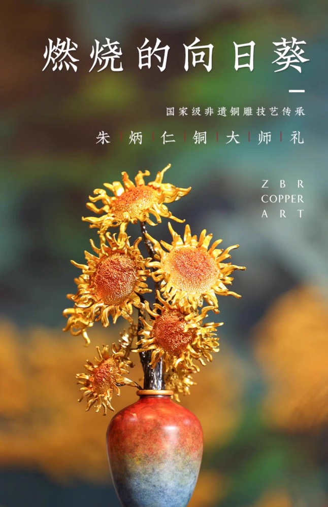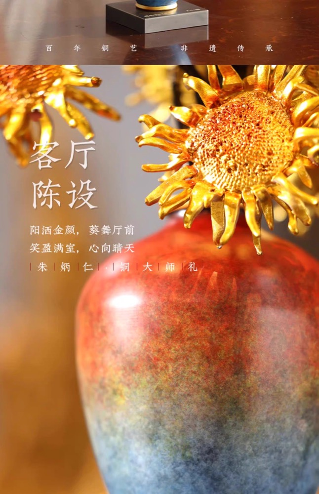朱炳仁铜 燃烧的向日葵文创版家居玄关装饰电视柜桌面艺术摆件