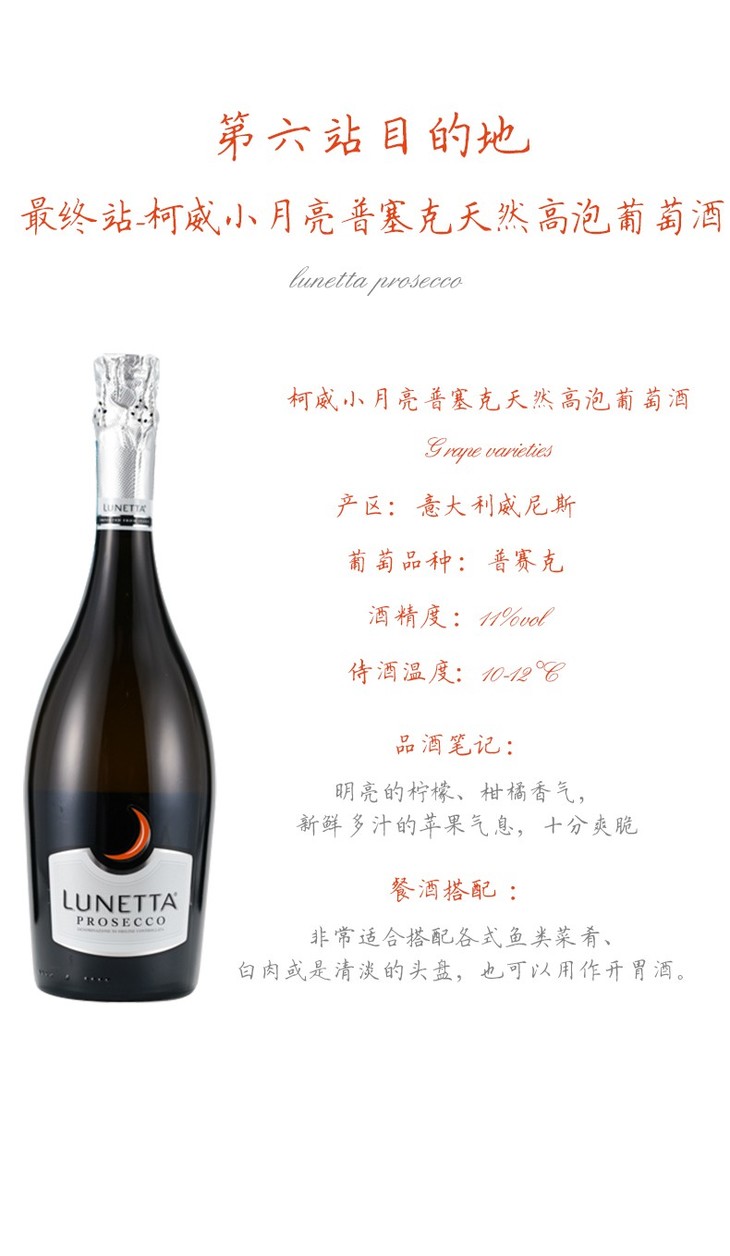 柯威小月亮普塞克天然高泡葡萄酒(750mL*6)