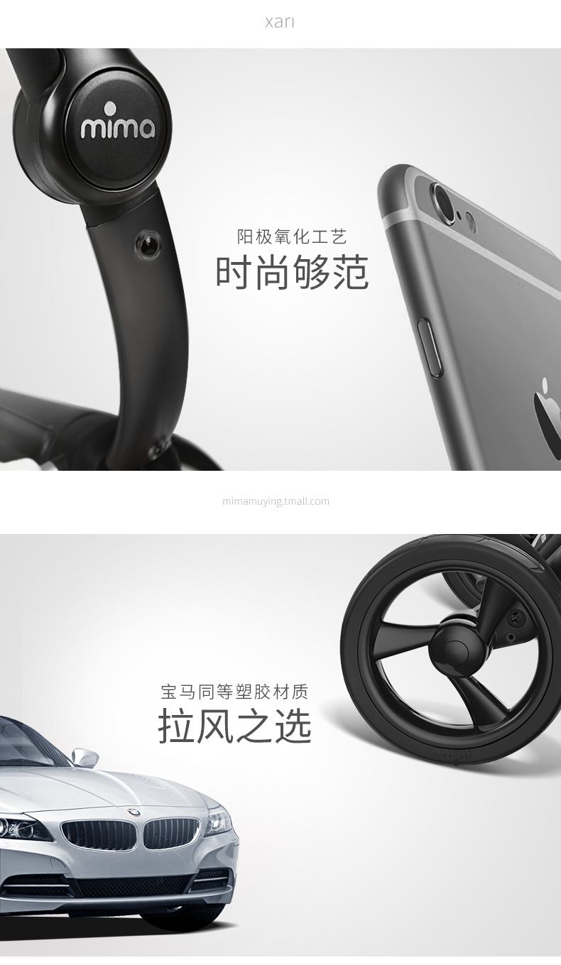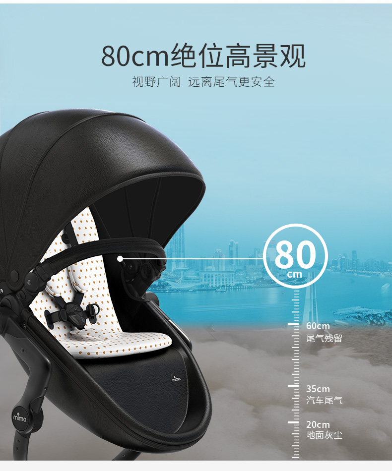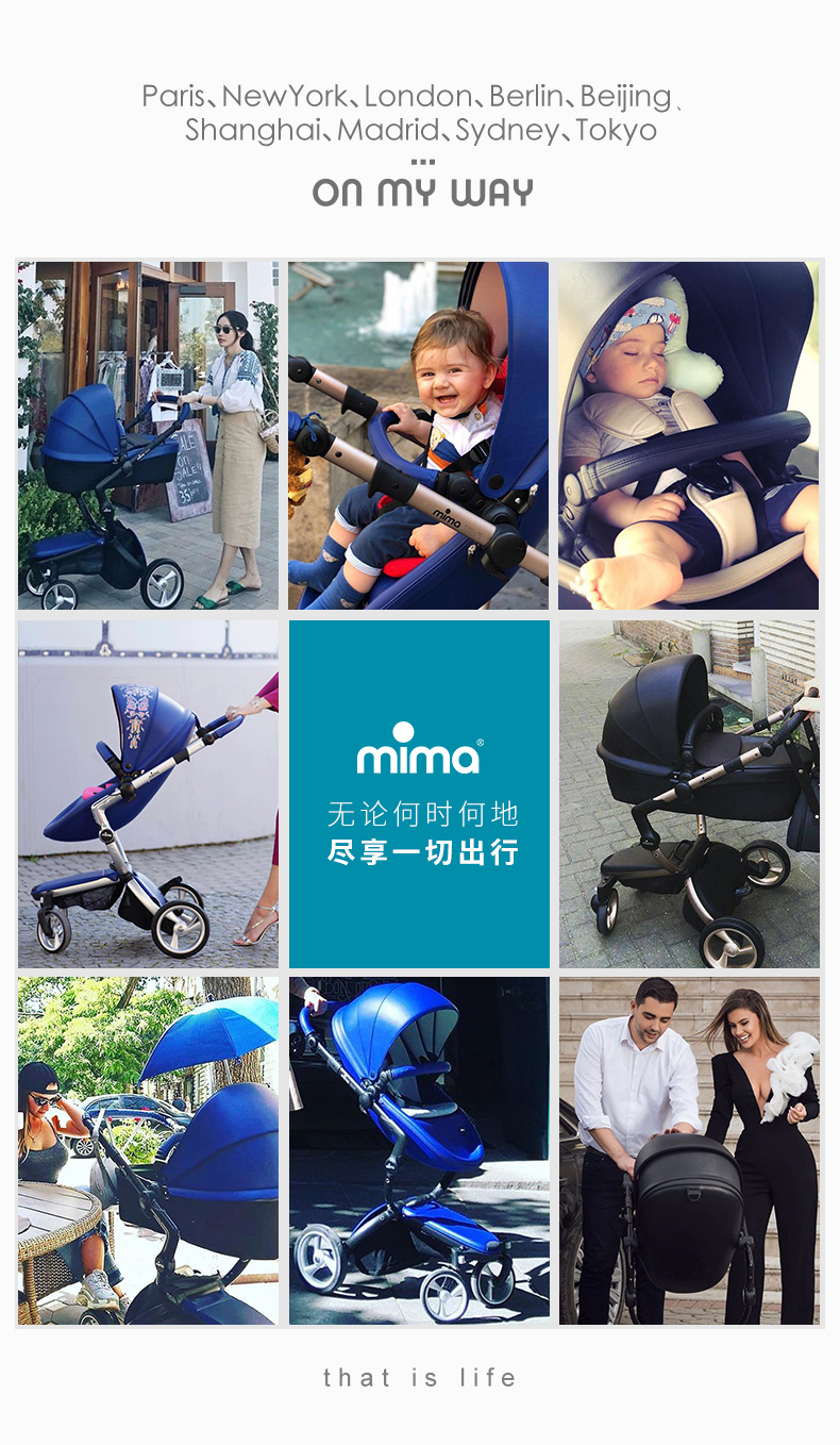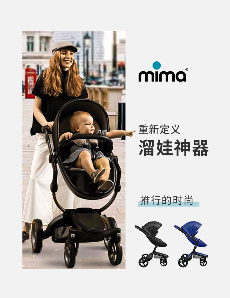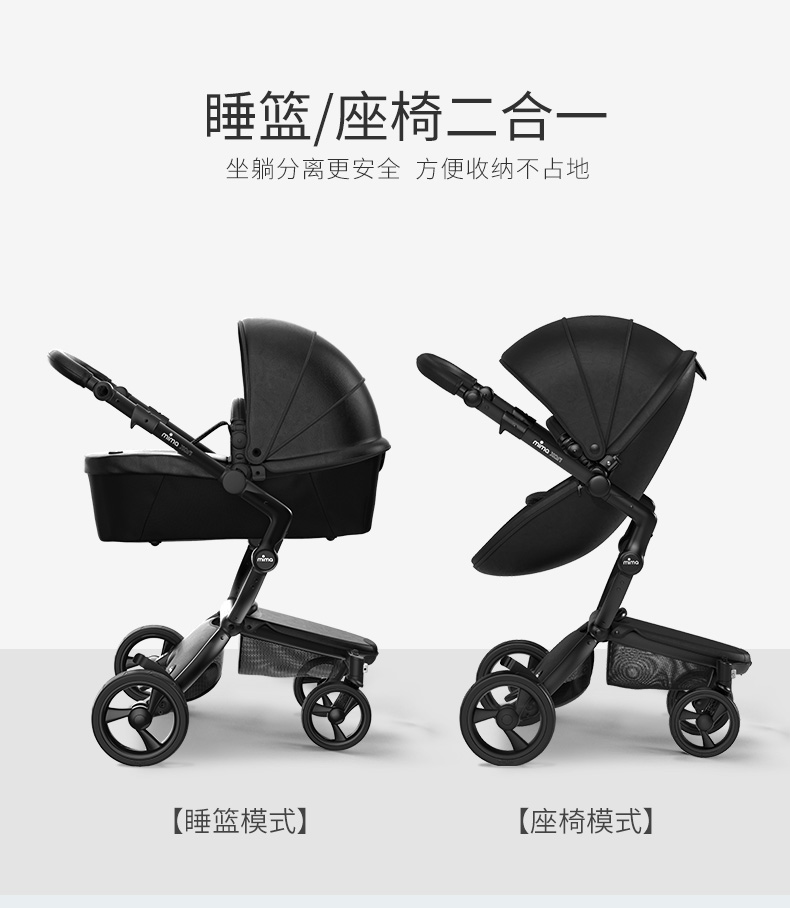 西班牙mima xari 格调款(皇家蓝/绅士黑)高景观婴儿推车可坐可躺双向宝宝推车避震婴儿车