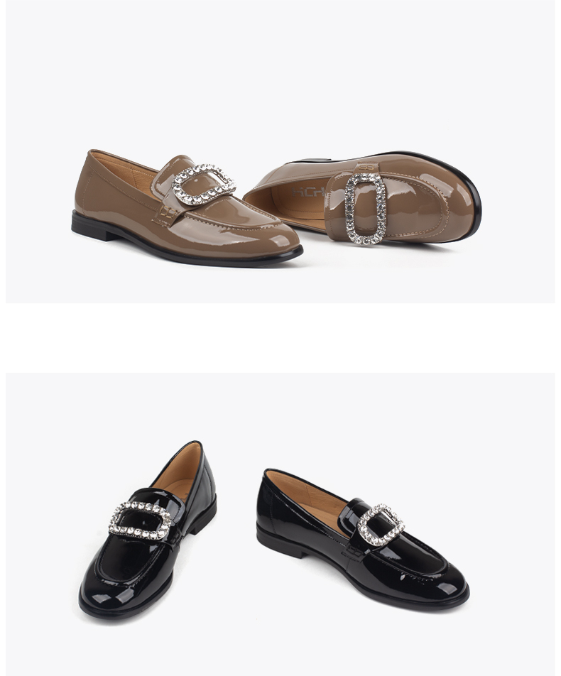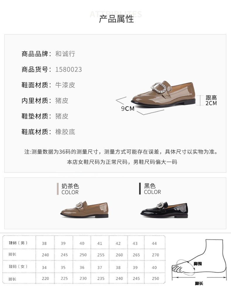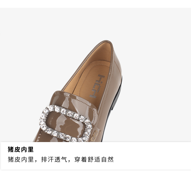 和诚行 2023秋冬新款气质方扣水钻单鞋女士时尚百搭乐福鞋1580023