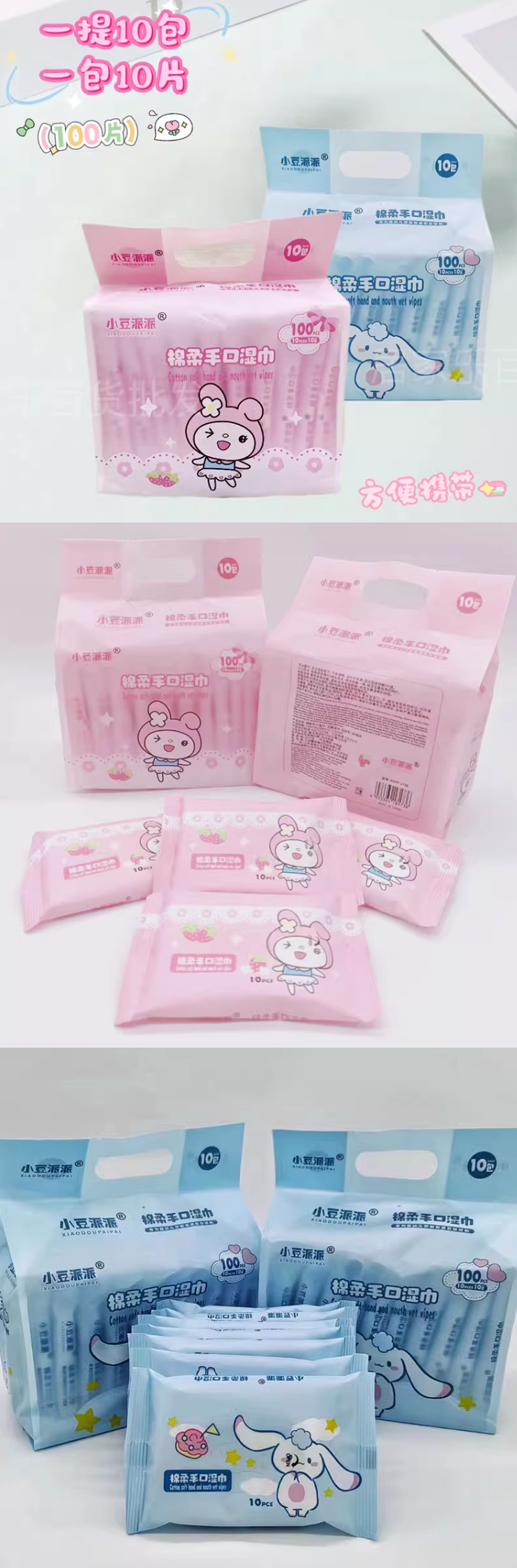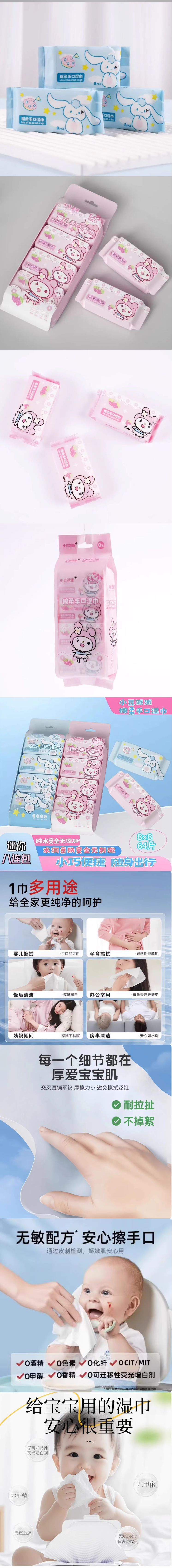 【7元会员福利】小豆派派棉柔手口湿巾(10包)