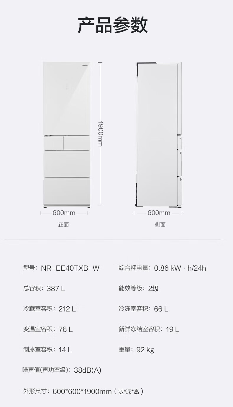 松下387升嵌入式多门冰箱超薄60cm 黑科技纳诺怡 智能WIFI 自动制冰电冰箱优选NR-EE40TXB-W