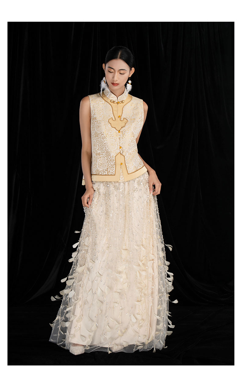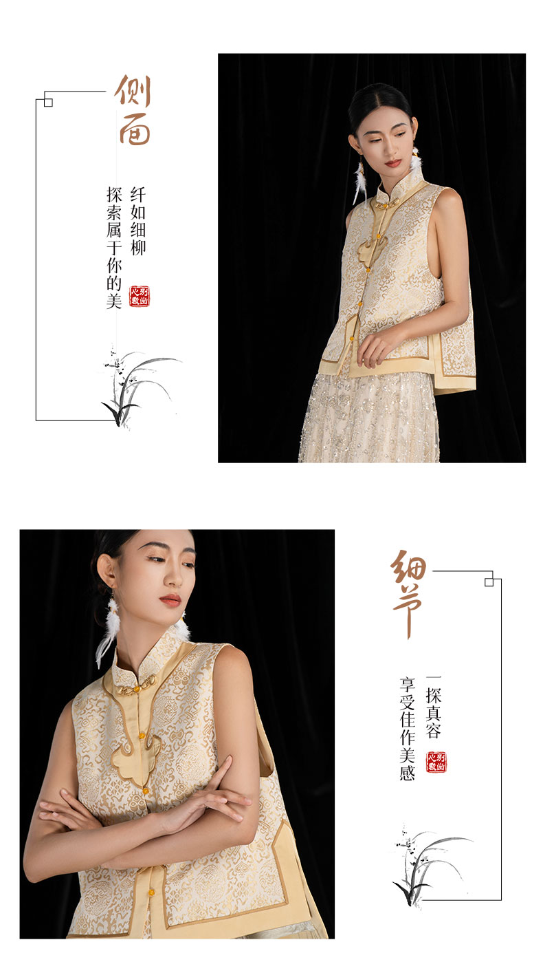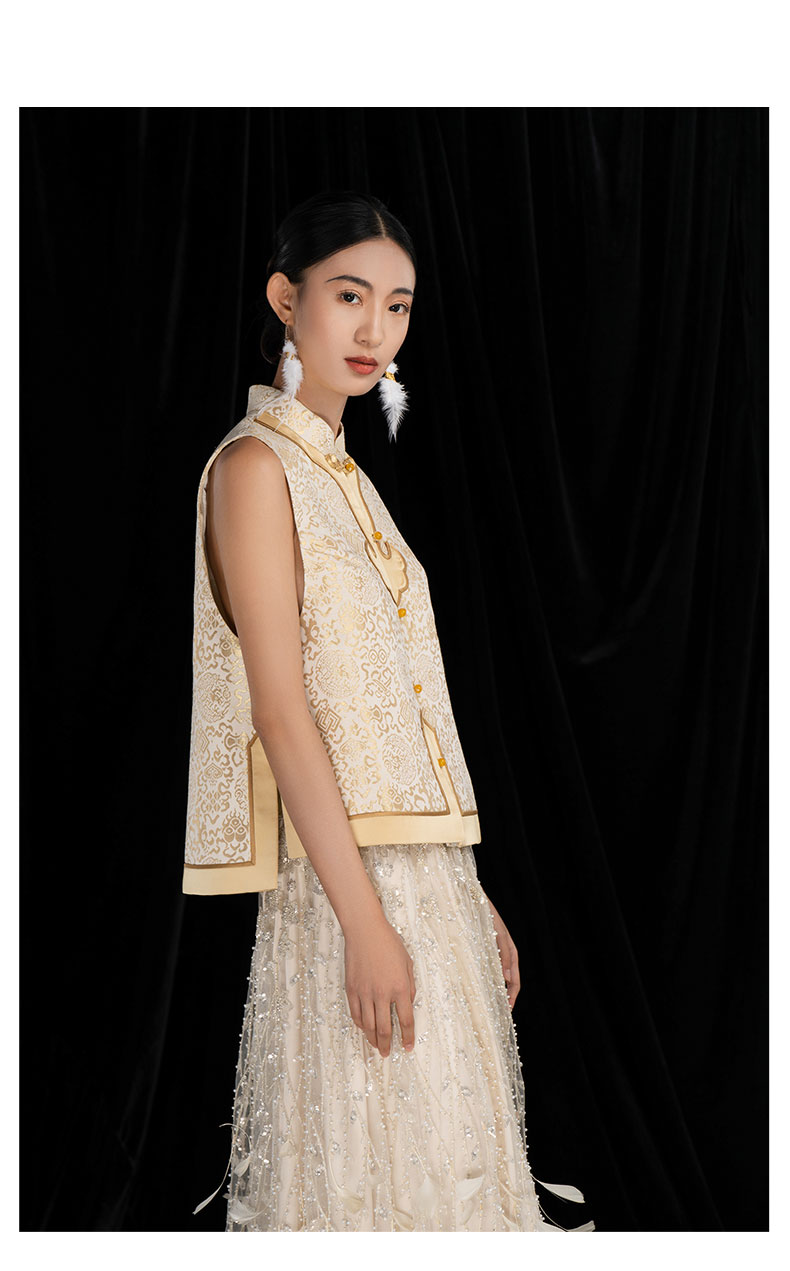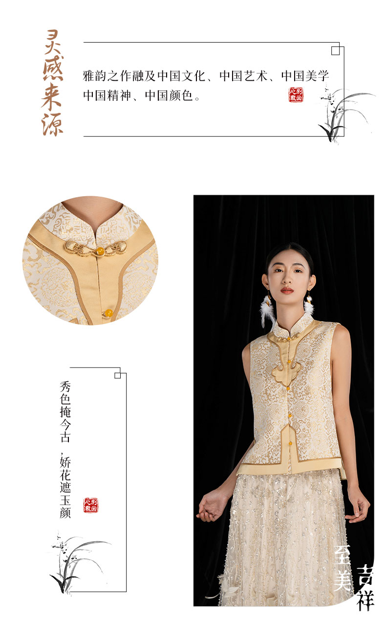 吉祥衣家新中式原创提花减龄圆领刺绣国风高级感女装纹彩如意马甲