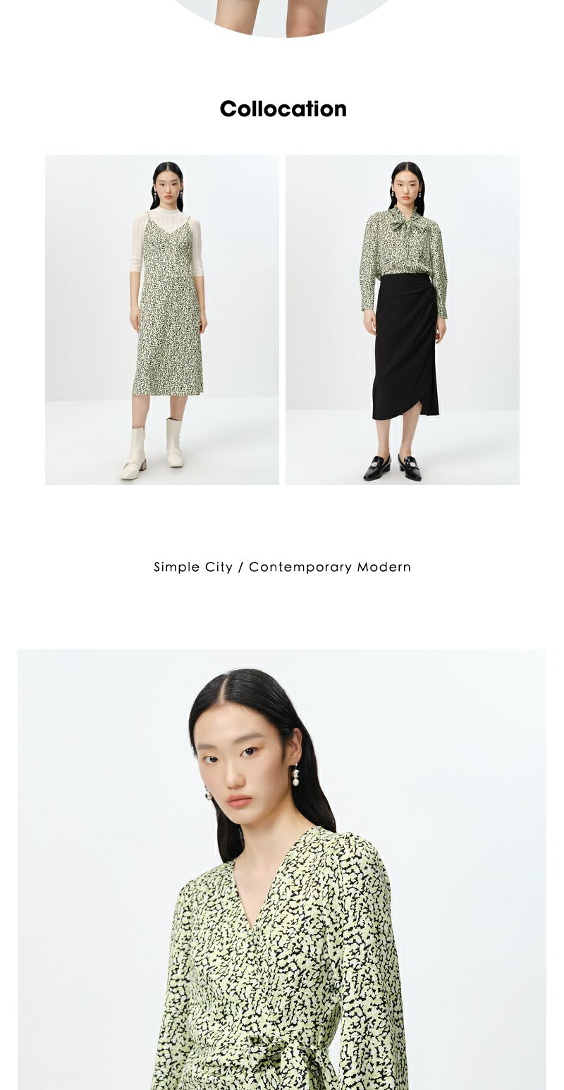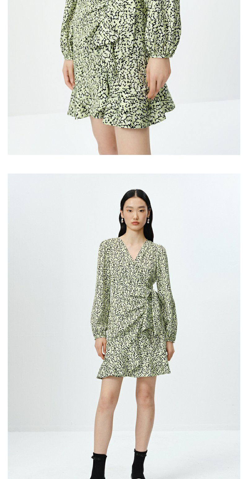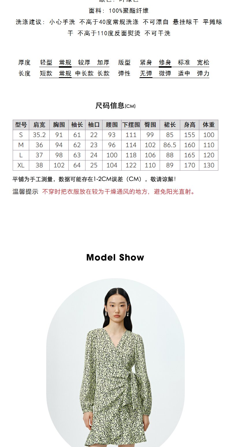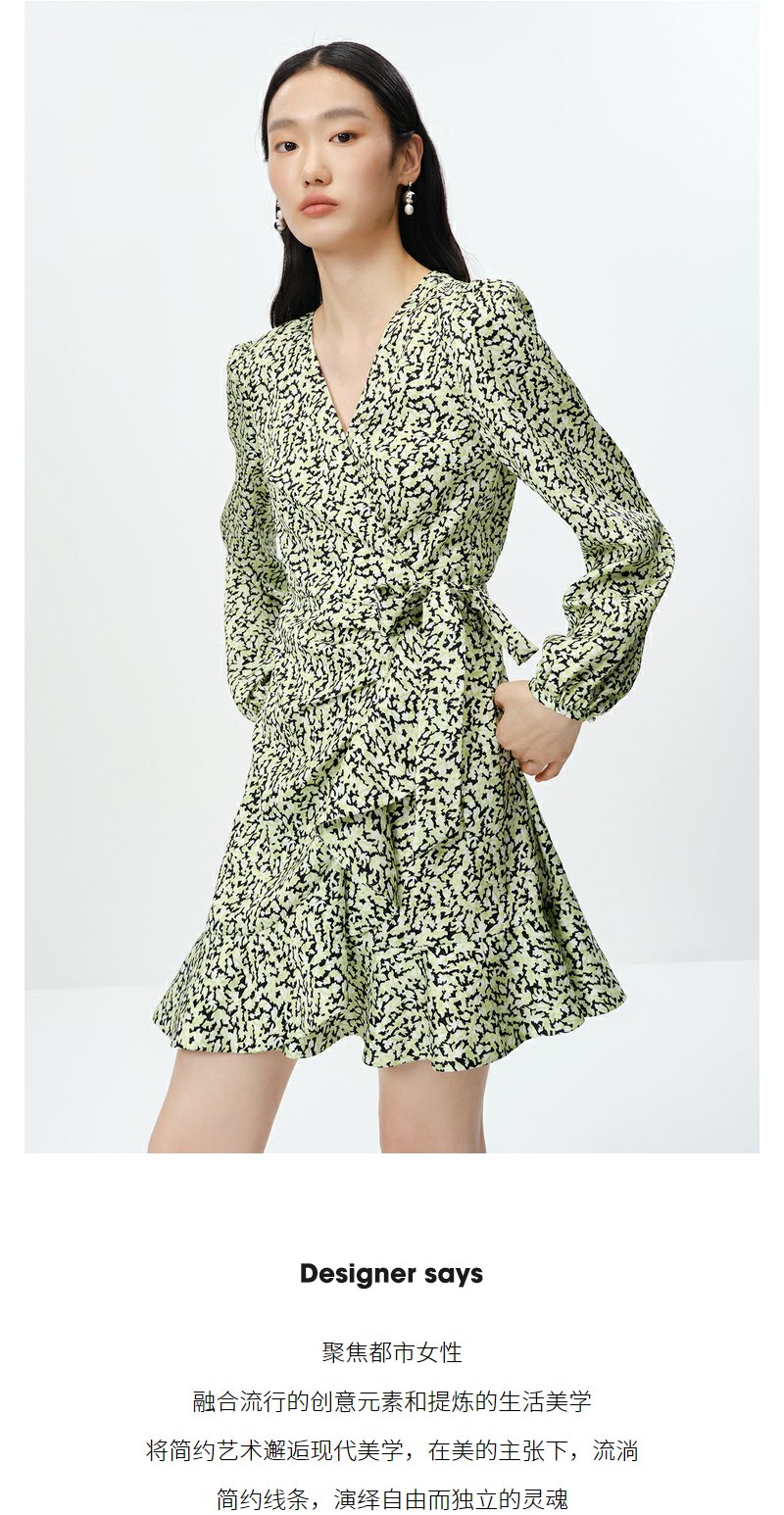 NEELLY纳俪商场同款春季V领泡泡袖连衣裙女收腰系带a字裙中长款N23022Y01098