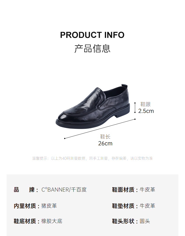 千百度秋季男单鞋防滑橡胶底真皮鞋垫商务正装A25425803