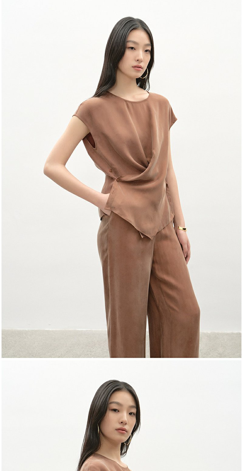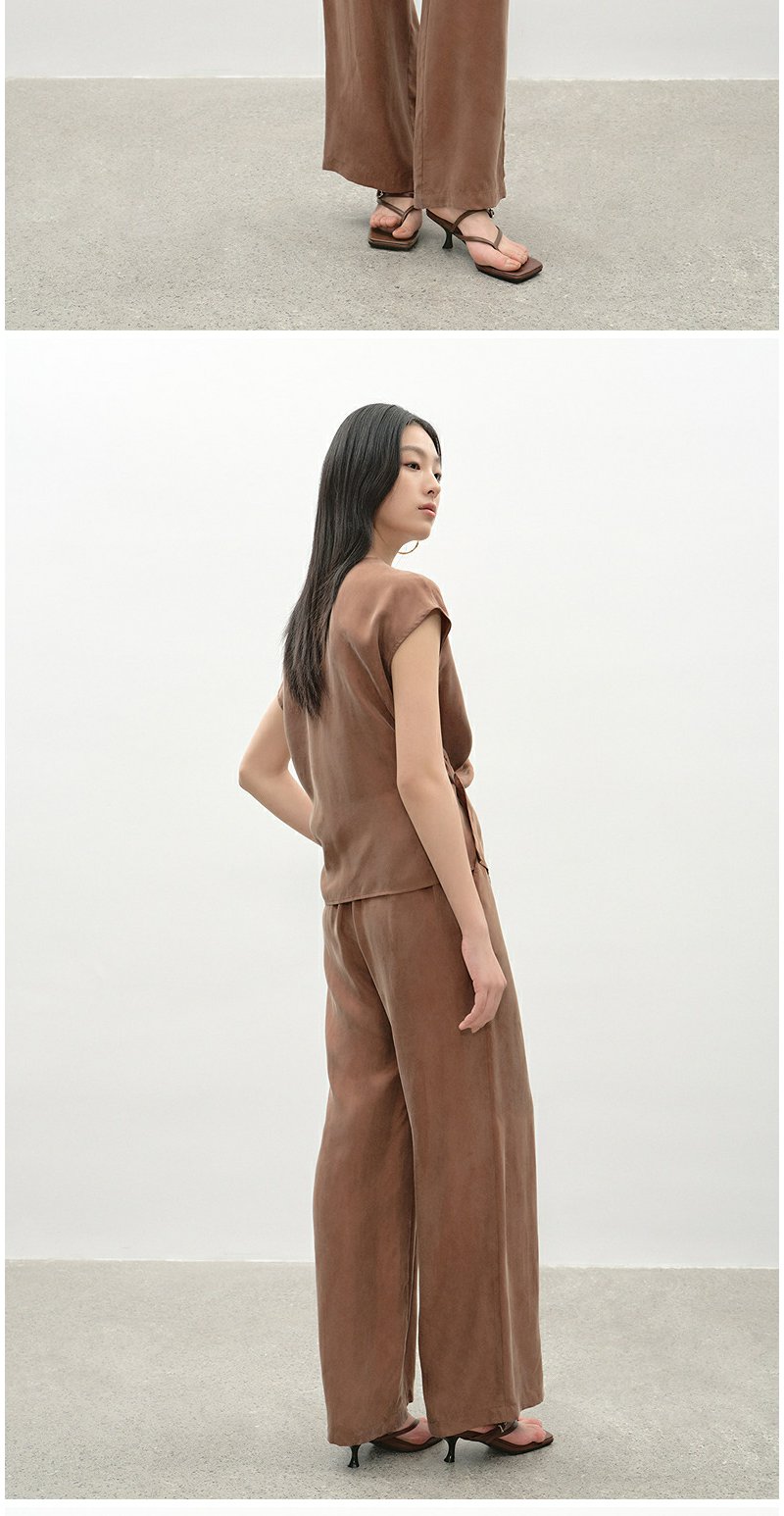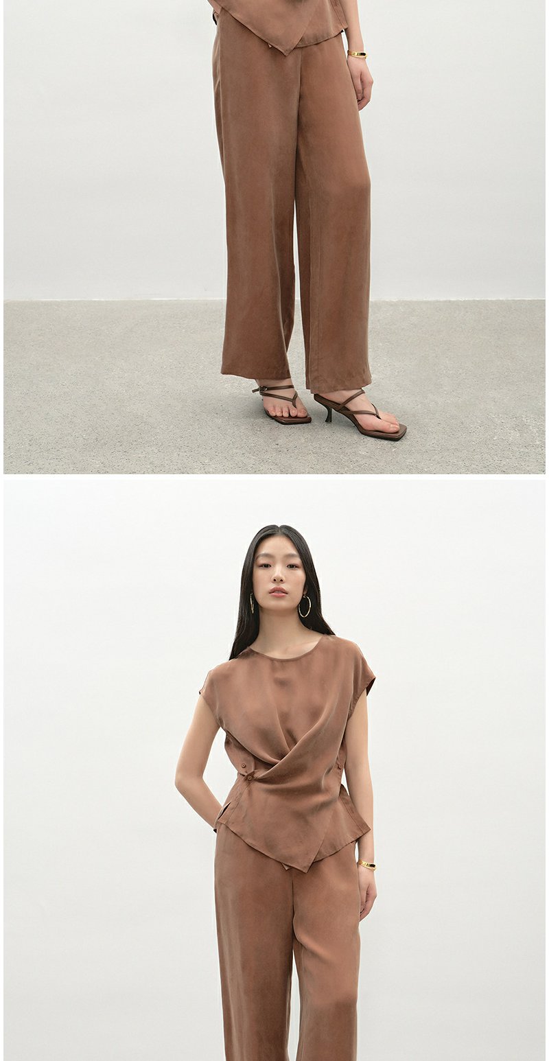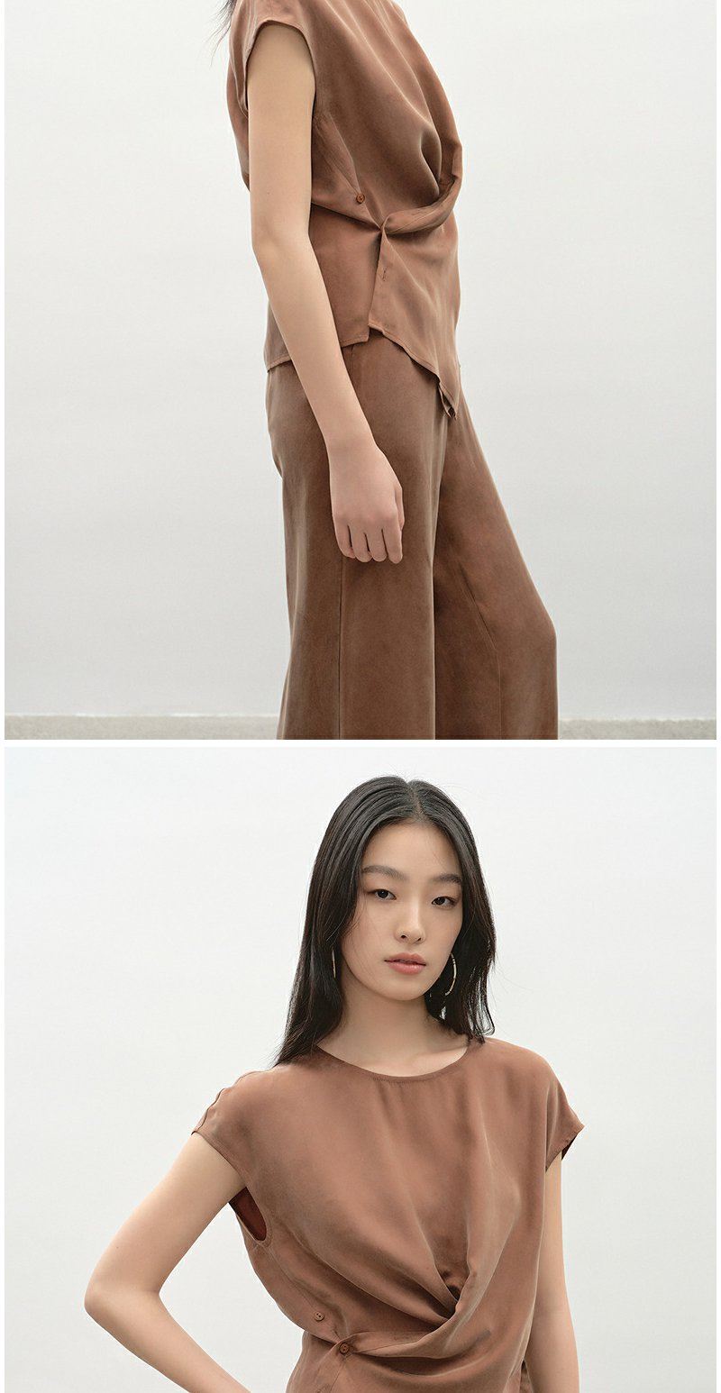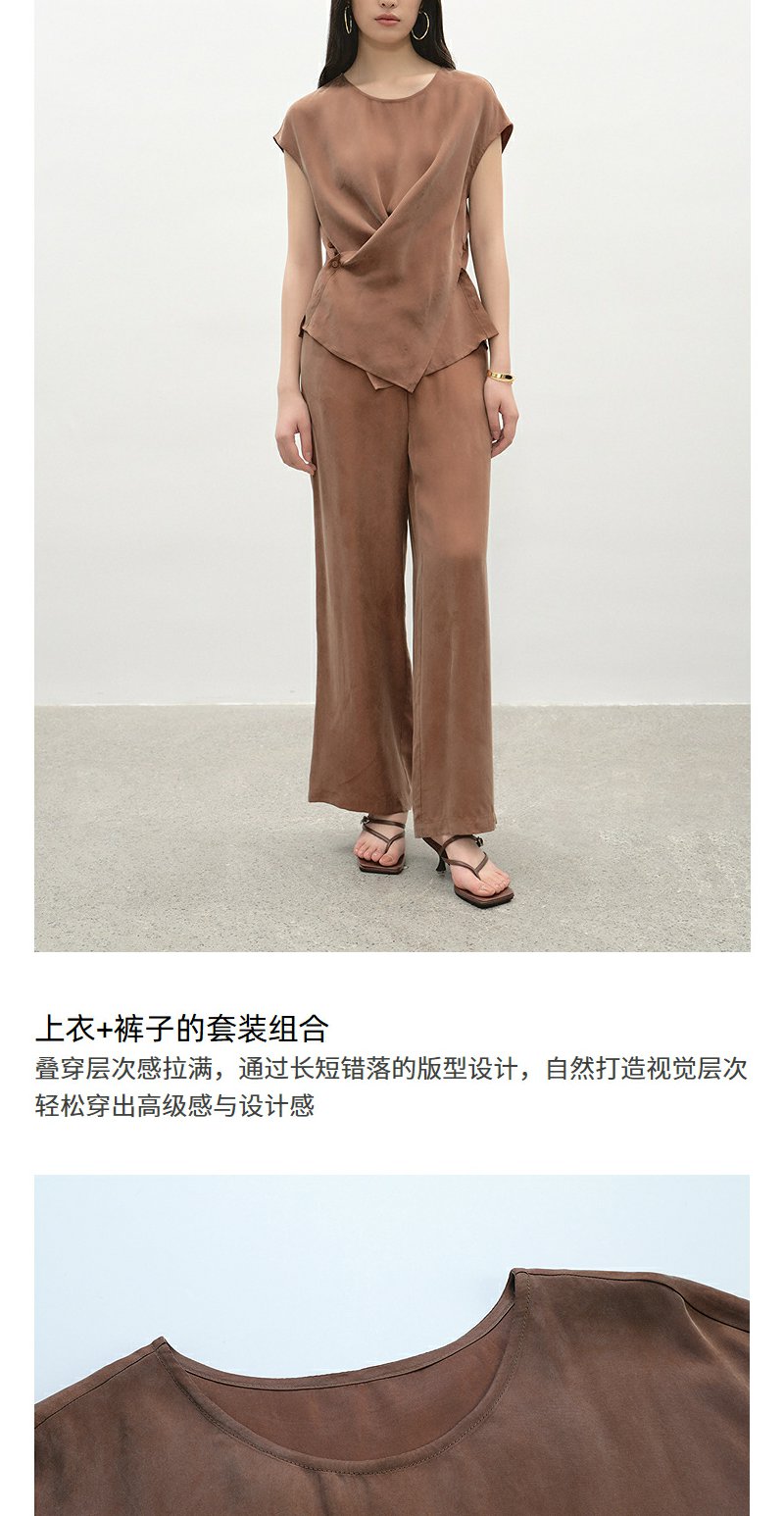 NEELLY纳俪商场同款夏新款都市休闲时尚套装女大地色系上衣两件套N25045Z01117