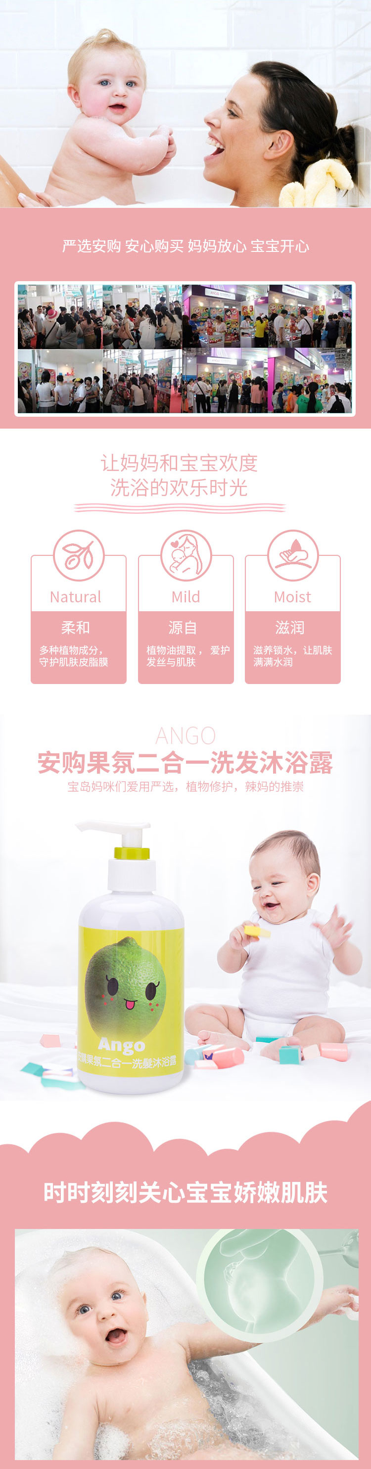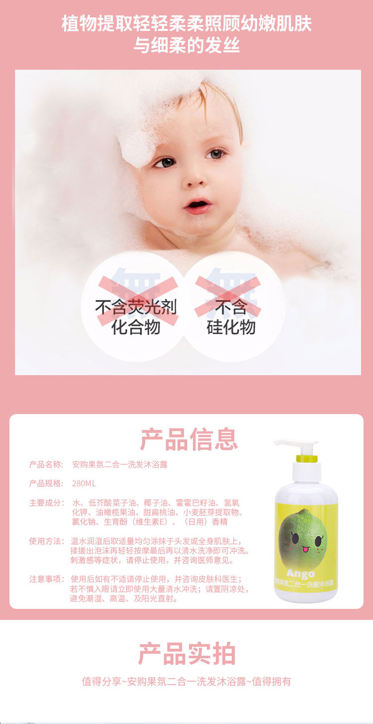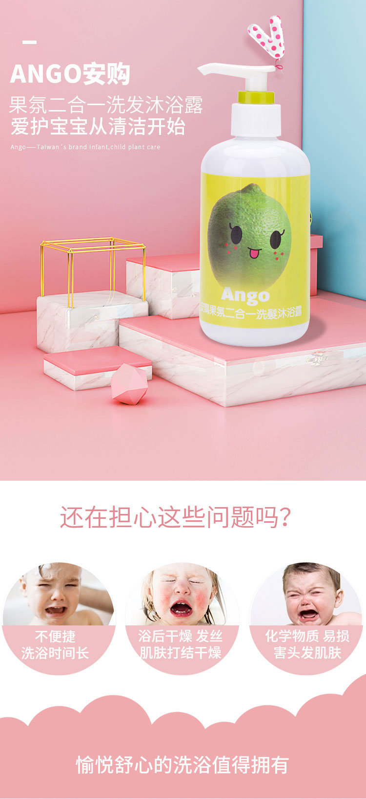 安购洗发沐浴露二合一280ml 2瓶组合婴儿儿童洗护宝宝沐浴液低泡
