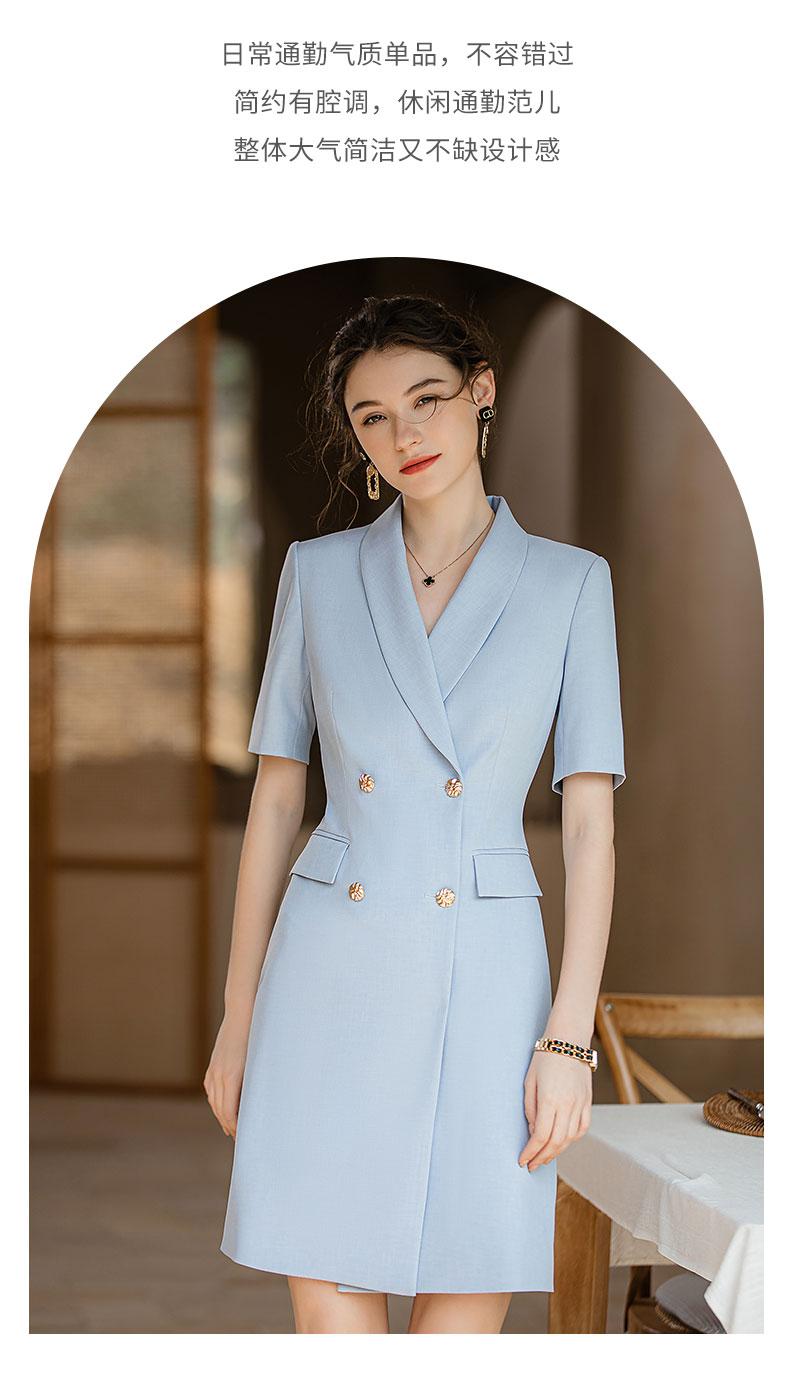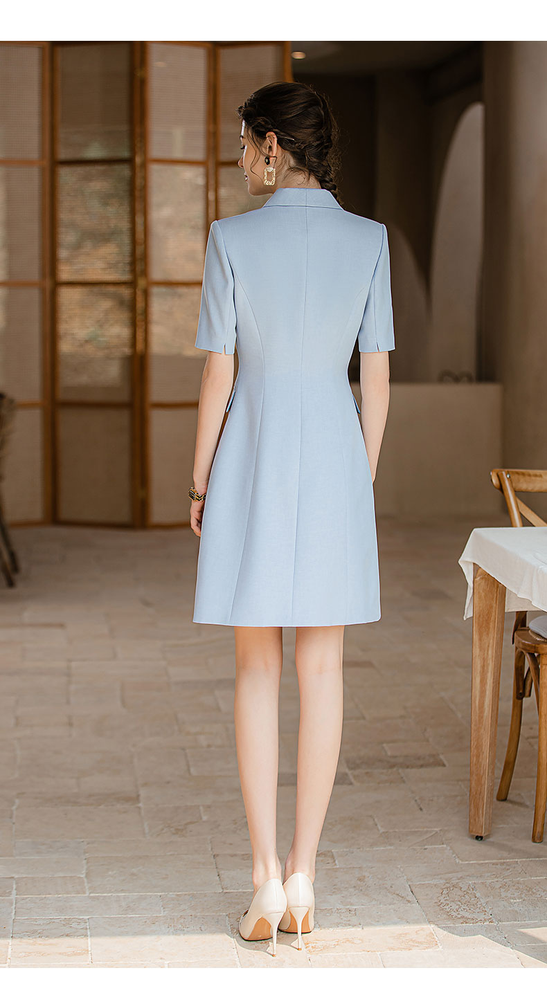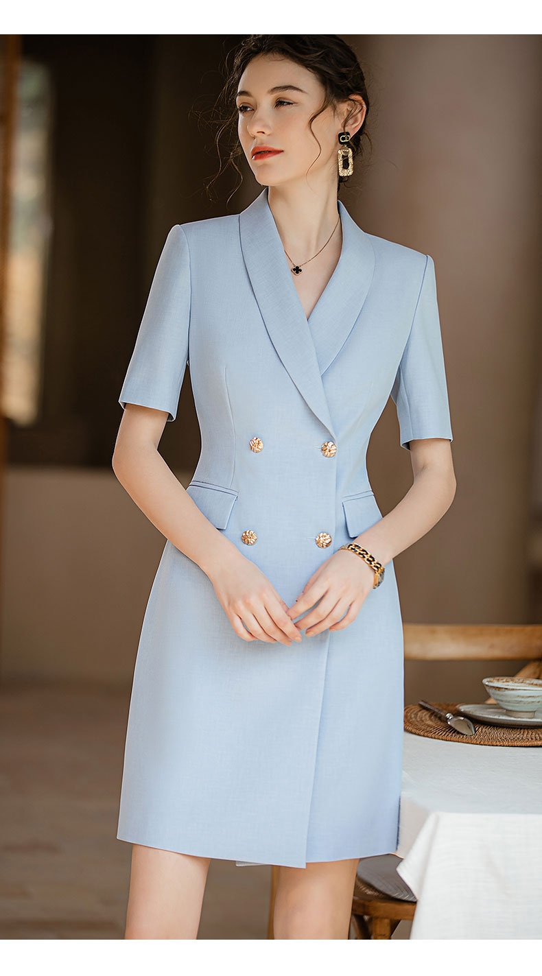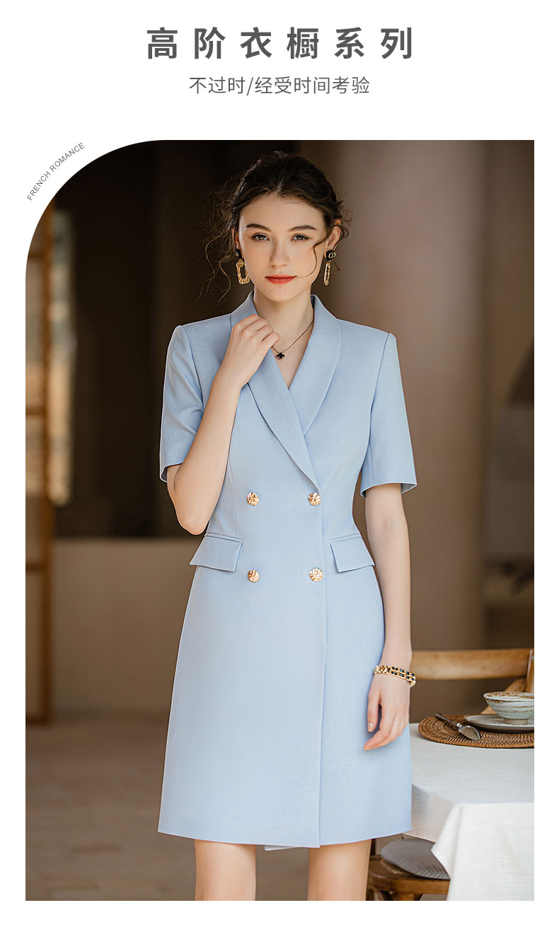IWY/夏季新款西装连衣裙女设计感蓝色小清新气质优雅职业通勤正装Q913-L