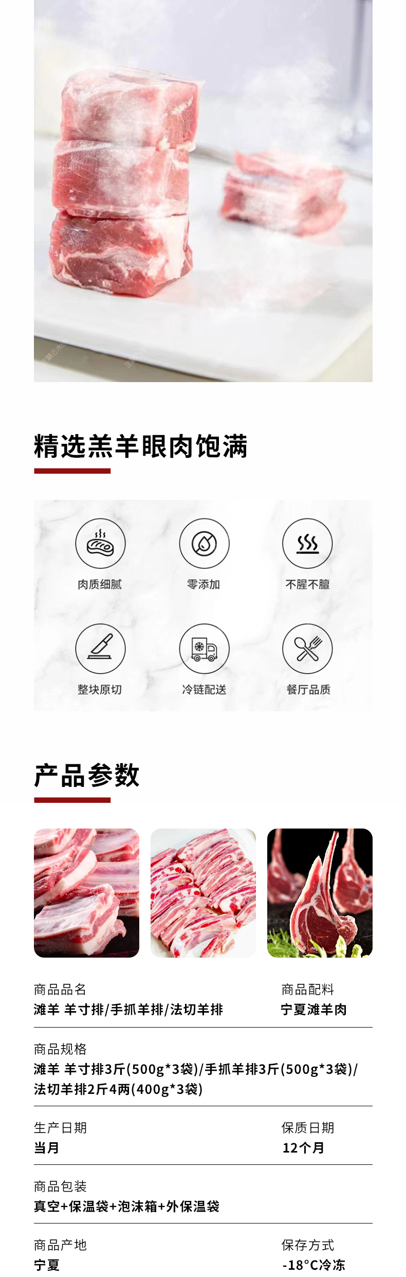 宁夏滩羊 羊寸排/手抓羊排/法切羊排 3包装