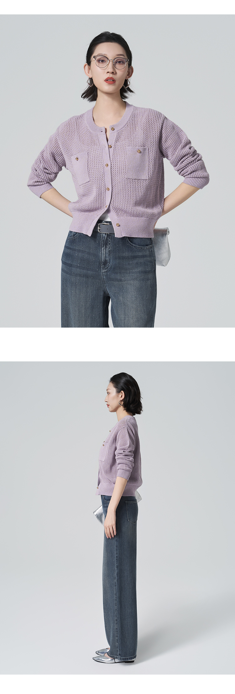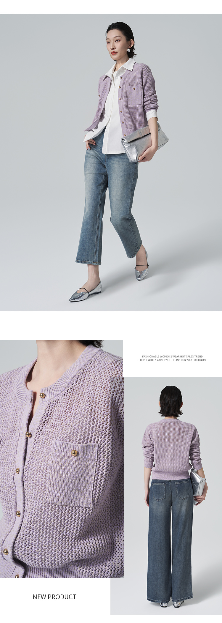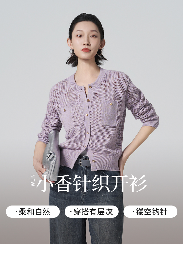 【商场同款】CNR6350 “ 温柔紫色镂空毛衫 ” 棉纱线打造 干爽舒适 好穿雅致