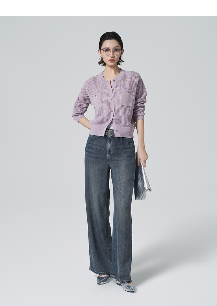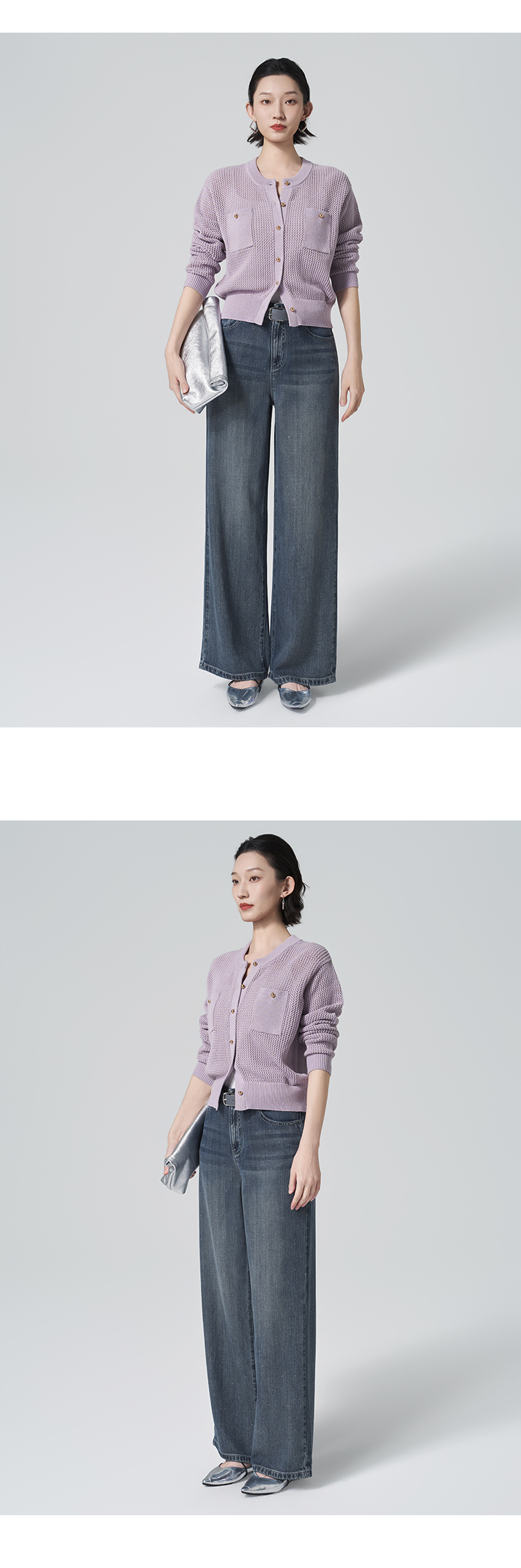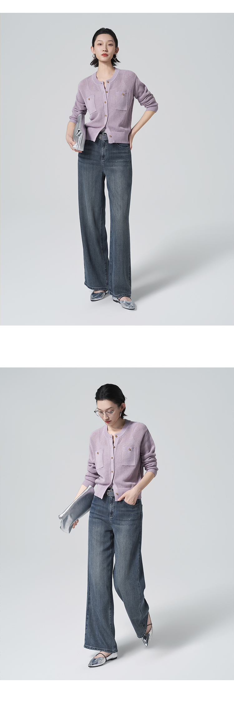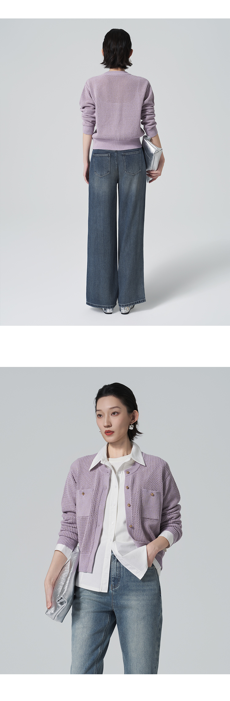 【商场同款】CNR6350 “ 温柔紫色镂空毛衫 ” 棉纱线打造 干爽舒适 好穿雅致
