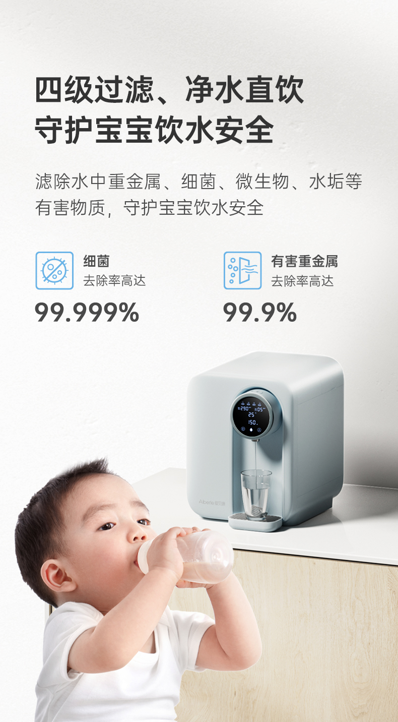 爱贝源弱碱矿泉净水器家用即热饮水机台式免安装式直饮加热一体机