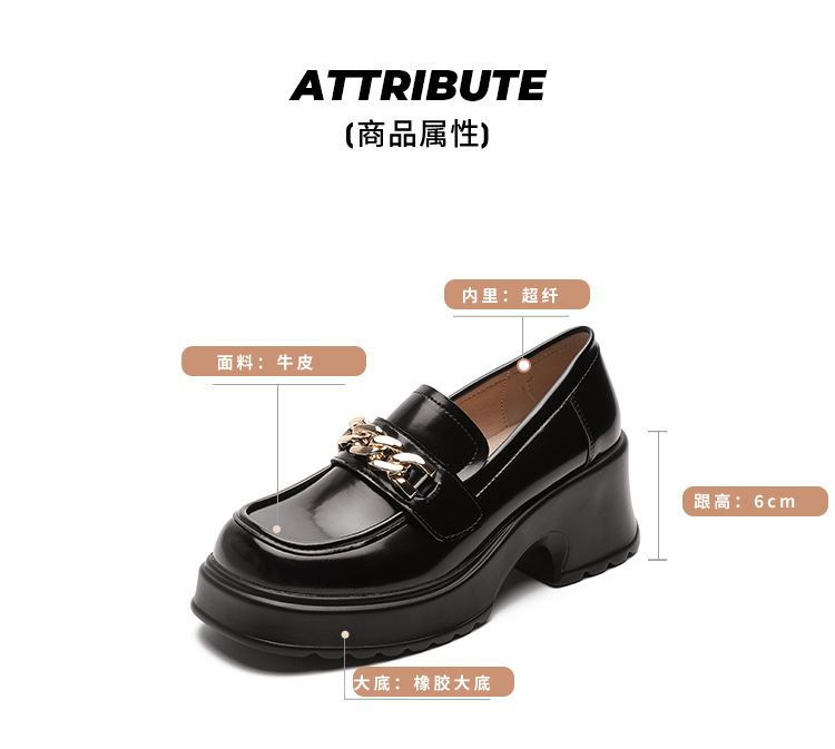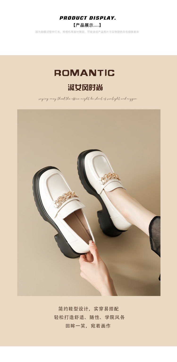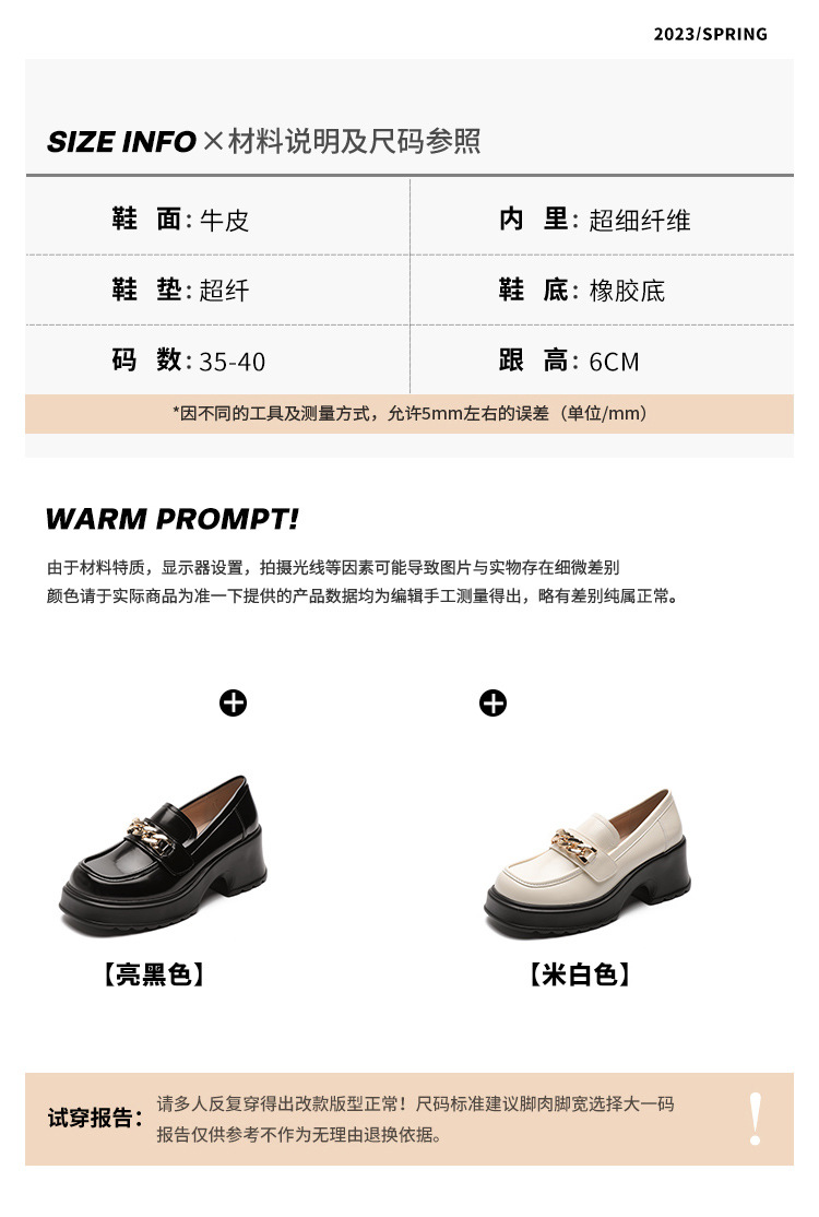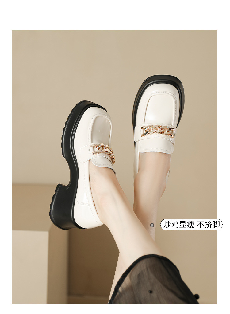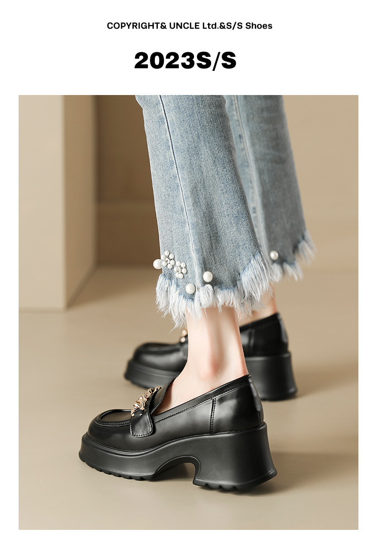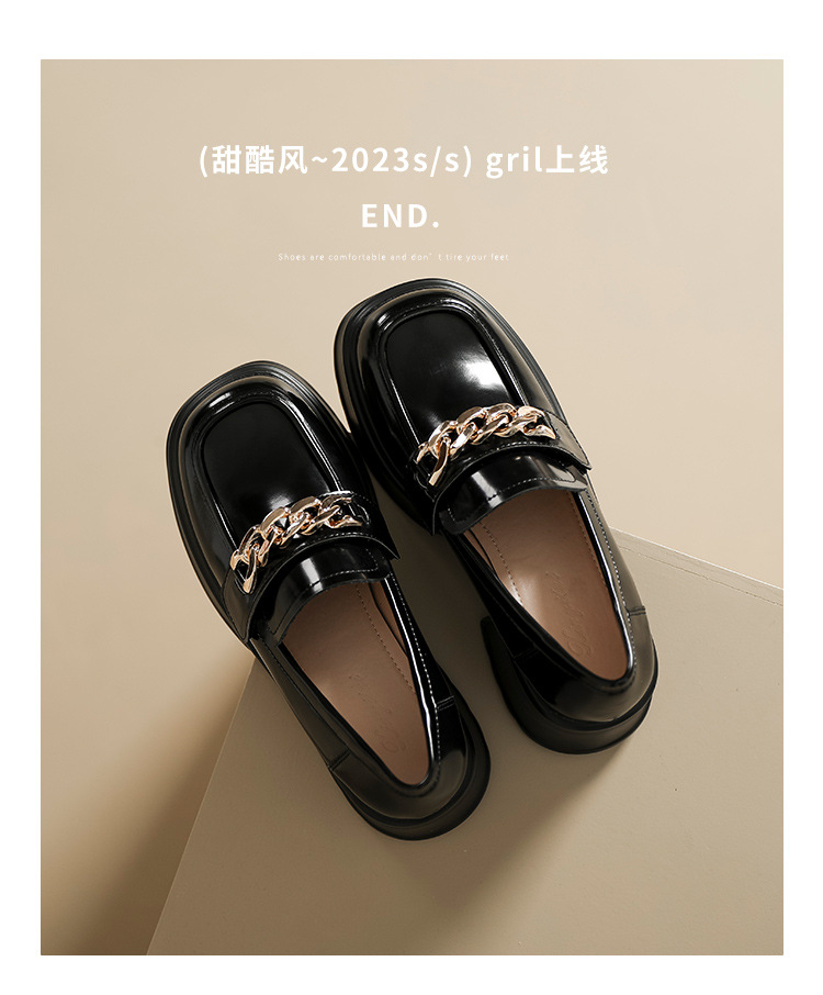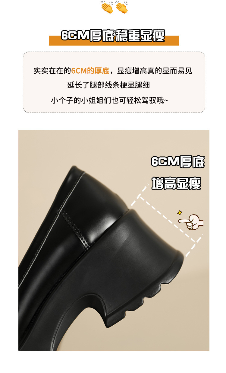 英伦风小皮鞋女2023年春季新款厚底增高乐福鞋松糕底粗跟单鞋