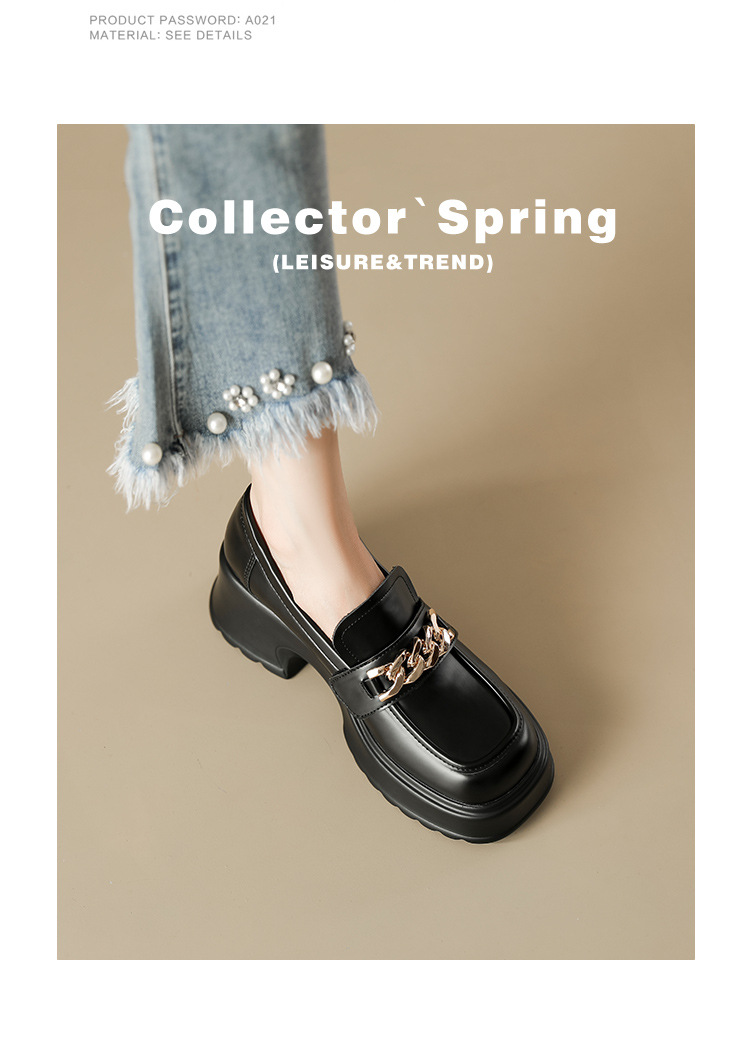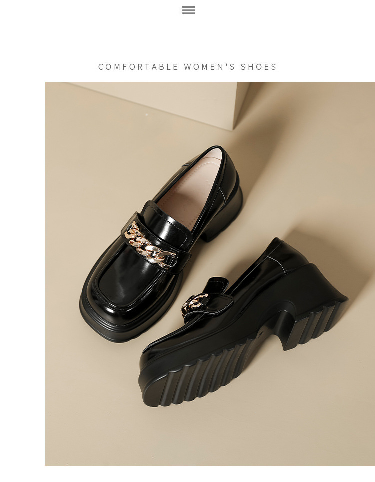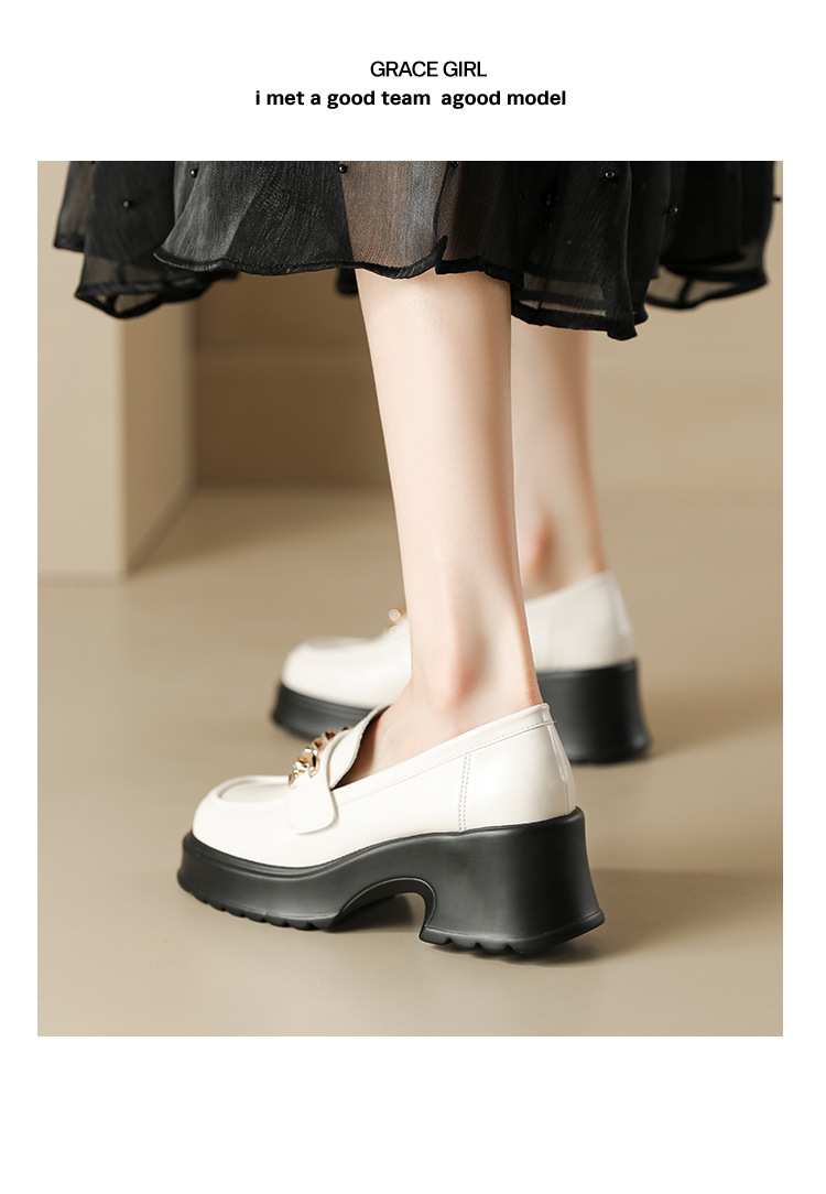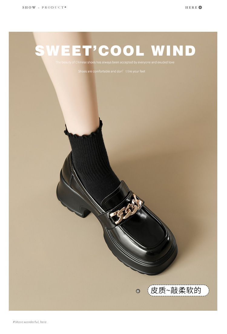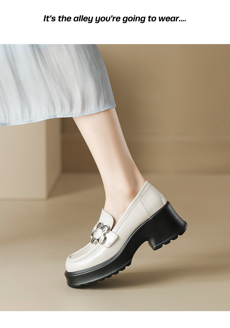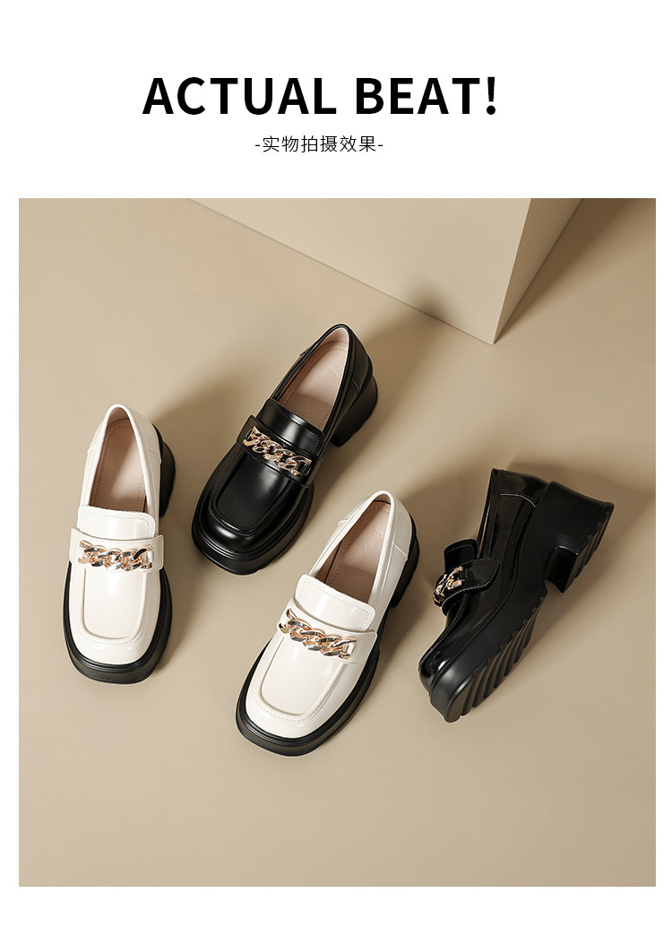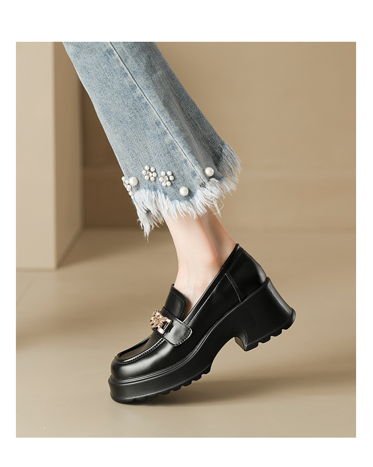 英伦风小皮鞋女2023年春季新款厚底增高乐福鞋松糕底粗跟单鞋