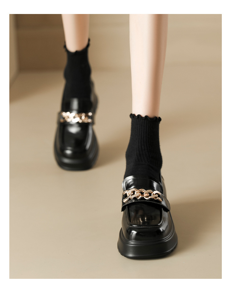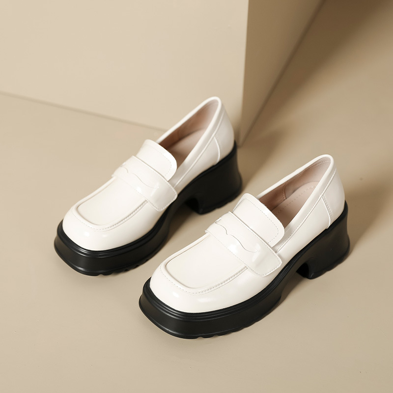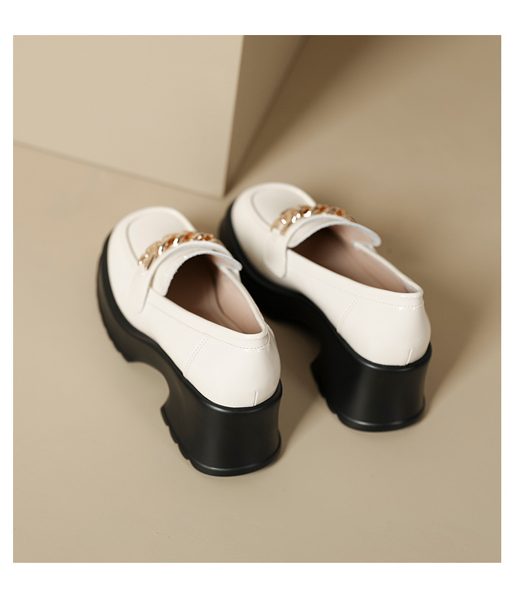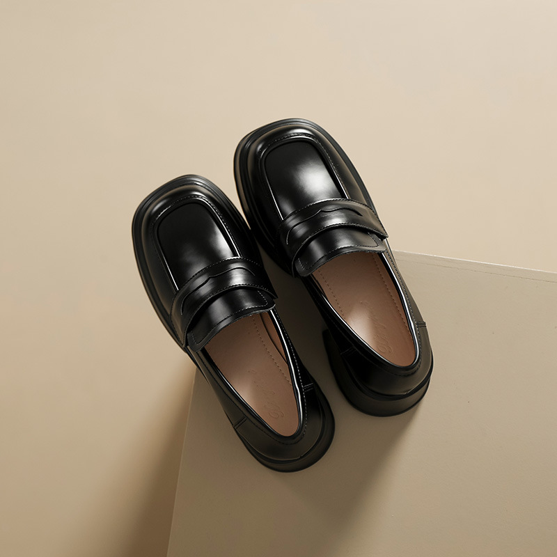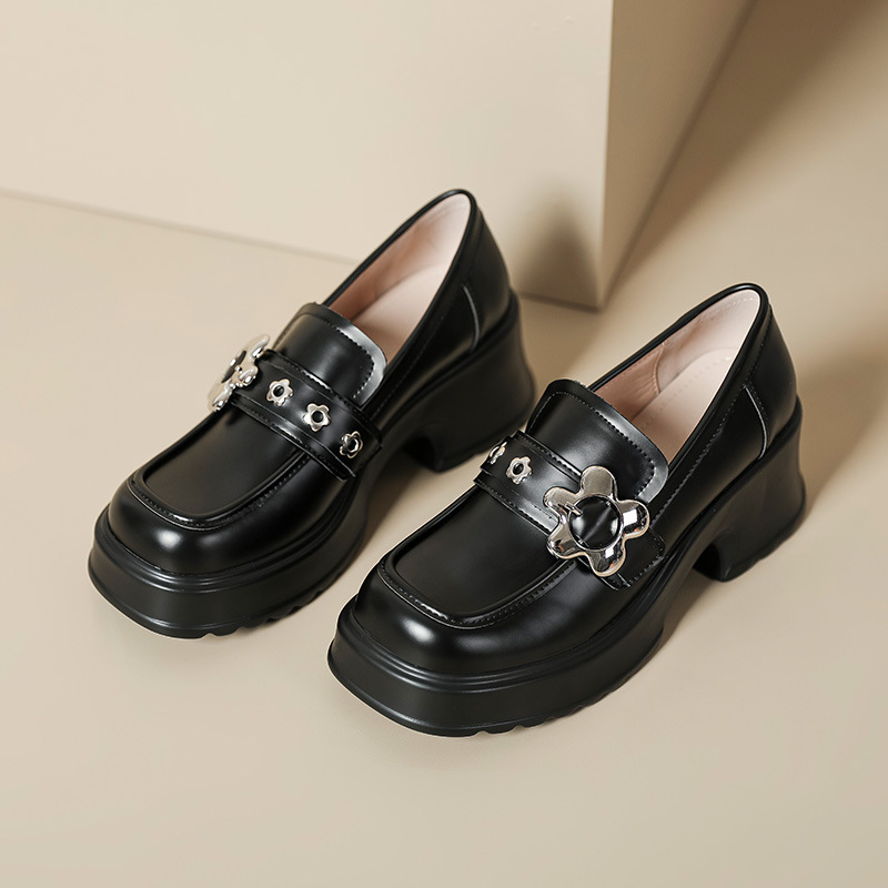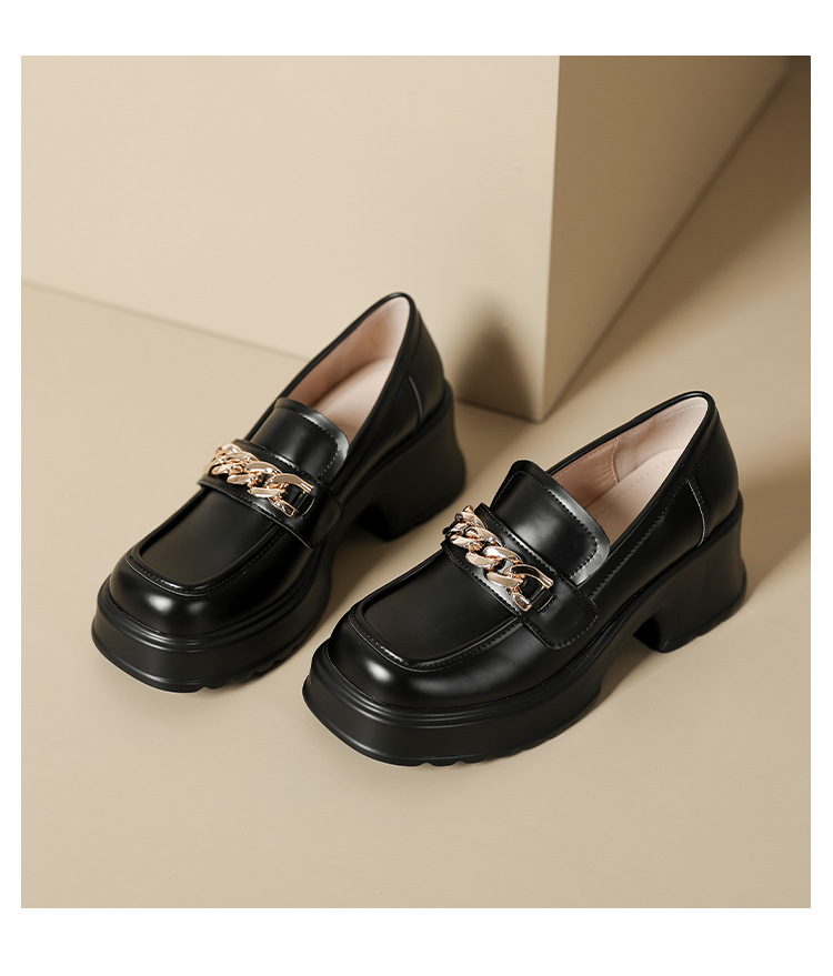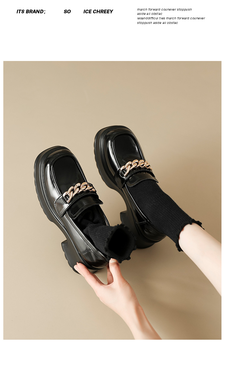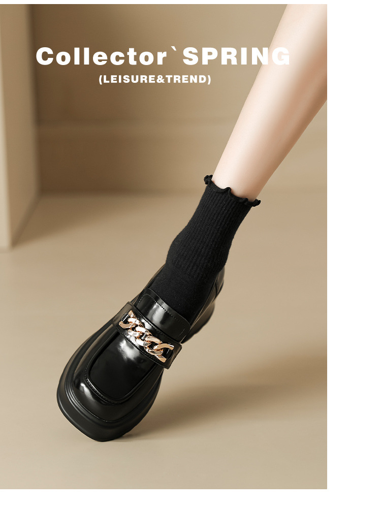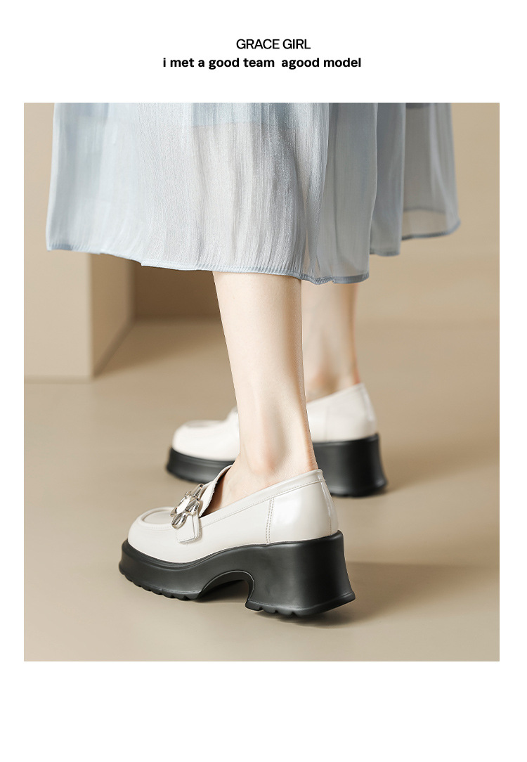英伦风小皮鞋女2023年春季新款厚底增高乐福鞋松糕底粗跟单鞋