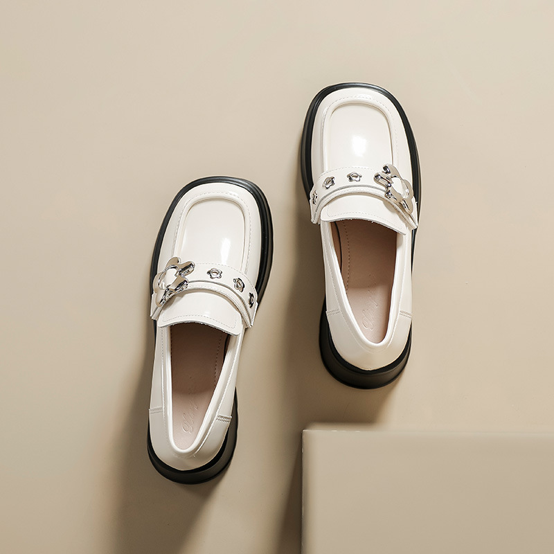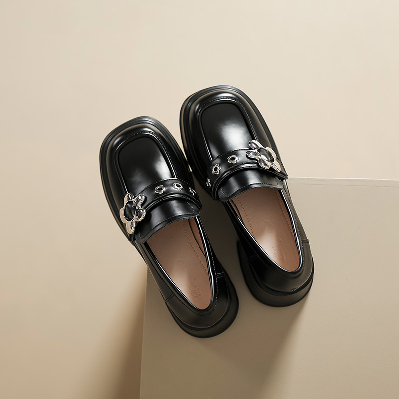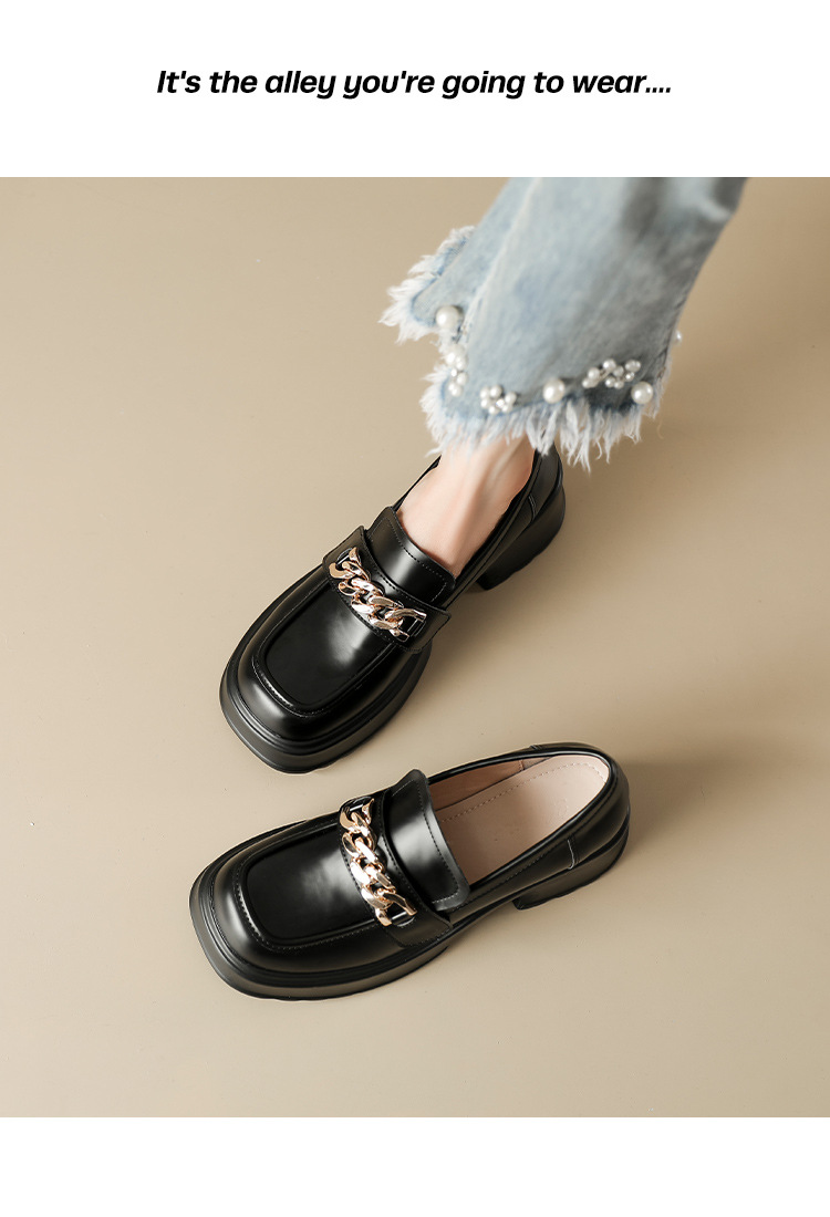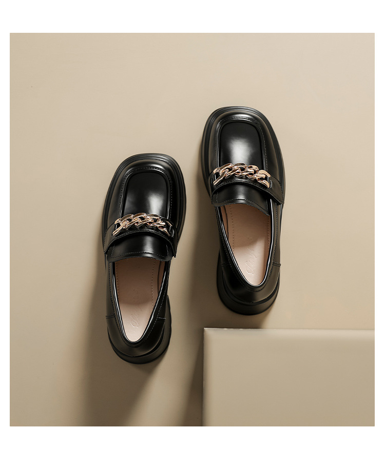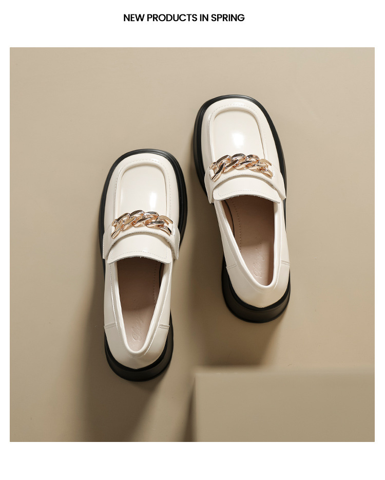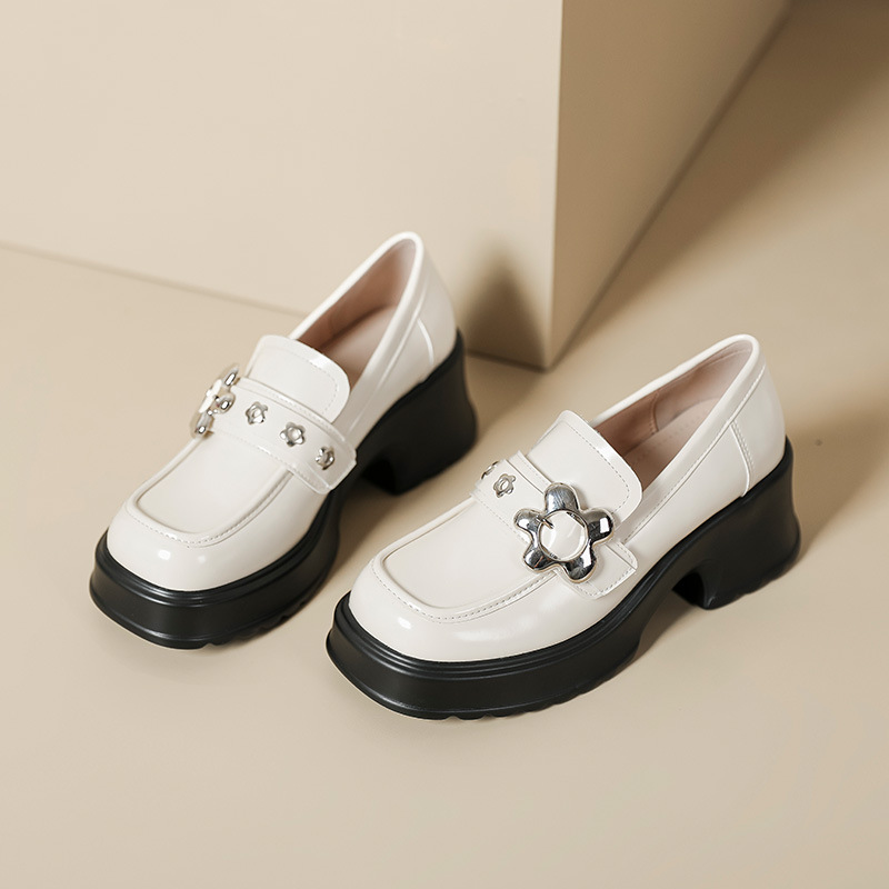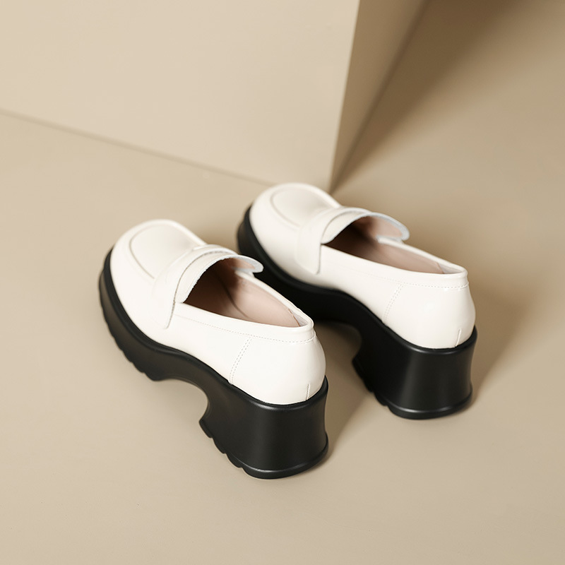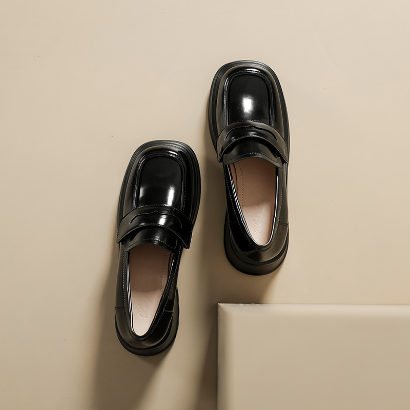 英伦风小皮鞋女2023年春季新款厚底增高乐福鞋松糕底粗跟单鞋