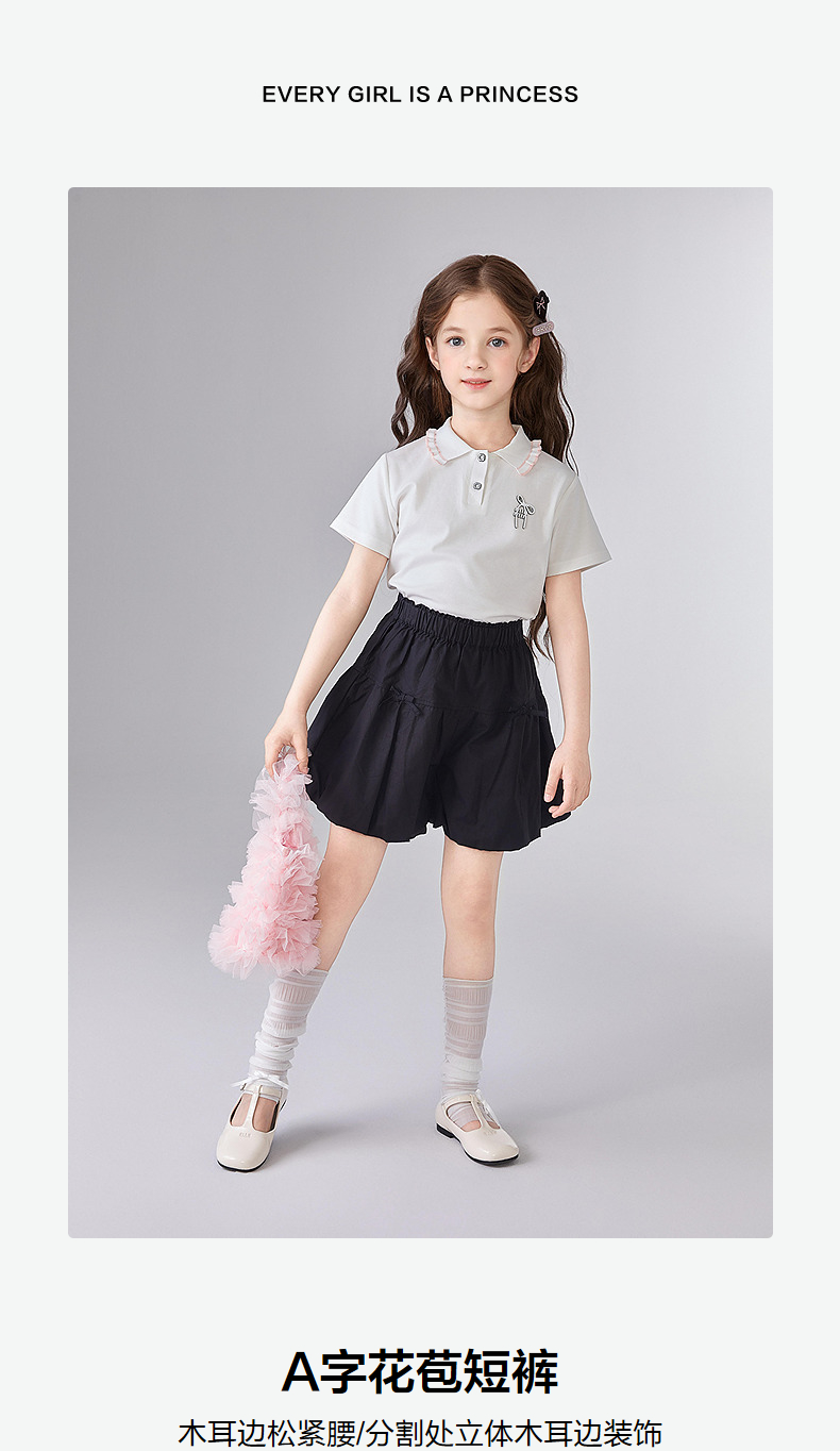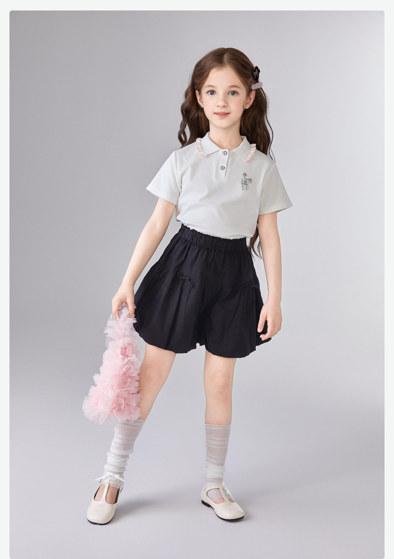 笛莎Deesha 2026年夏季新款中童女童翻领T恤T恤