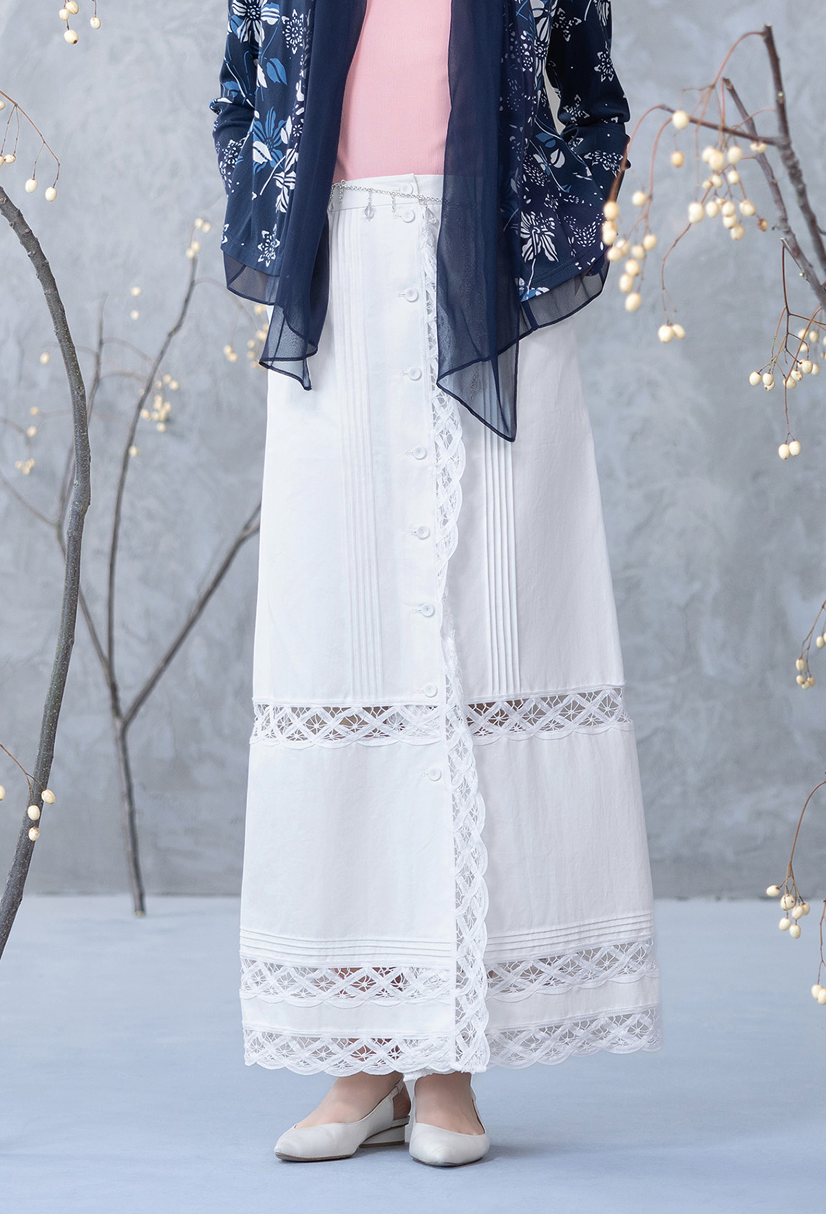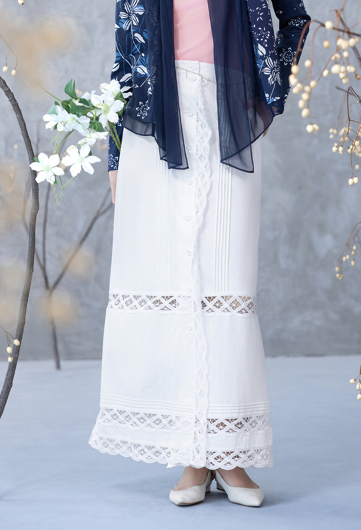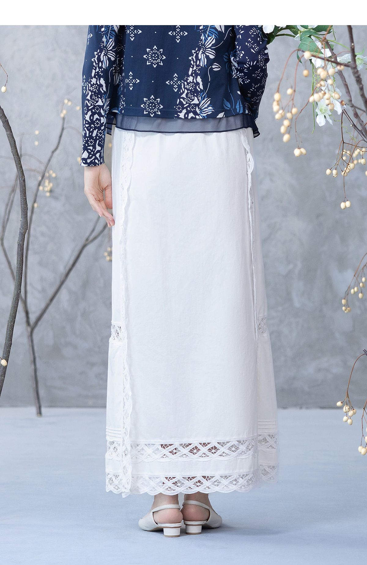 【林栖设计小店】纯棉半身裙镂空花边优雅直筒设计感2025春夏新品裙子女1952033
