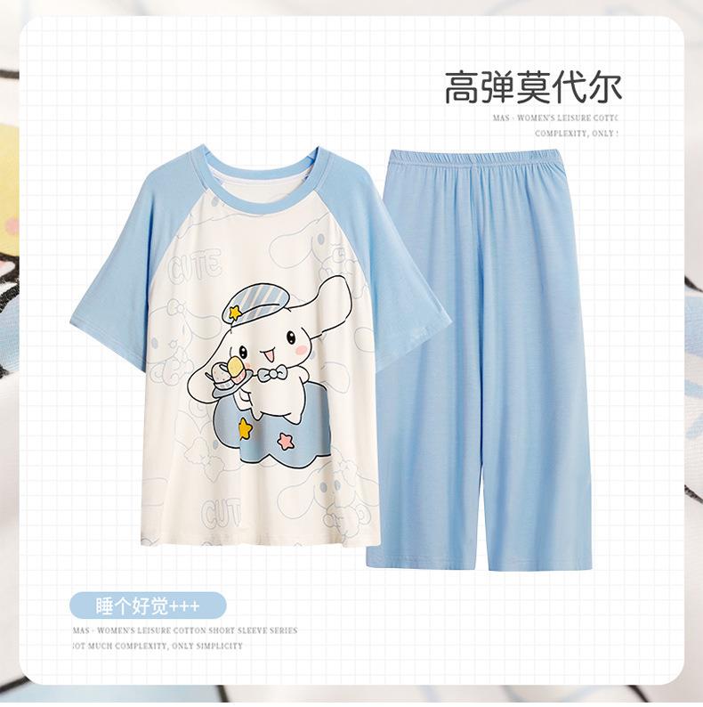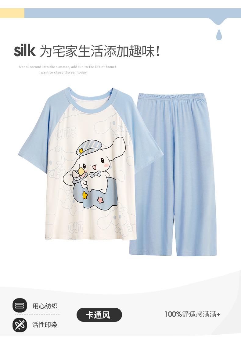 儿童莫代尔睡衣夏季女童短袖七分裤薄款套装公主女孩中大童家居服