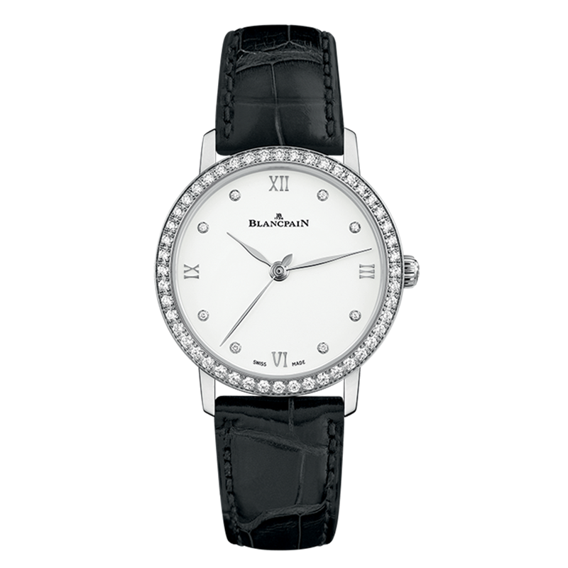 镜面 材质 | 蓝宝石水晶玻璃 | 表盘 | 精钢镶钻表壳 白色表盘,罗马数字搭配钻石刻度时标 |