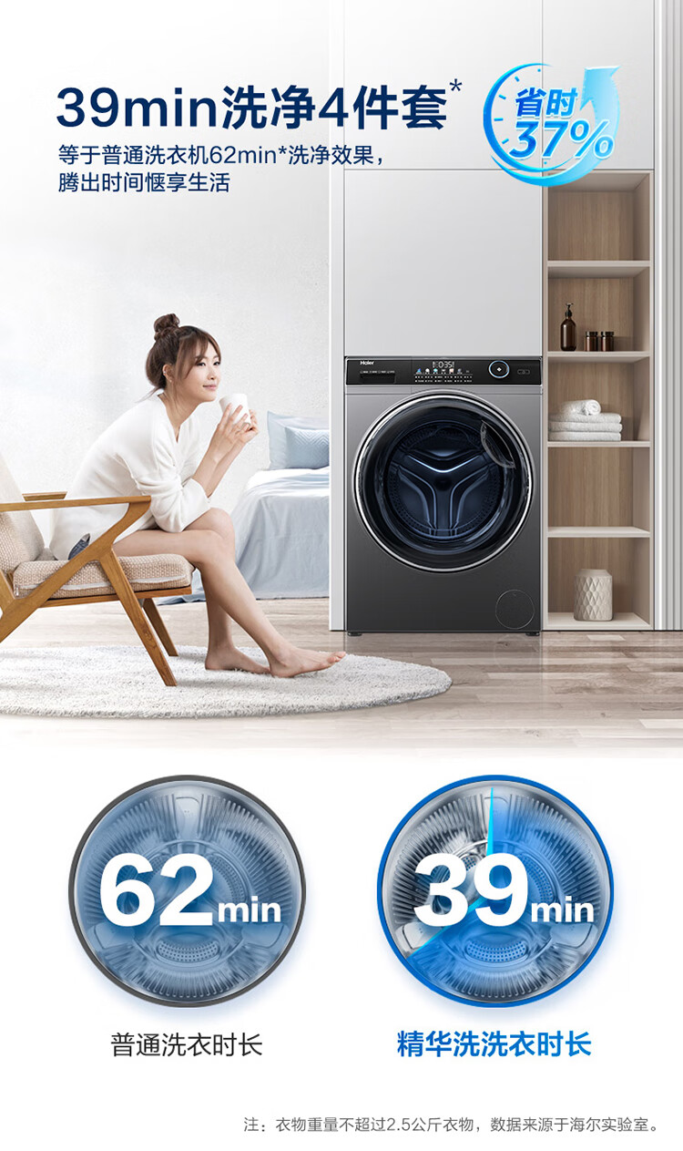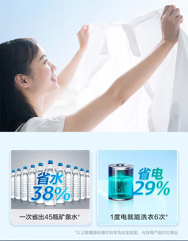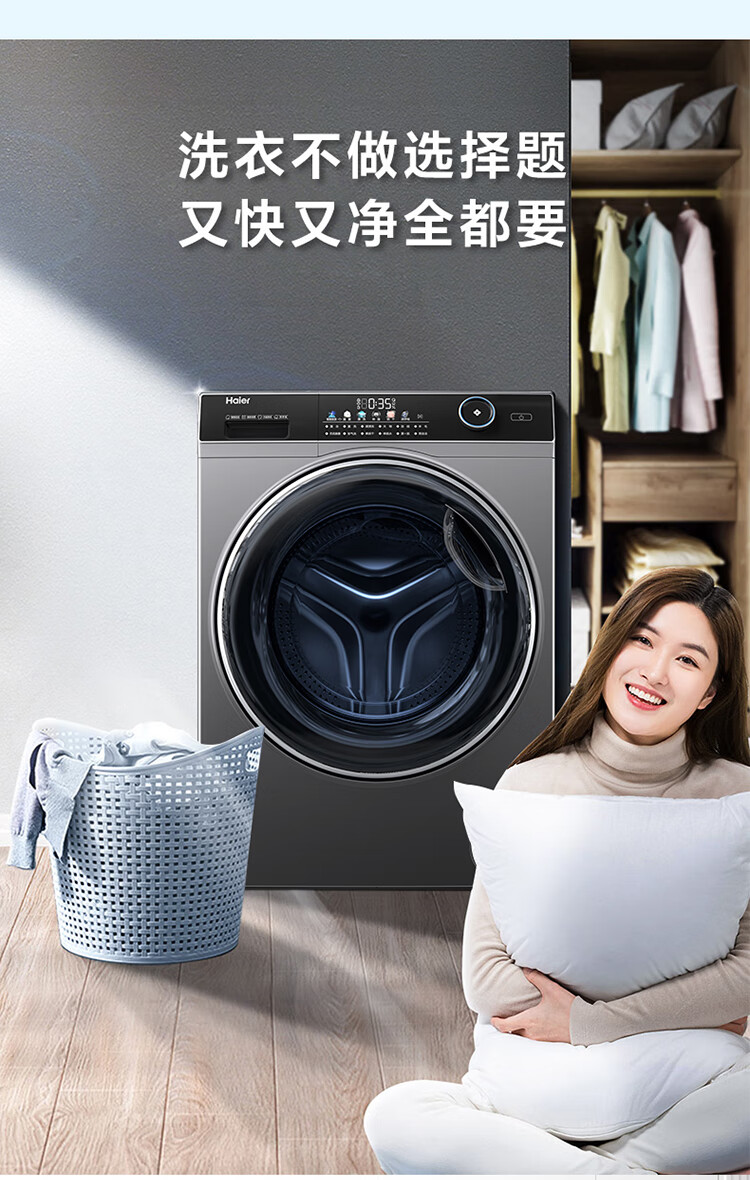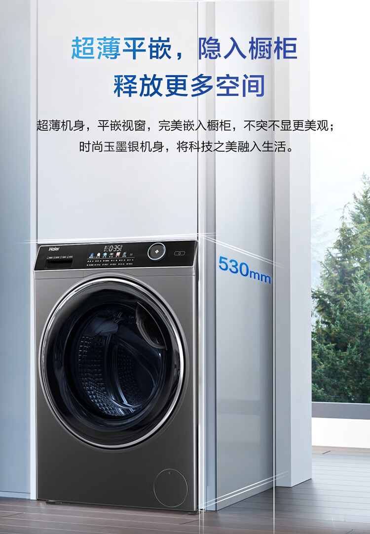 海尔精华洗10KG滚筒洗烘一体 超薄平嵌 智能投放 525大筒径 除菌螨 XQG100-HBD146L