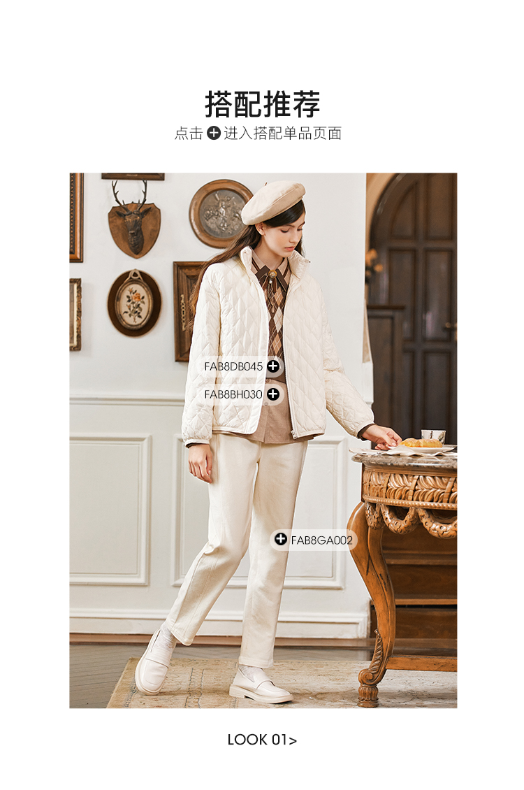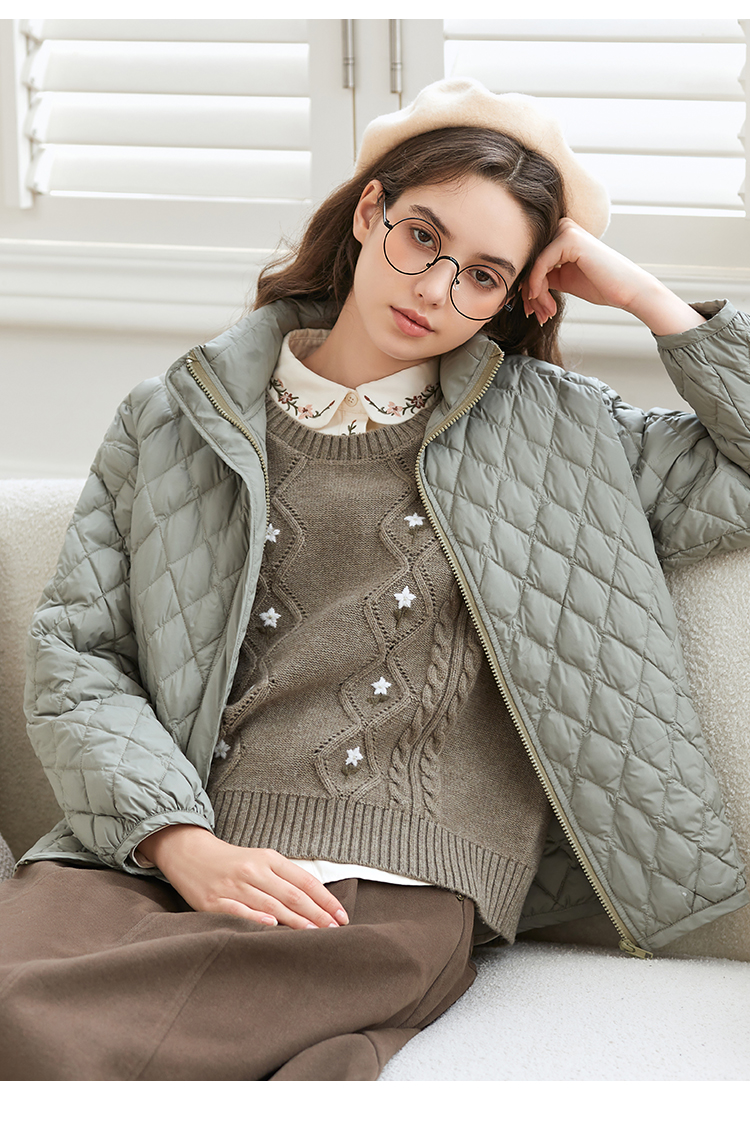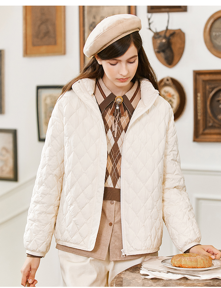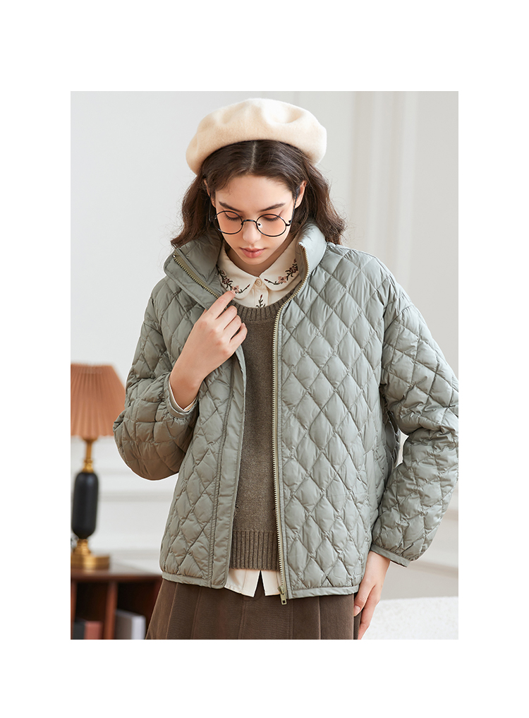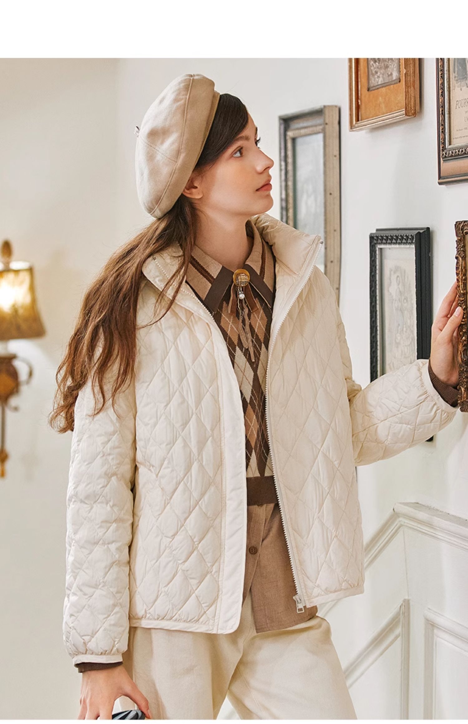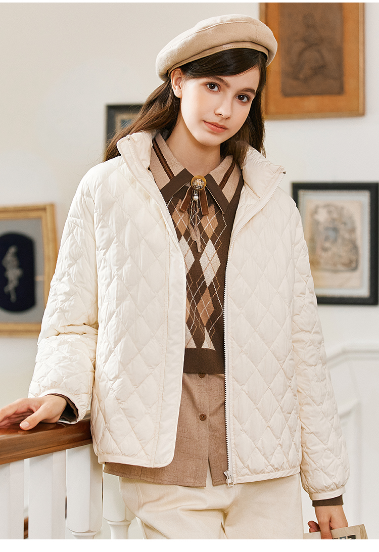 Famecoco范可儿短款轻薄保暖菱格绗缝羽绒服女款FAB8AM030