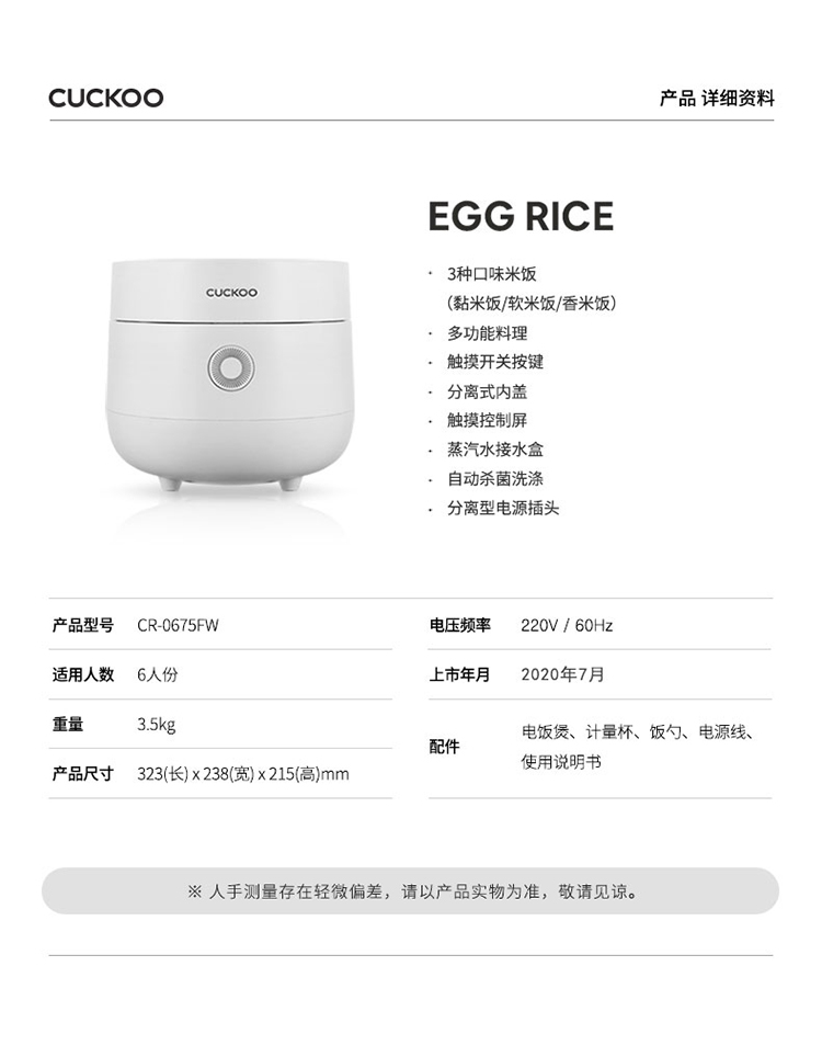 网红“鸡蛋”锅/福库迷你小电饭煲锅3L一人食CR-0675FW