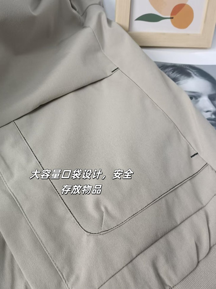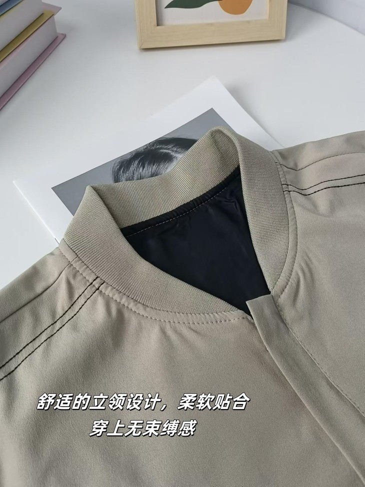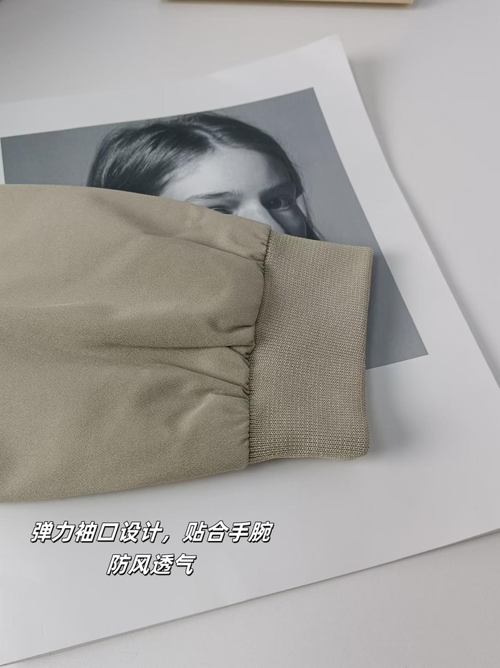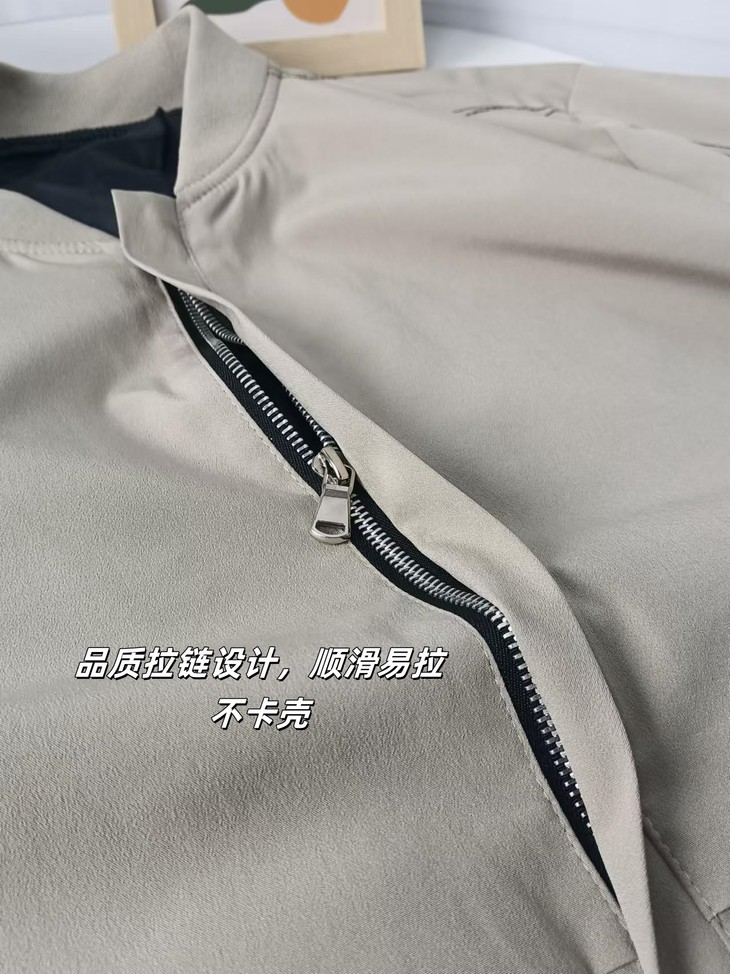 ✅棒球领设计,清冷气质感,可护住脖颈 ✅落肩袖设计打破沉闷柔和肩部线条,不受肩宽所限,藏肉不显手臂 伸展自然没有束缚感,达到视觉上显瘦的效果 ✅拉链门襟穿着轻松 ✅大身采用双切线工艺 饱满有型不瘪塌 凸显工艺上的精致考究