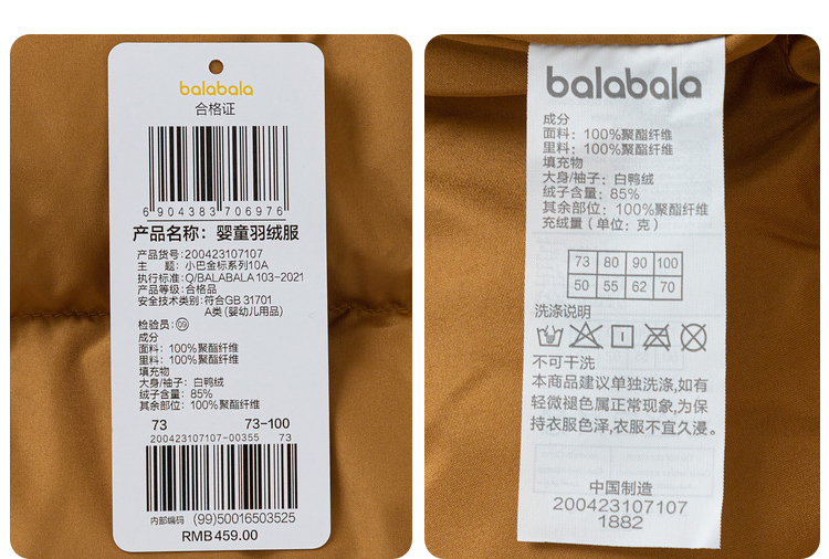巴拉巴拉宝宝羽绒服男童童装婴儿秋冬外套户外保暖时尚精致可爱萌