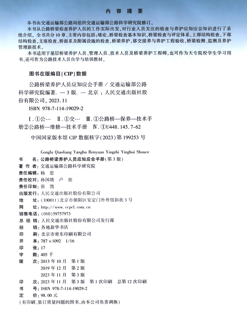 书名:公路桥梁养护人员应知应会手册(第3版)