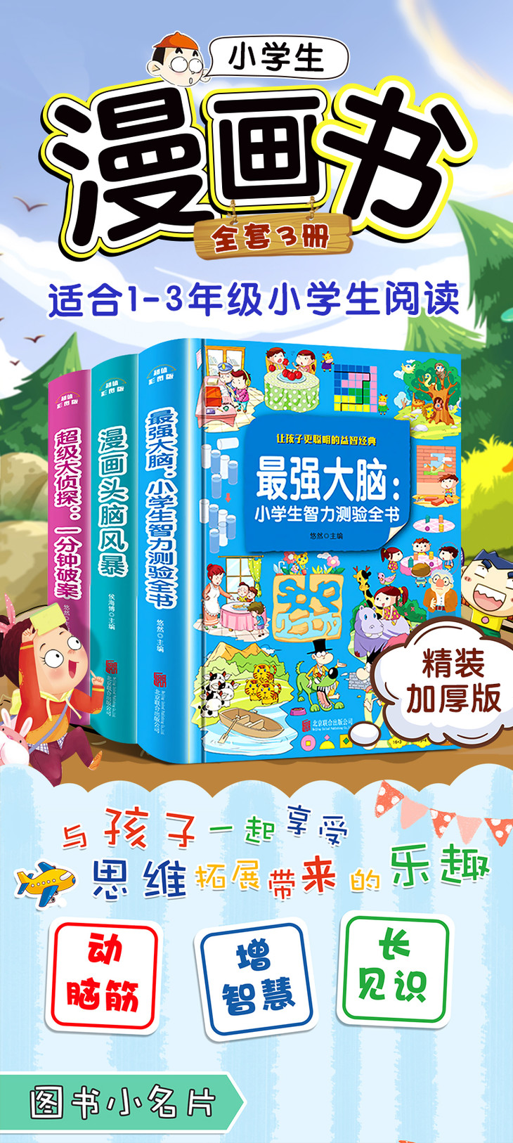 最强大脑 小学生推理开发全套3册漫画书逻辑思维专注力训练适合二年级课外书必读三年级阅读书籍老师推荐故事书儿童一年级看的