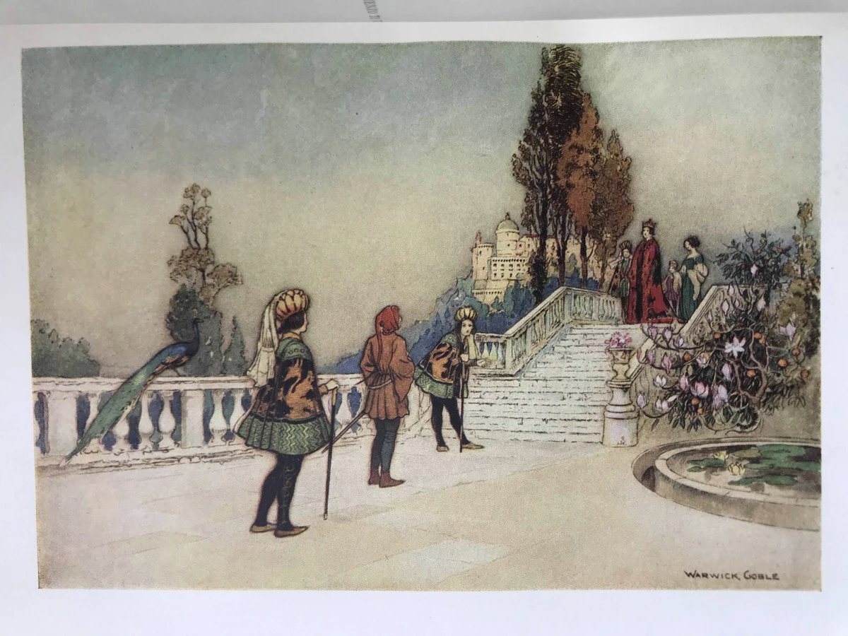 Warwick Goble(1862-1943)是一位英国的插图画家,最为人所知的是他为儿童文学和童话故事创作的精细插图,其中包括各种民间故事和神话。他的插图以其丰富的色彩、细致的线条和富有想象力的主题而闻名。