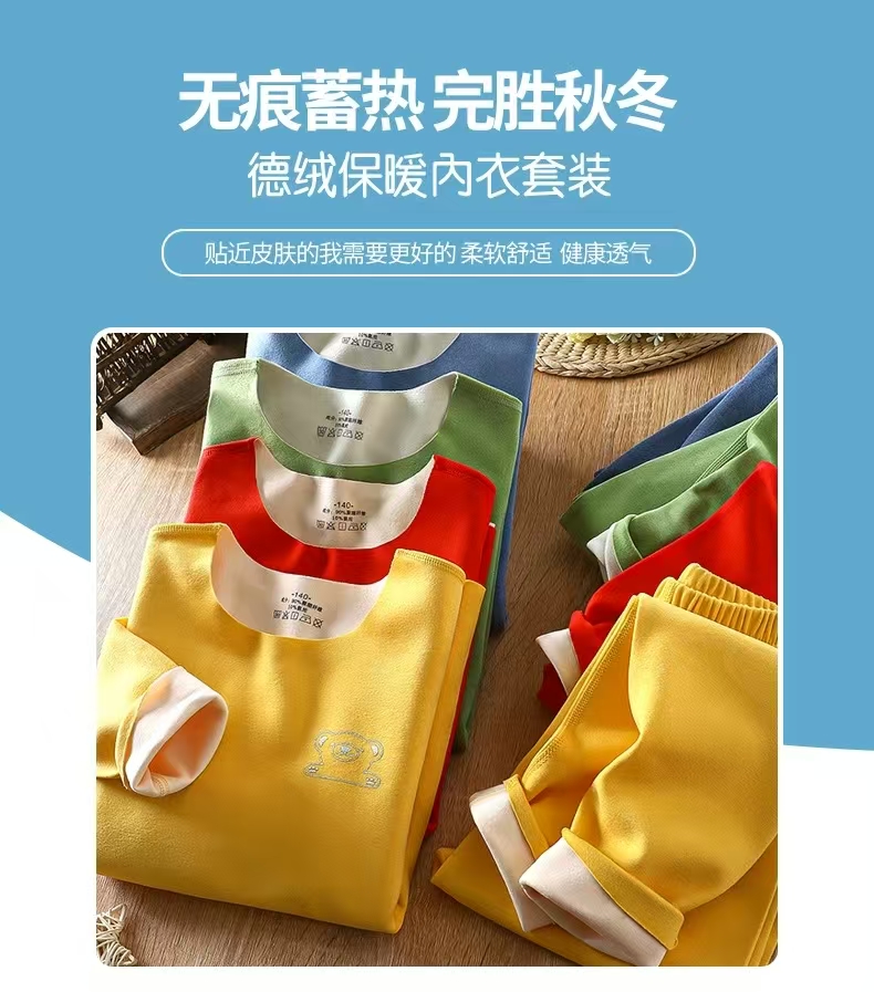 儿童德绒内衣 德绒内衣套装睡衣中大童无痕保暖套装男女童内衣