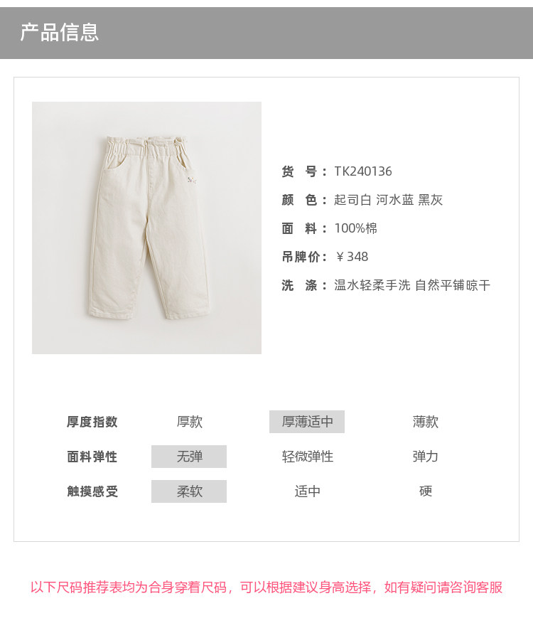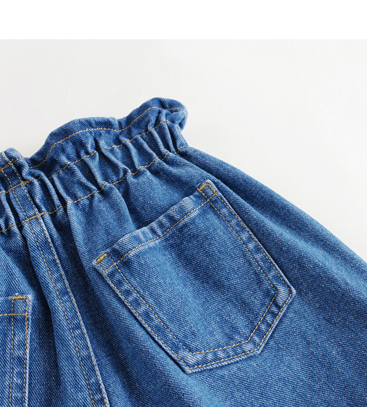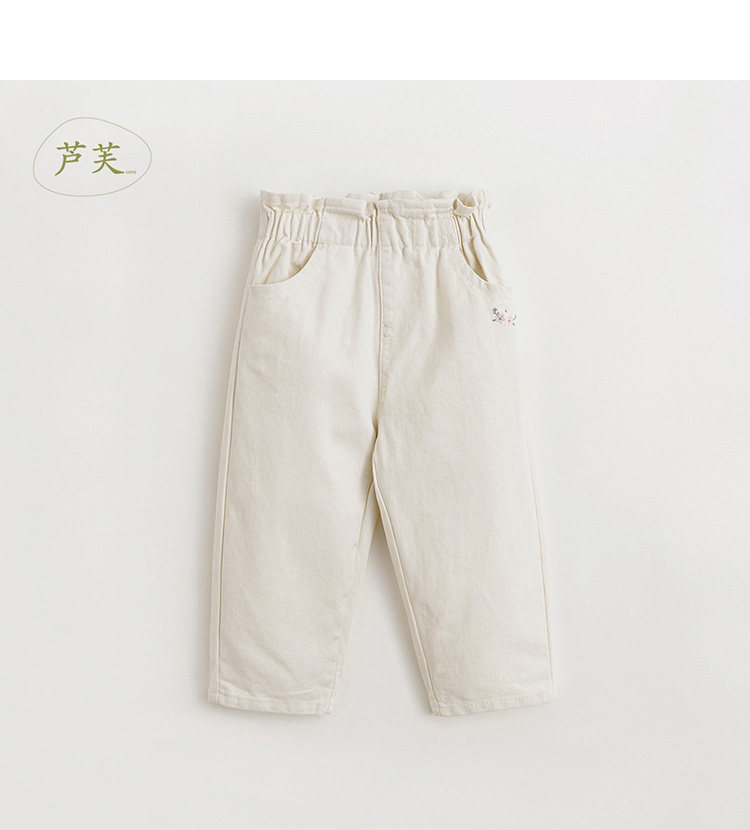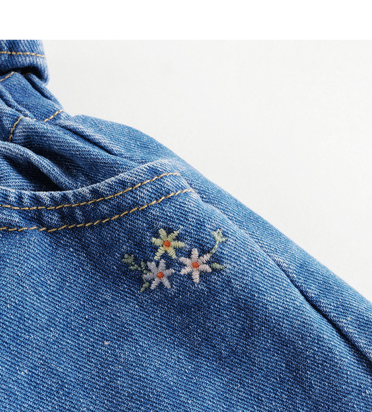 【马克珍妮 芦芙】女童纯棉小花刺绣花边腰牛仔裤240136