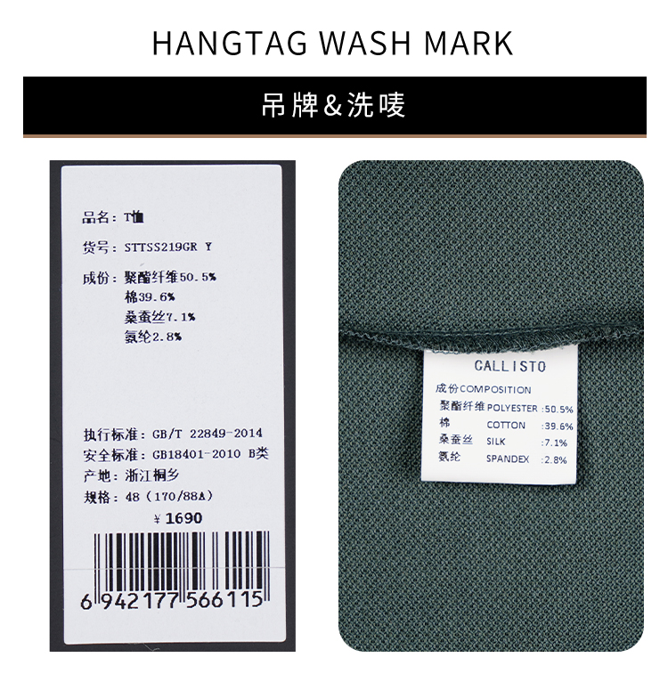 callisto绿色聚酯纤维混纺T恤 STTSS219Y