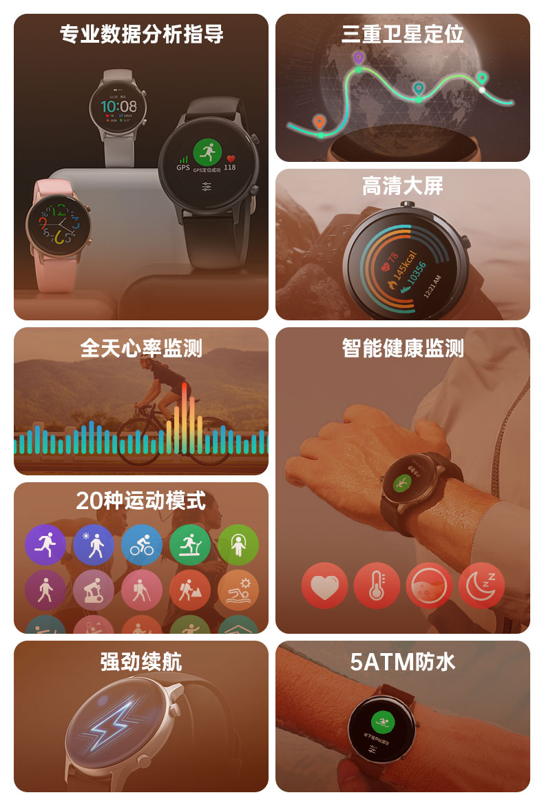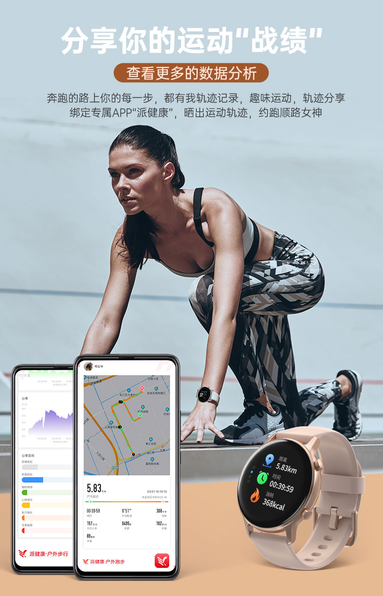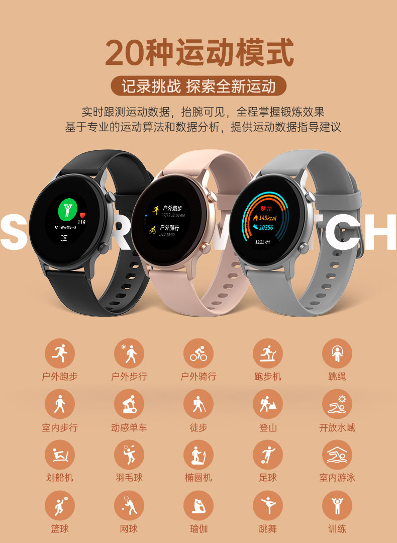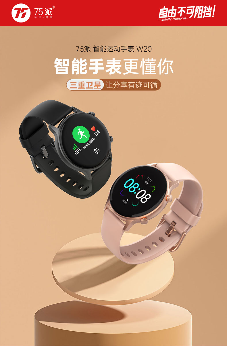 75派智能运动手表W20血压心率血氧监测健身运动手环适用华为小米apple手机APP多功能GPS定位