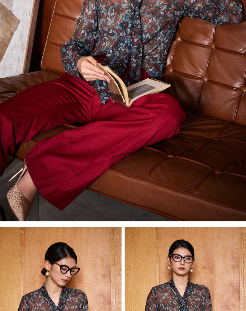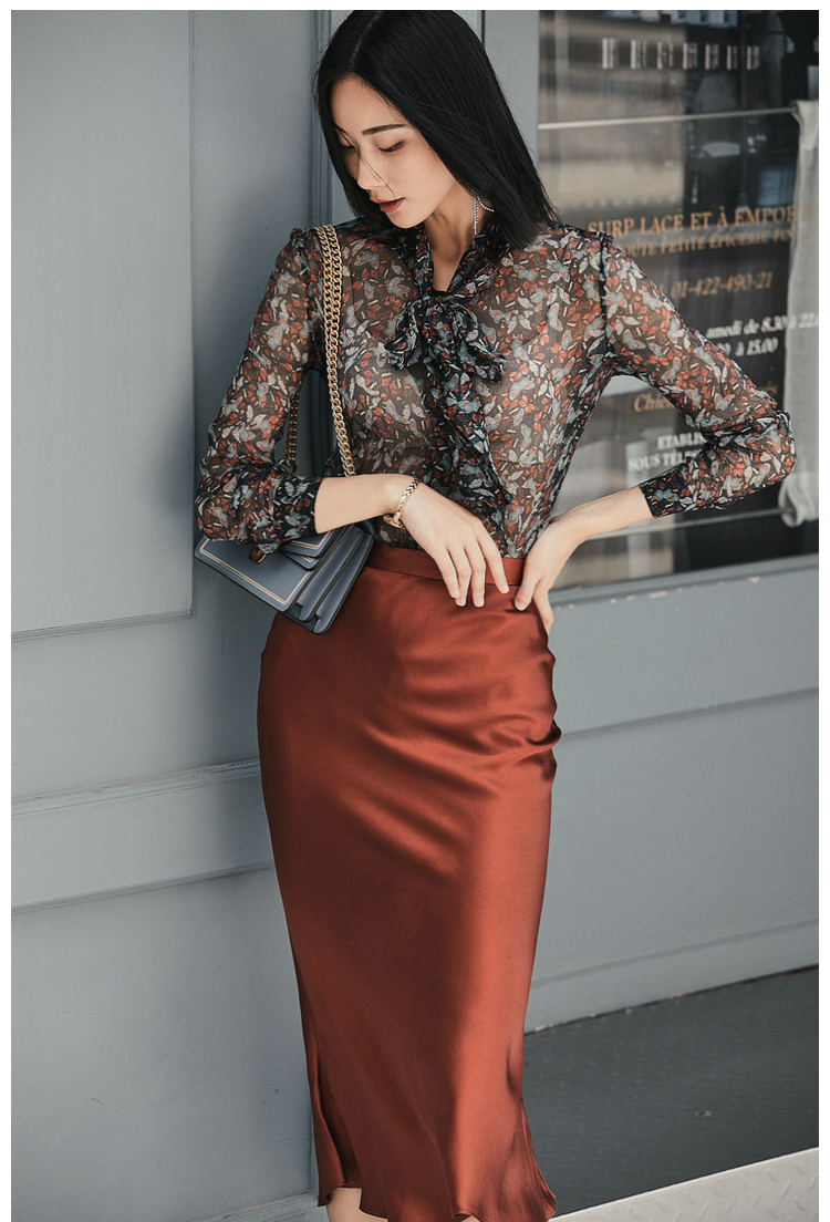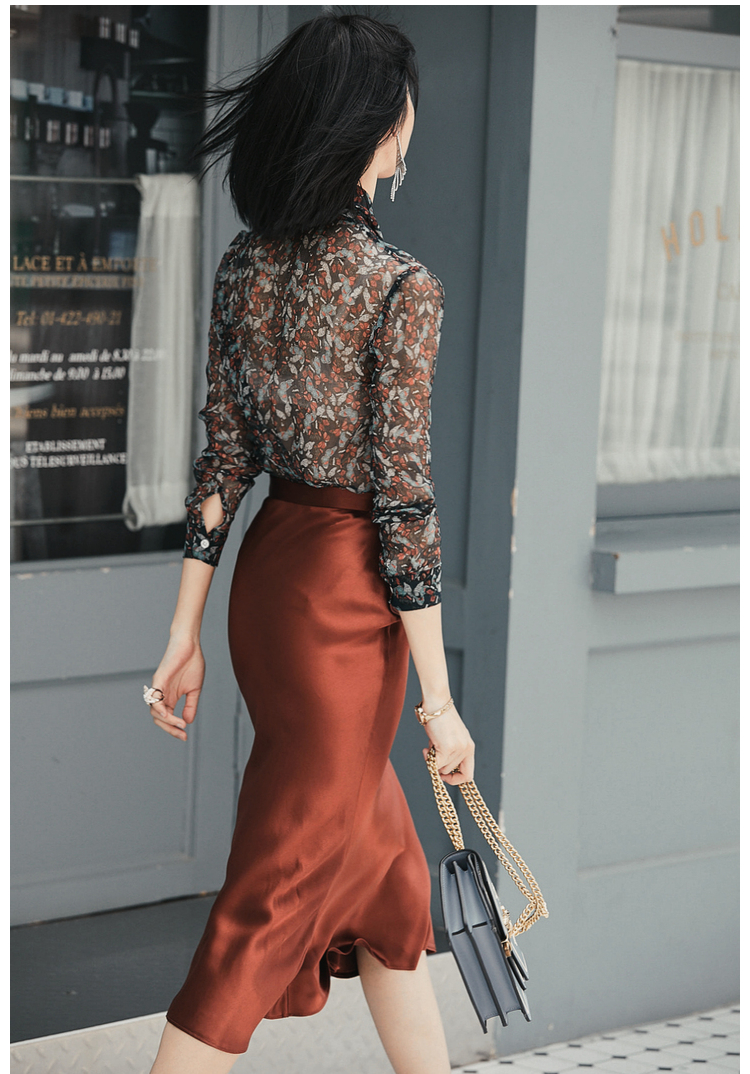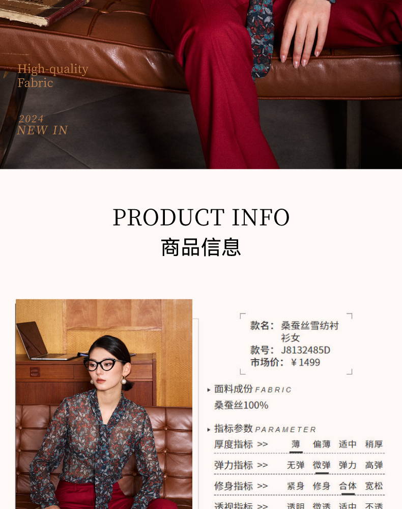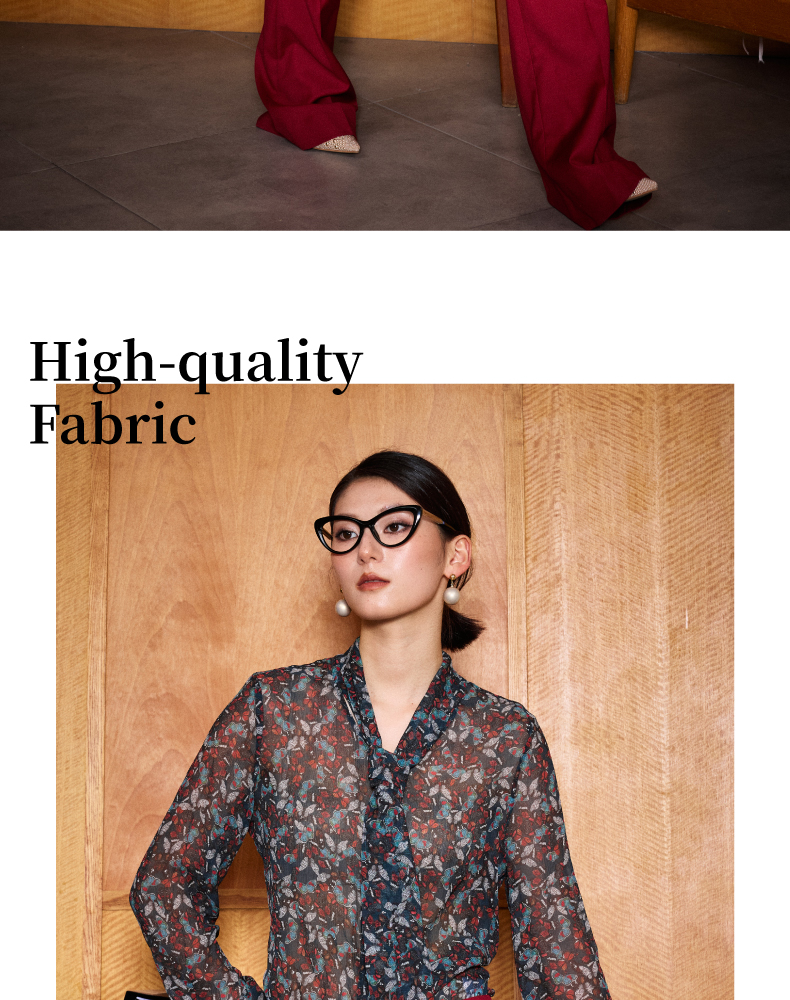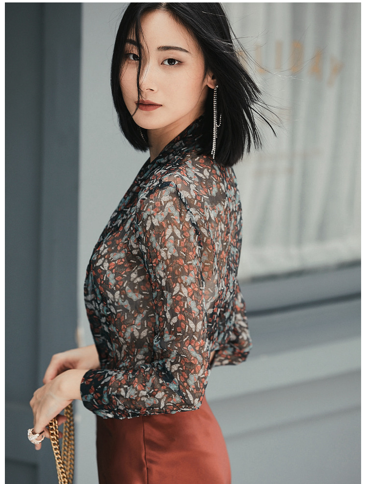 “蝶恋花”100%真丝衬衫 若隐若现优雅温婉女人味 J8132485C(四季可穿)颈袖添香
