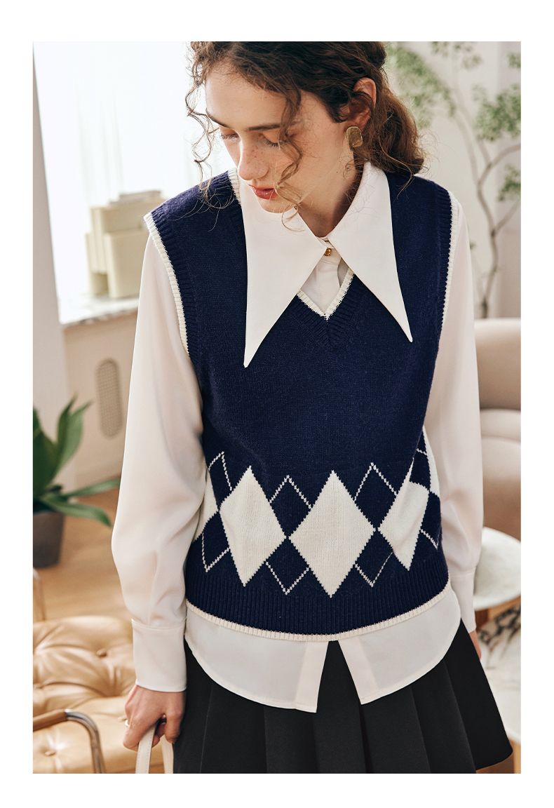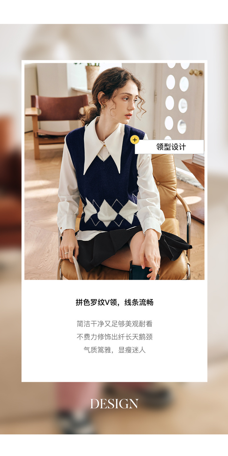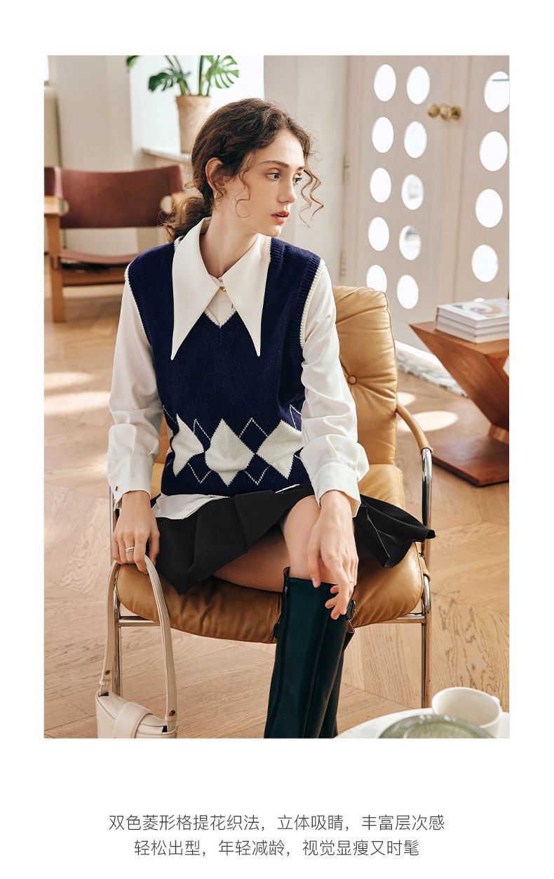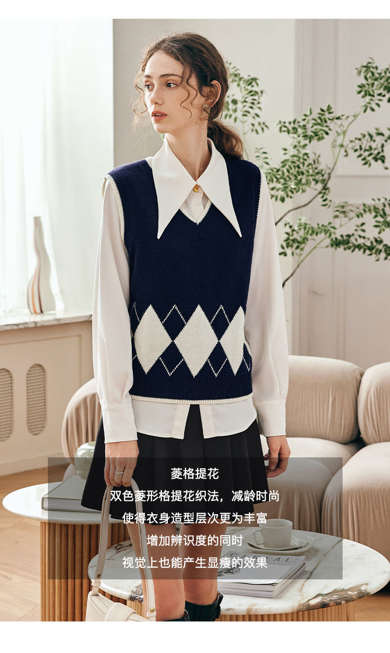 OLrain欧芮儿法式菱格毛衣马甲女早春2023新款英伦风减龄针织背心