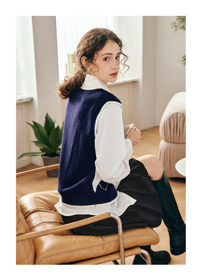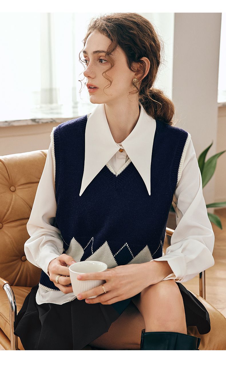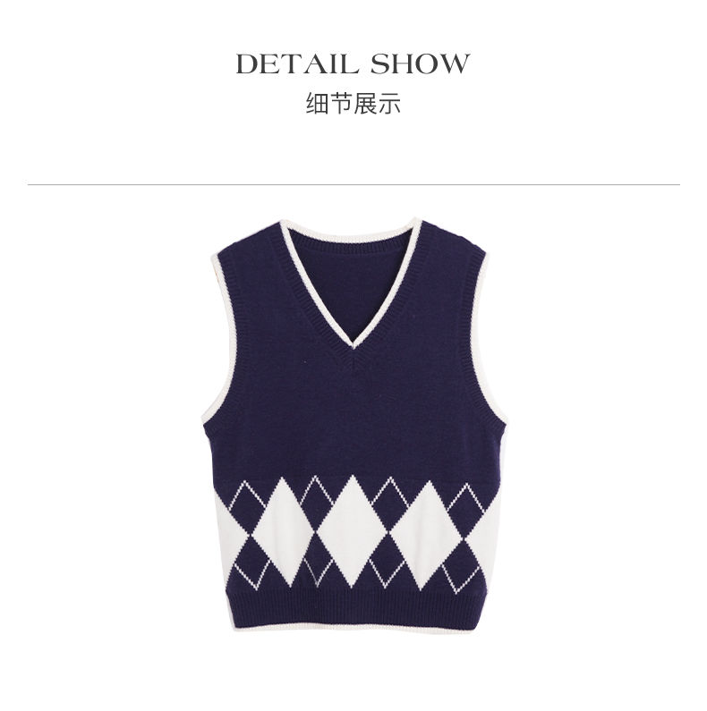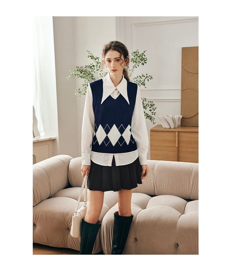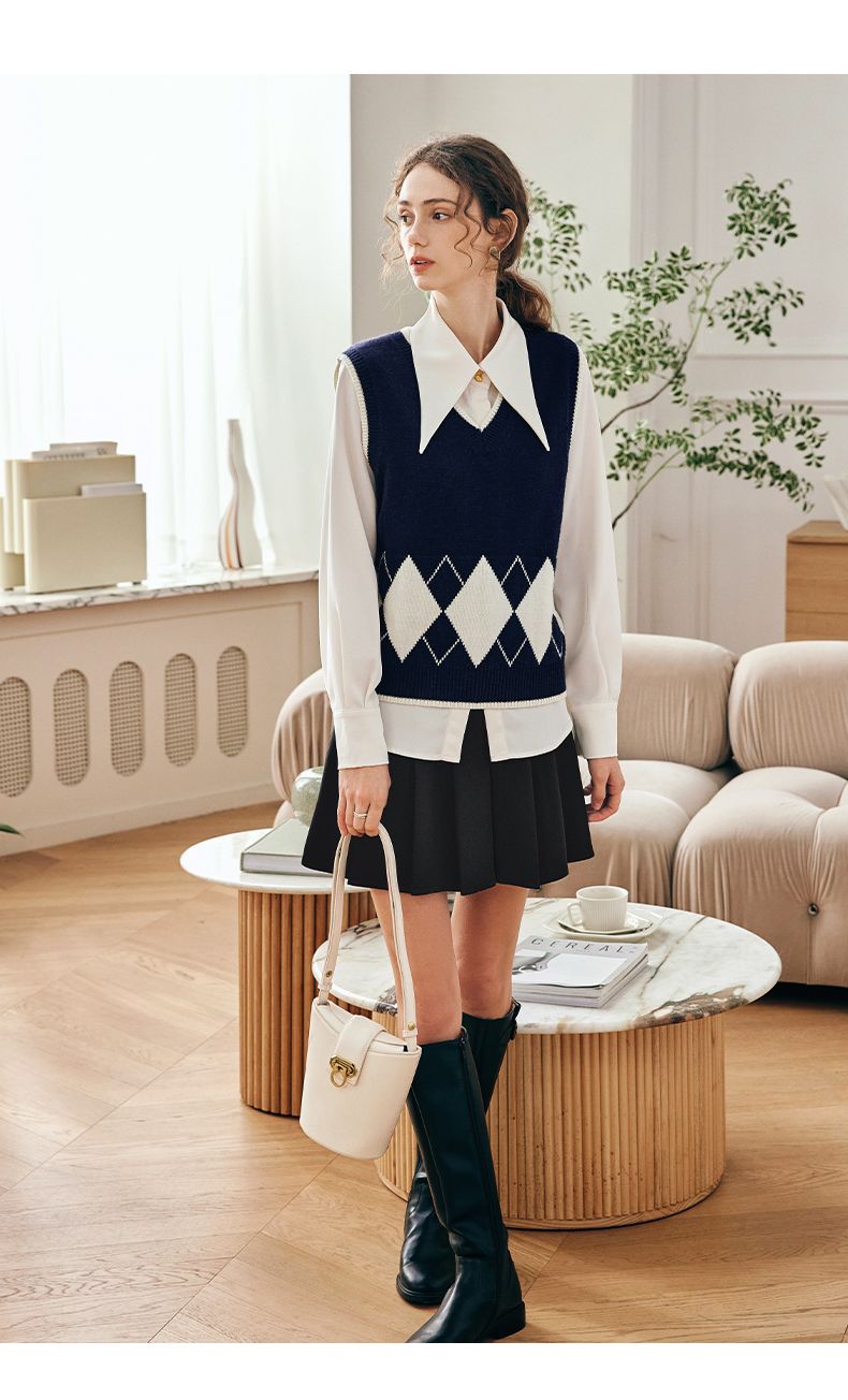 OLrain欧芮儿法式菱格毛衣马甲女早春2023新款英伦风减龄针织背心