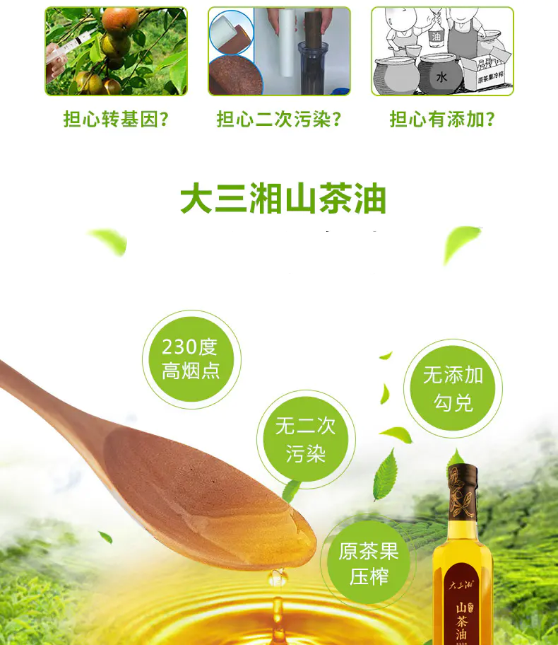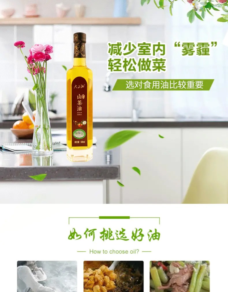 大三湘有机浓香山茶油 低温物理压榨炒菜食用油耐220度高温 500ml