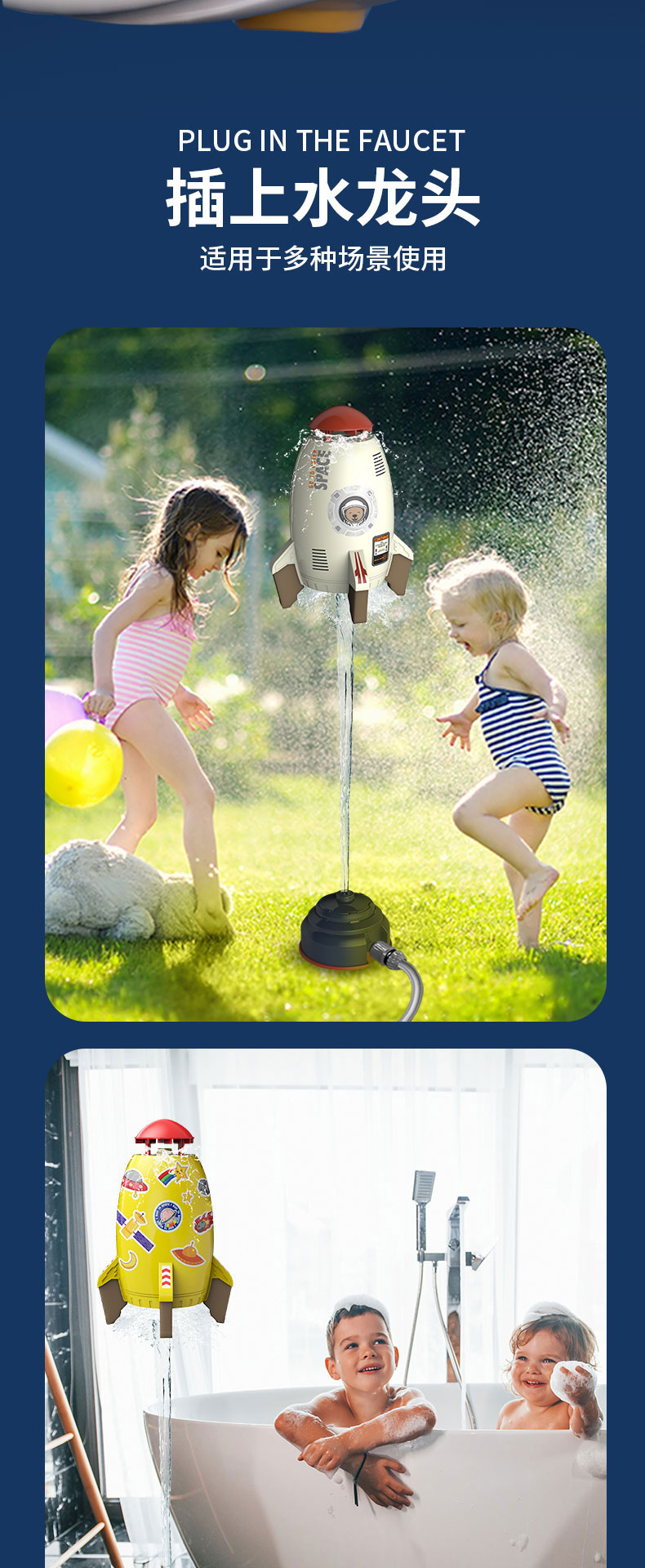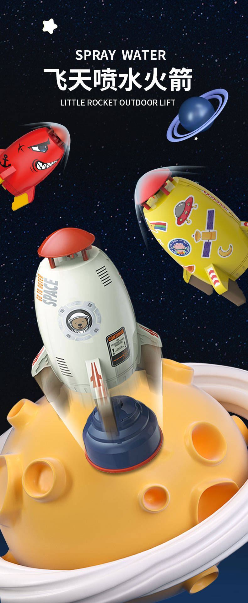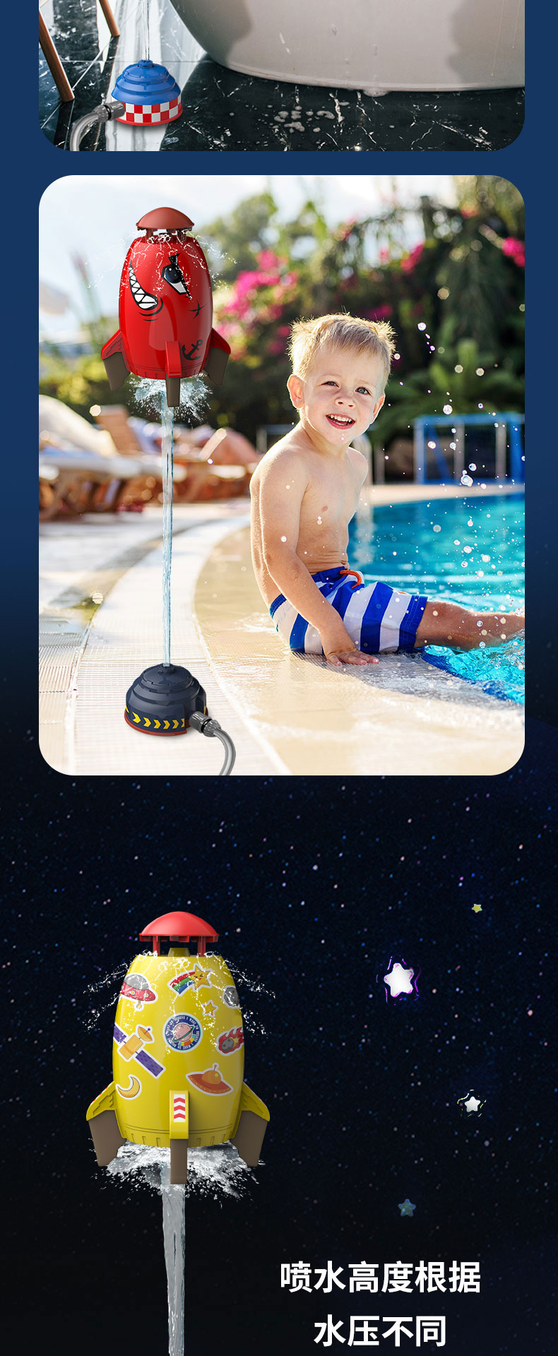 【水压喷射 一飞冲天】飞天喷水小火箭 太空火箭洒水器儿童旋转飞天戏水玩具 户外水压升空喷水器