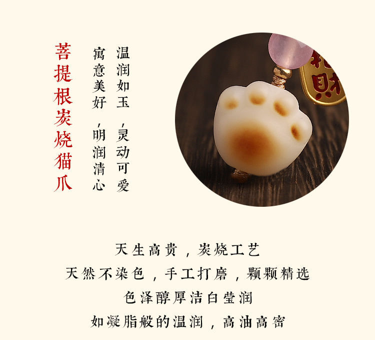 「9.9元包邮!第二条半价」白菩提根炭烧猫爪招财猫手机链挂绳吊坠可爱女手机壳钥匙扣挂件数码配件