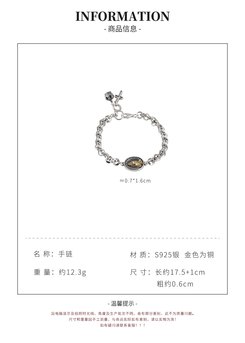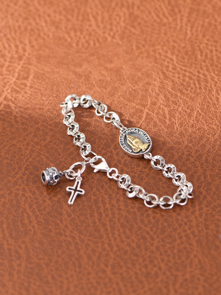 【皇冠之夜】S925银复古十字花皇冠圆环手链【SCH-SY40723】