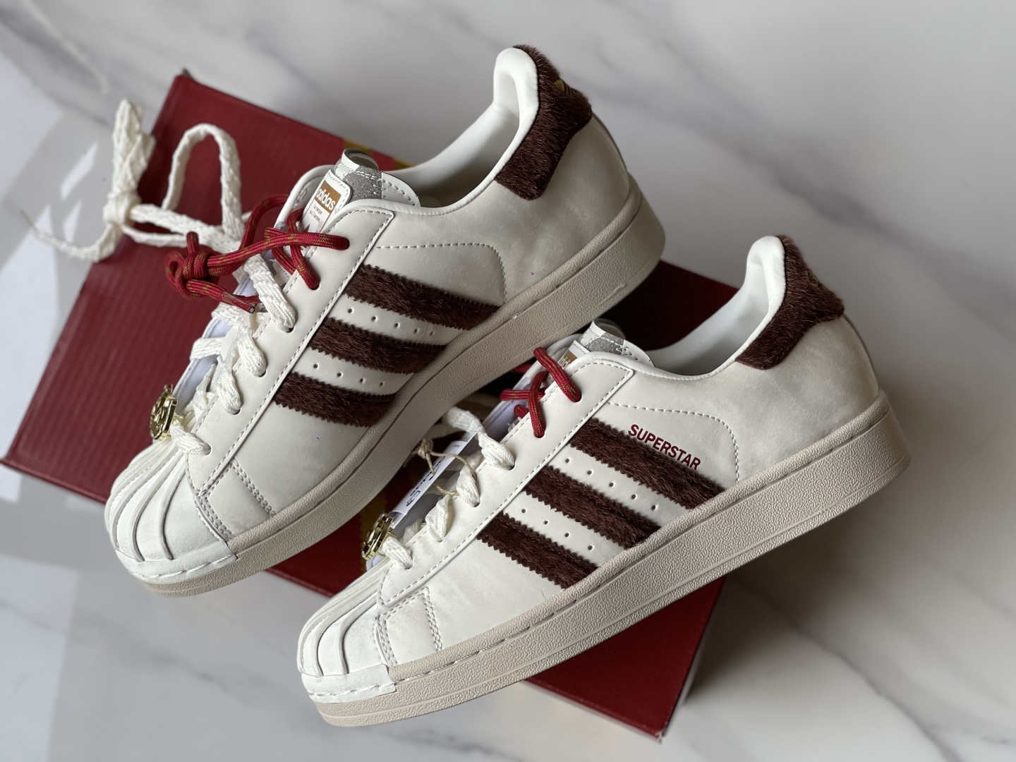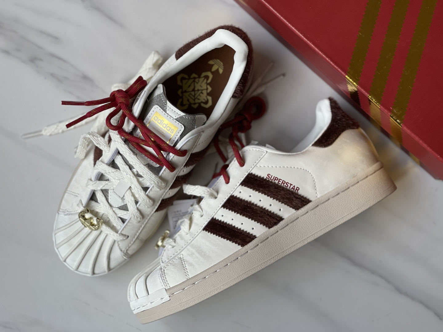 莆田大厂出品 1∶1细节还原 Adidas Originals Superstar2CNY新年款马年限定百搭复古板鞋 红金点缀超有氛围 新年氛围感焊在脚上~