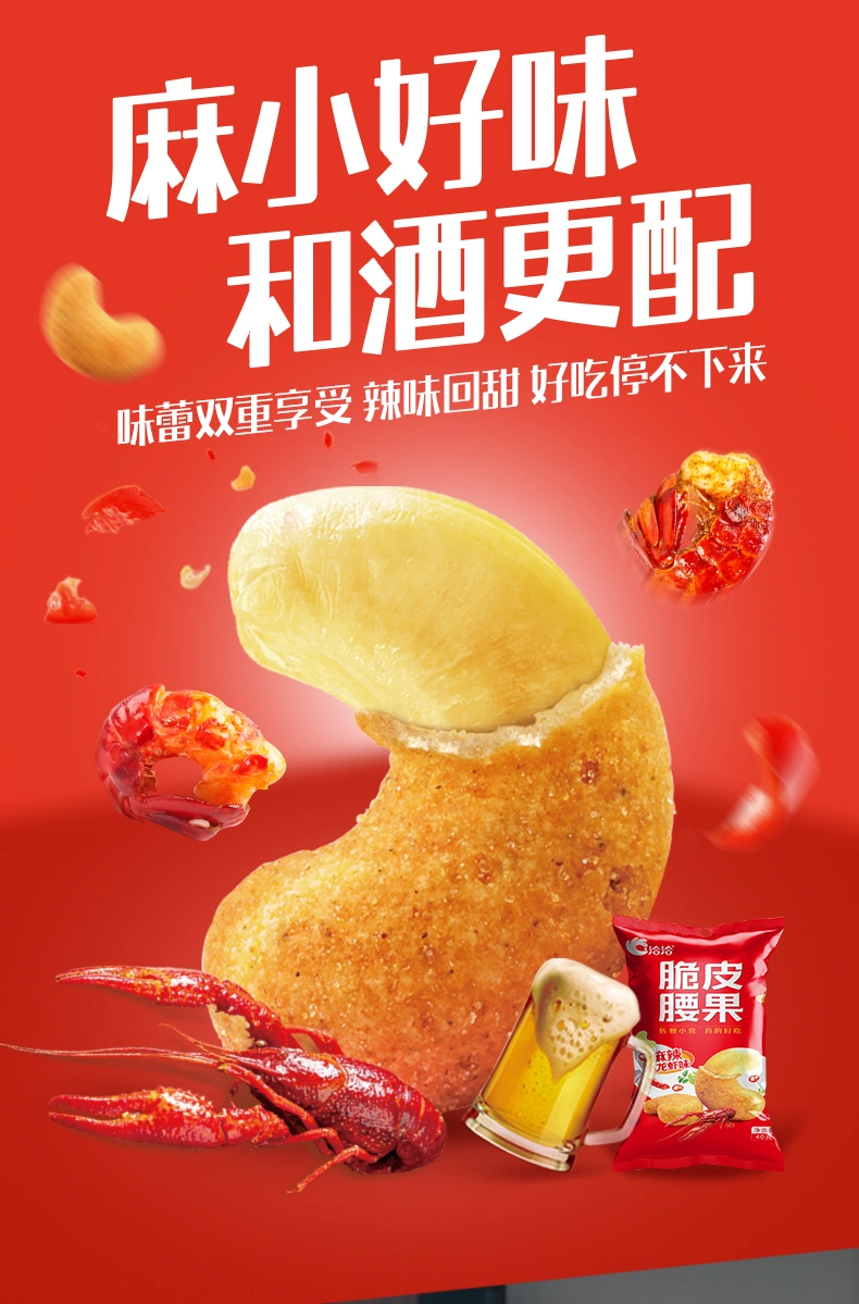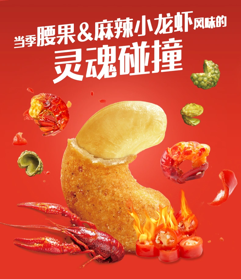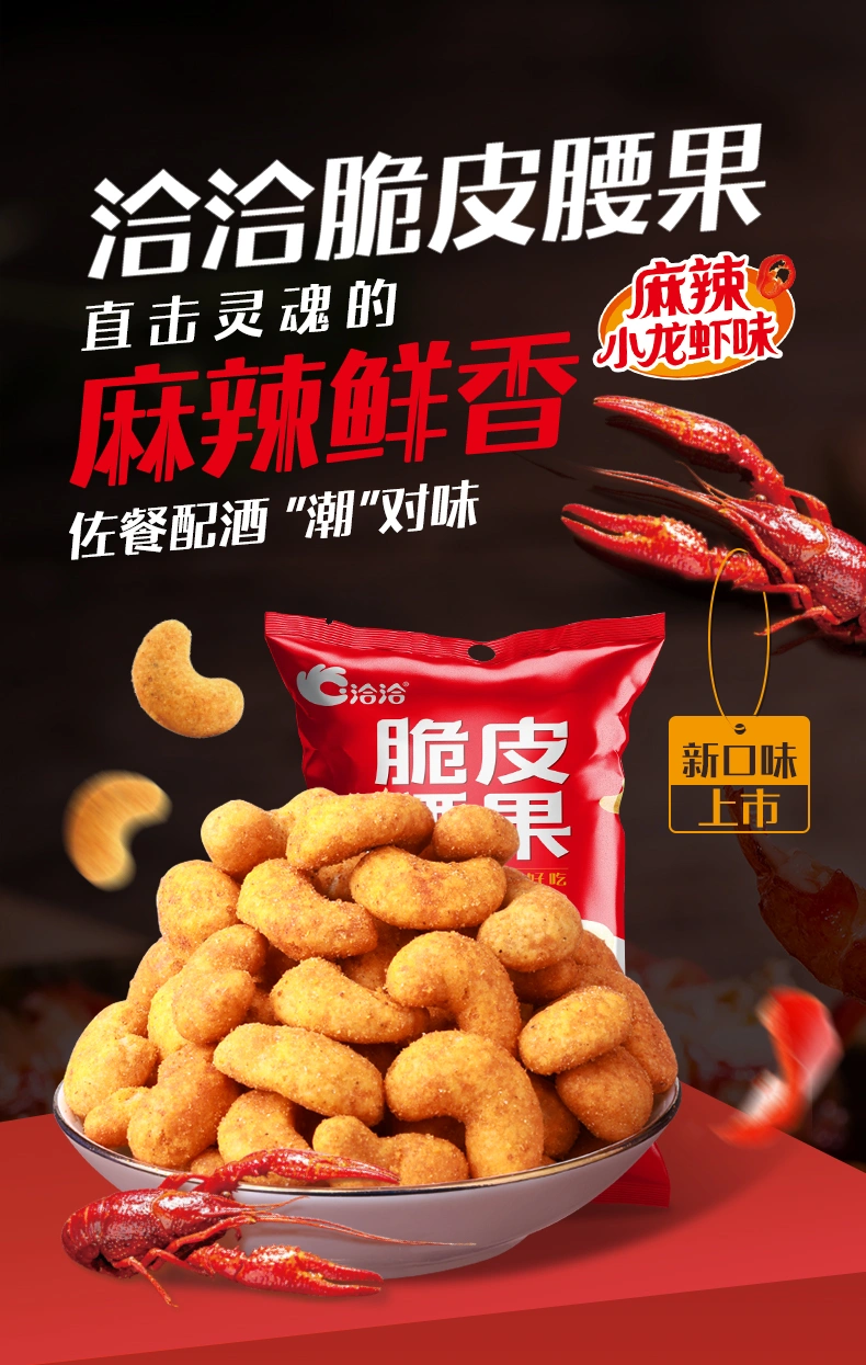 洽洽 麻辣小龙虾味脆皮腰果40g*5袋 吮指酥脆 72小时发货
