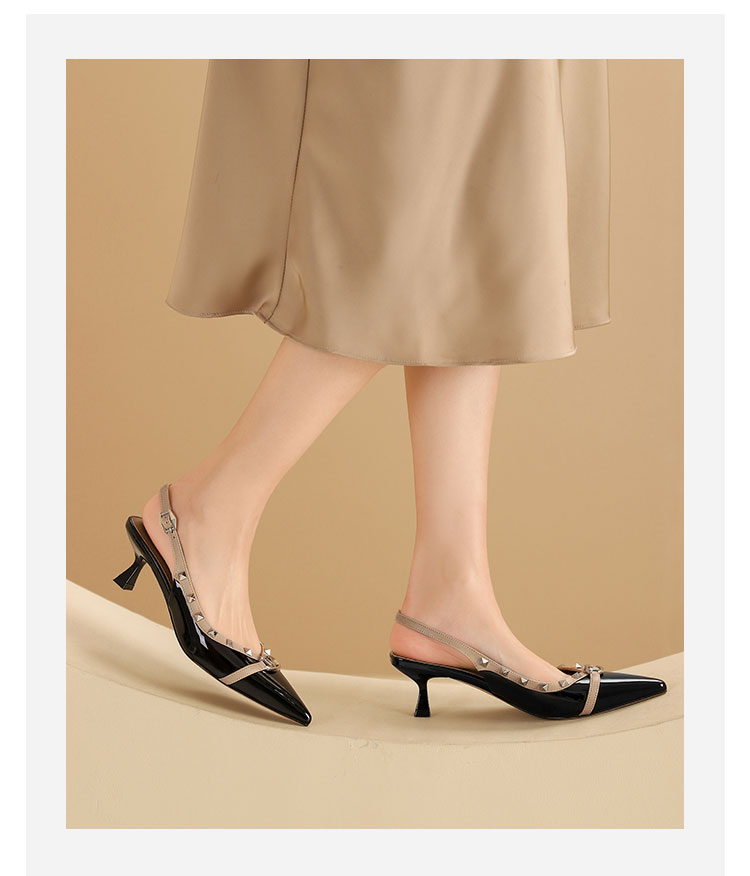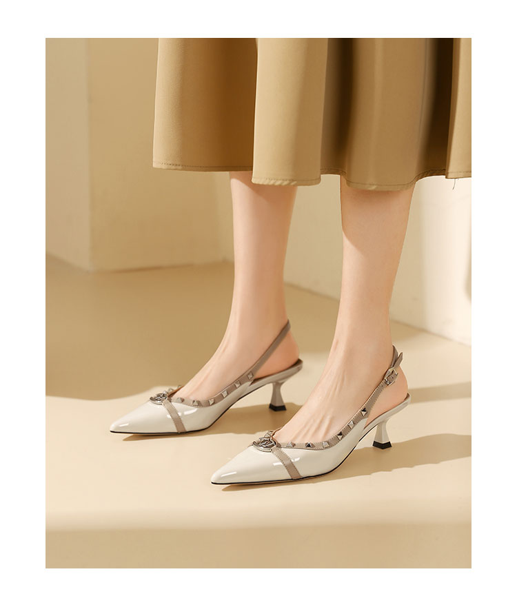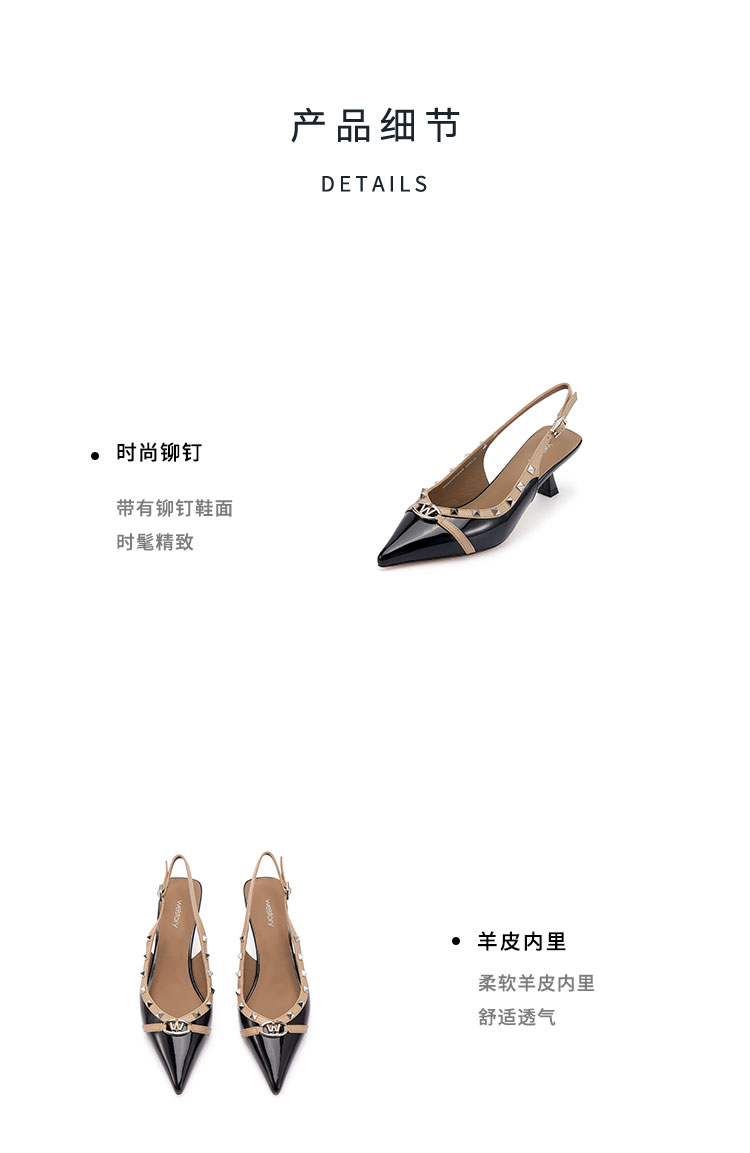 westory2024春季新款中低跟尖头系带后空鞋W24AH57301