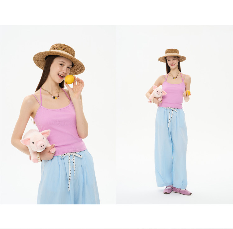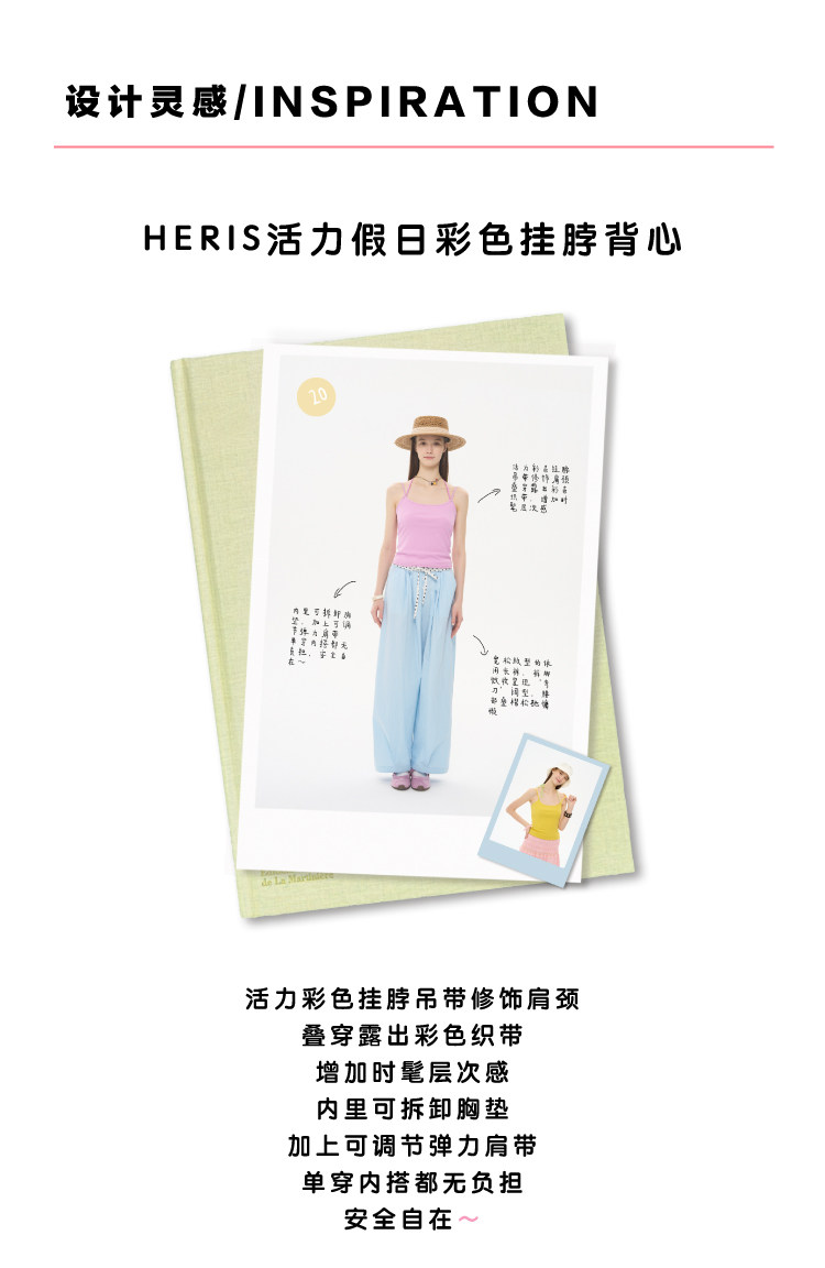 heris/H61128/活力假日彩色肩带挂脖 可拆袖胸垫吊带背心显瘦两色