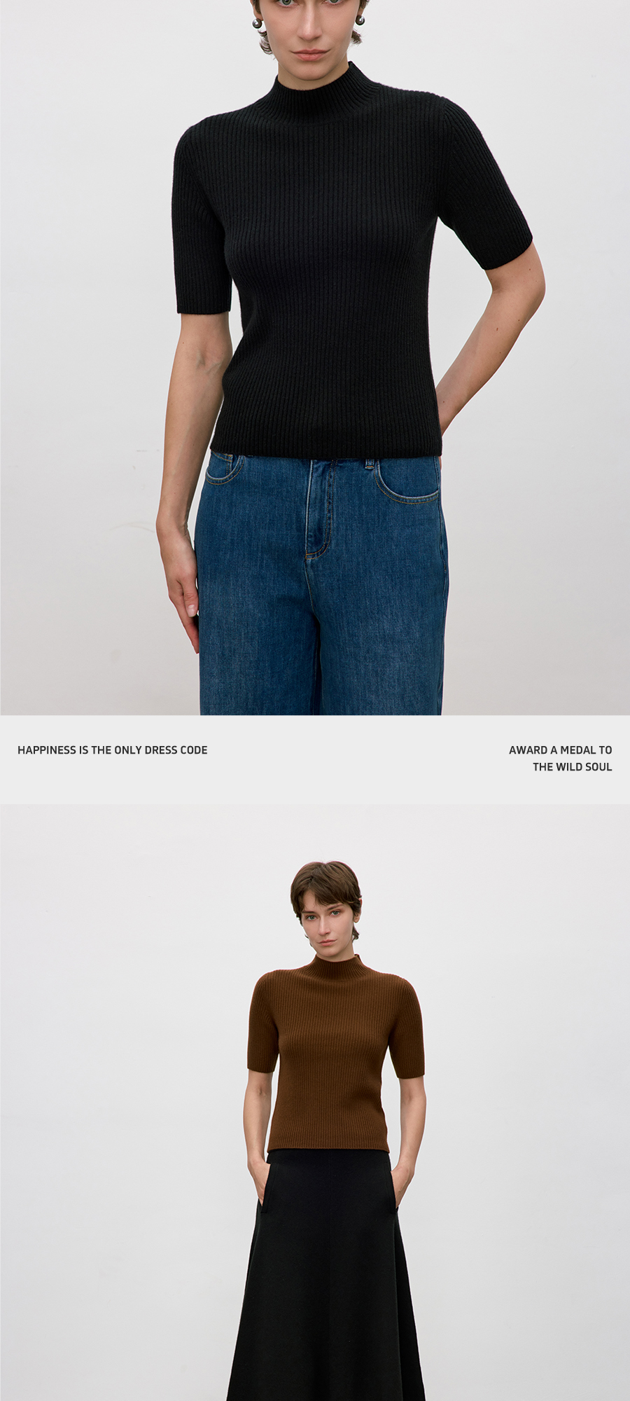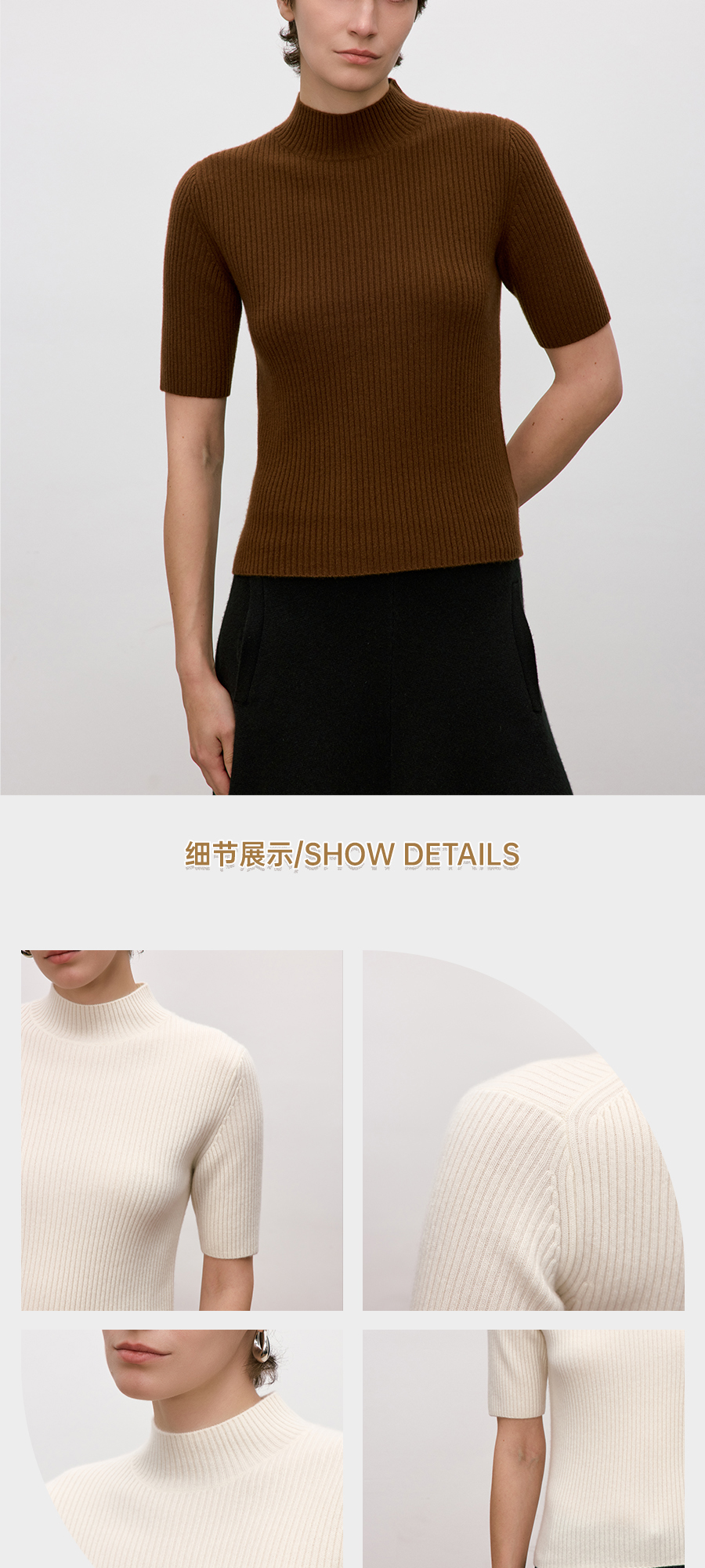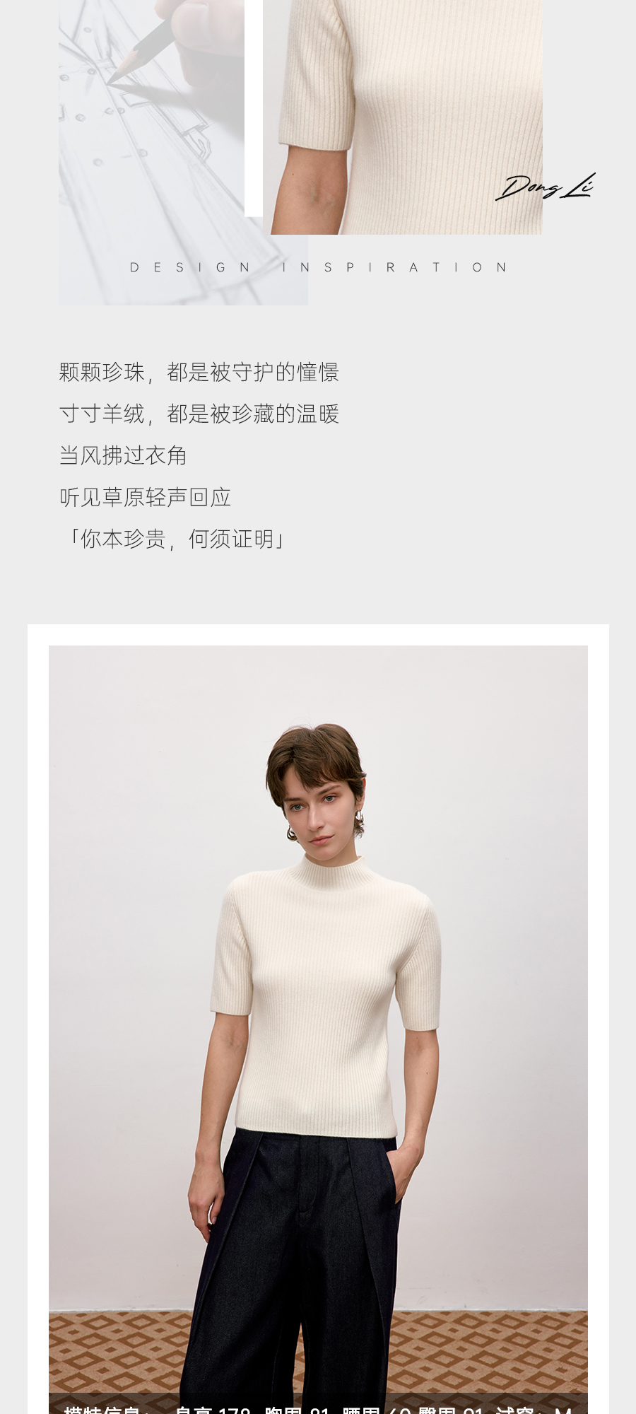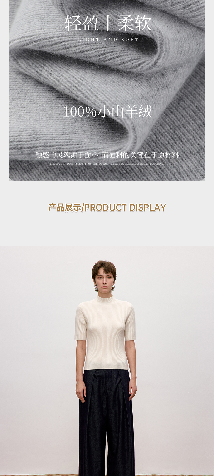 东黎 • 你本珍贵 万物共生-短袖 小山羊绒女士秋季抽条高领半袖 5488