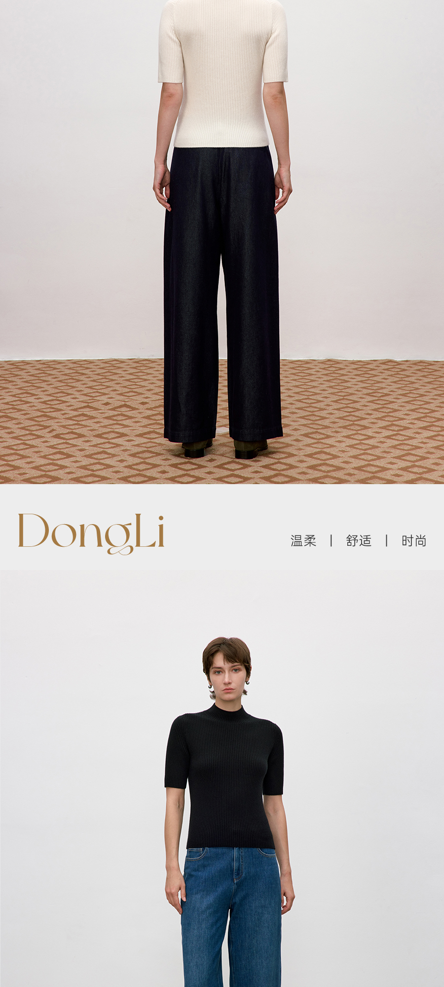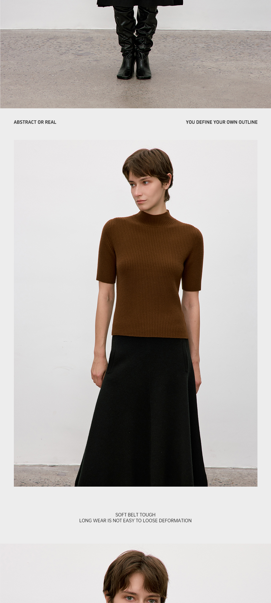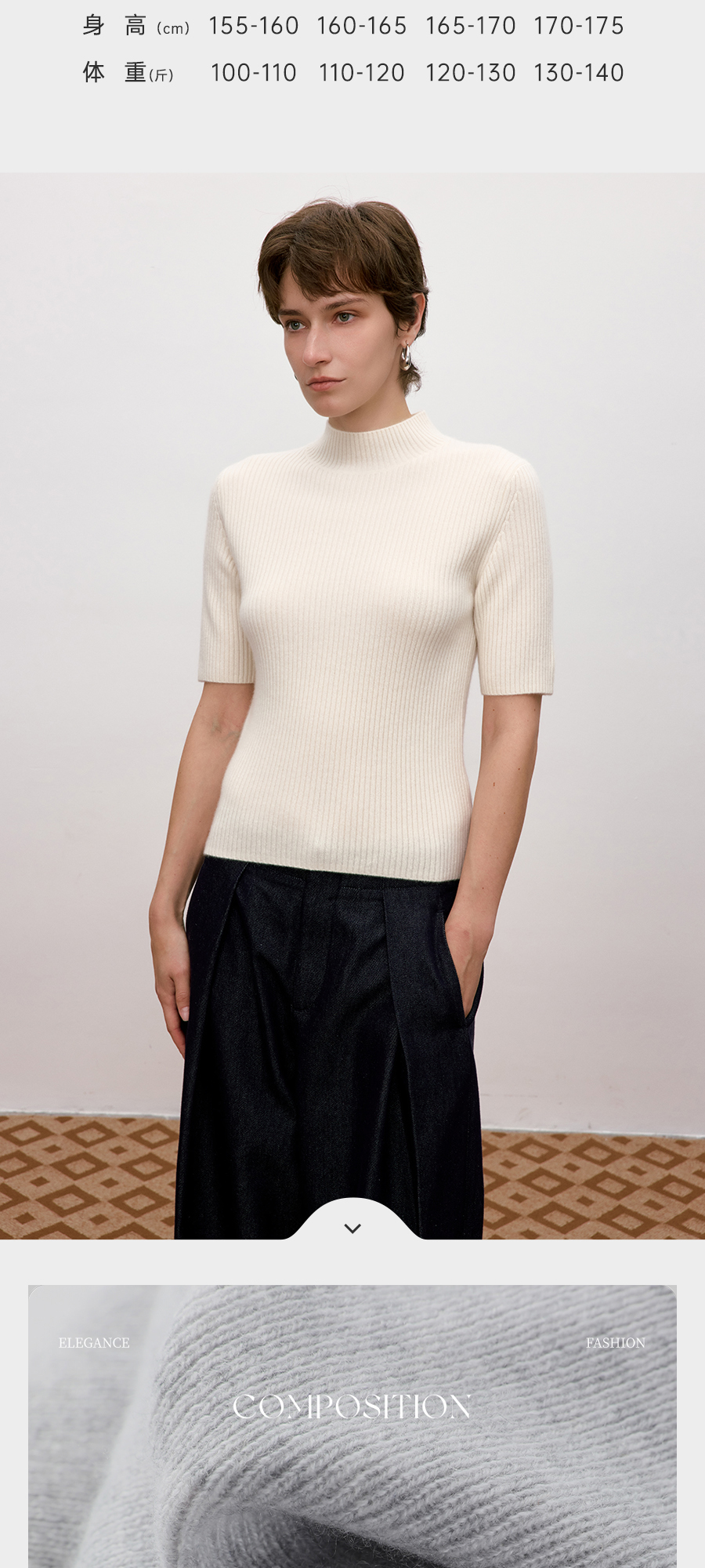 东黎 • 你本珍贵 万物共生-短袖 小山羊绒女士秋季抽条高领半袖 5488